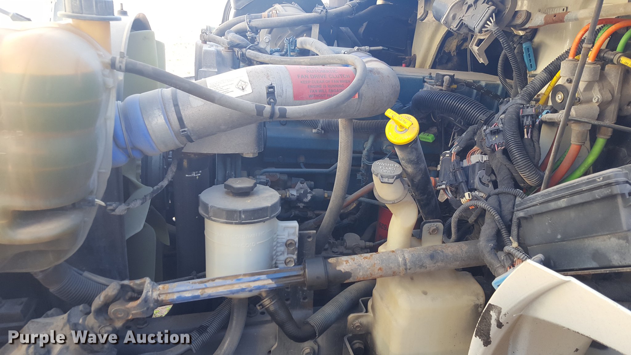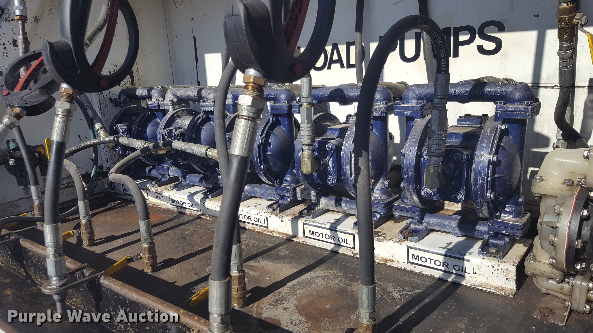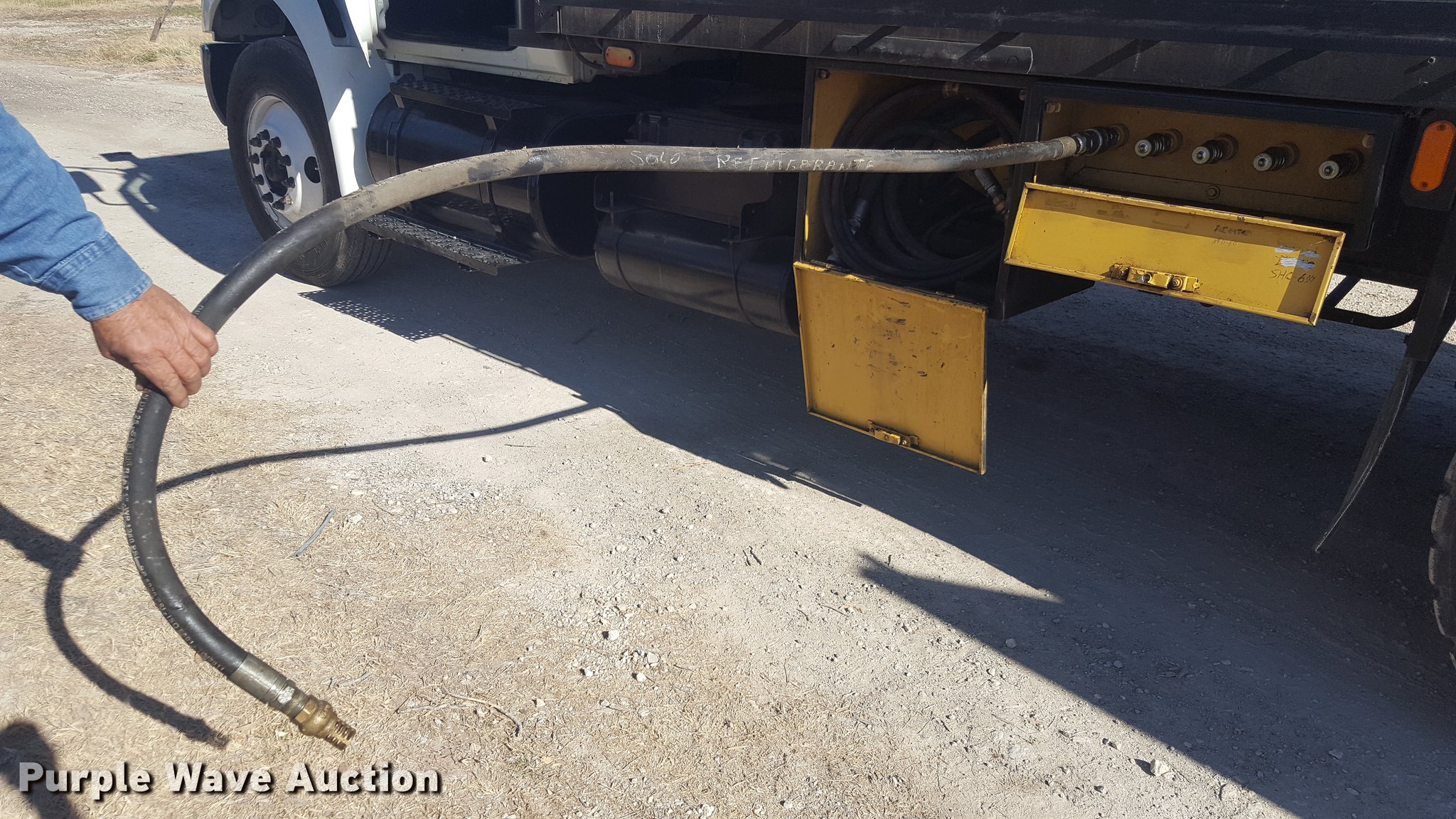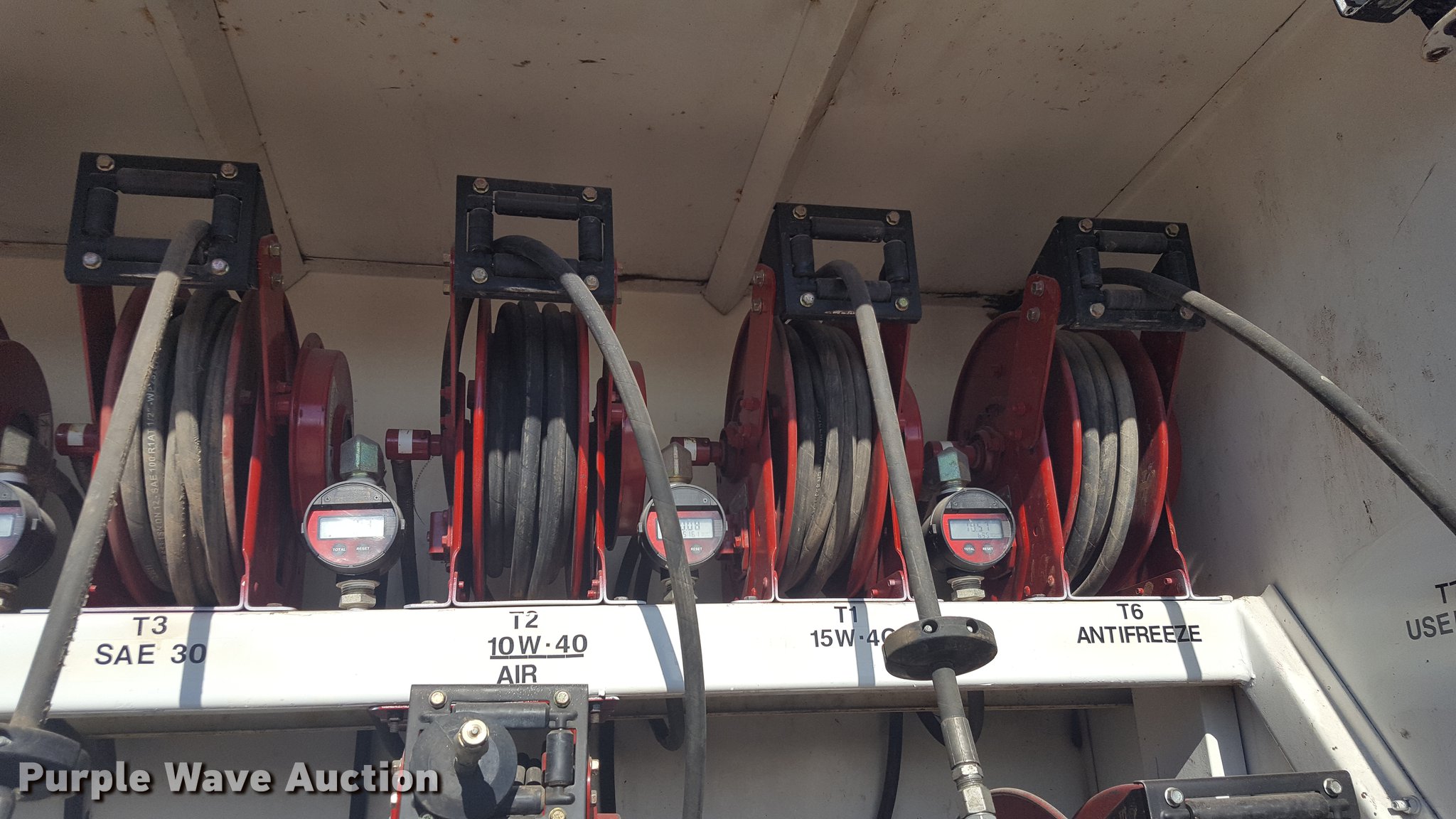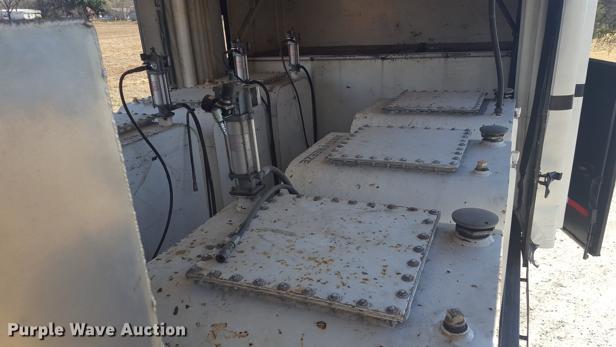 Purple Wave is selling a used Service Truck in Texas. This item is a 2012 International 4400 service truck with the following: 27,115 miles on odometer, International DT530 8.7L L6 turbo diesel engine, Eaton Fuller 10 speed manual transmission, Tandem axle, AC and heat, Air suspension seat, Backup alarm, Beacon light, Front tow hooks, Enclosed body service bed, Compartment lights, Work lights, Oil/lube system, 125 gallon oil reservoir, 750 gallon diesel fuel tank, Nozzles, Pump, Hydraulic fluid reservoir, Grease reservoir, Used oil reservoir, Hose reels, Metered nozzles, Pneumatic pumps,, Dual fuel tanks, Spring suspension, Air brakes, 12R22.5 front tires, 11R22.5 rear tires