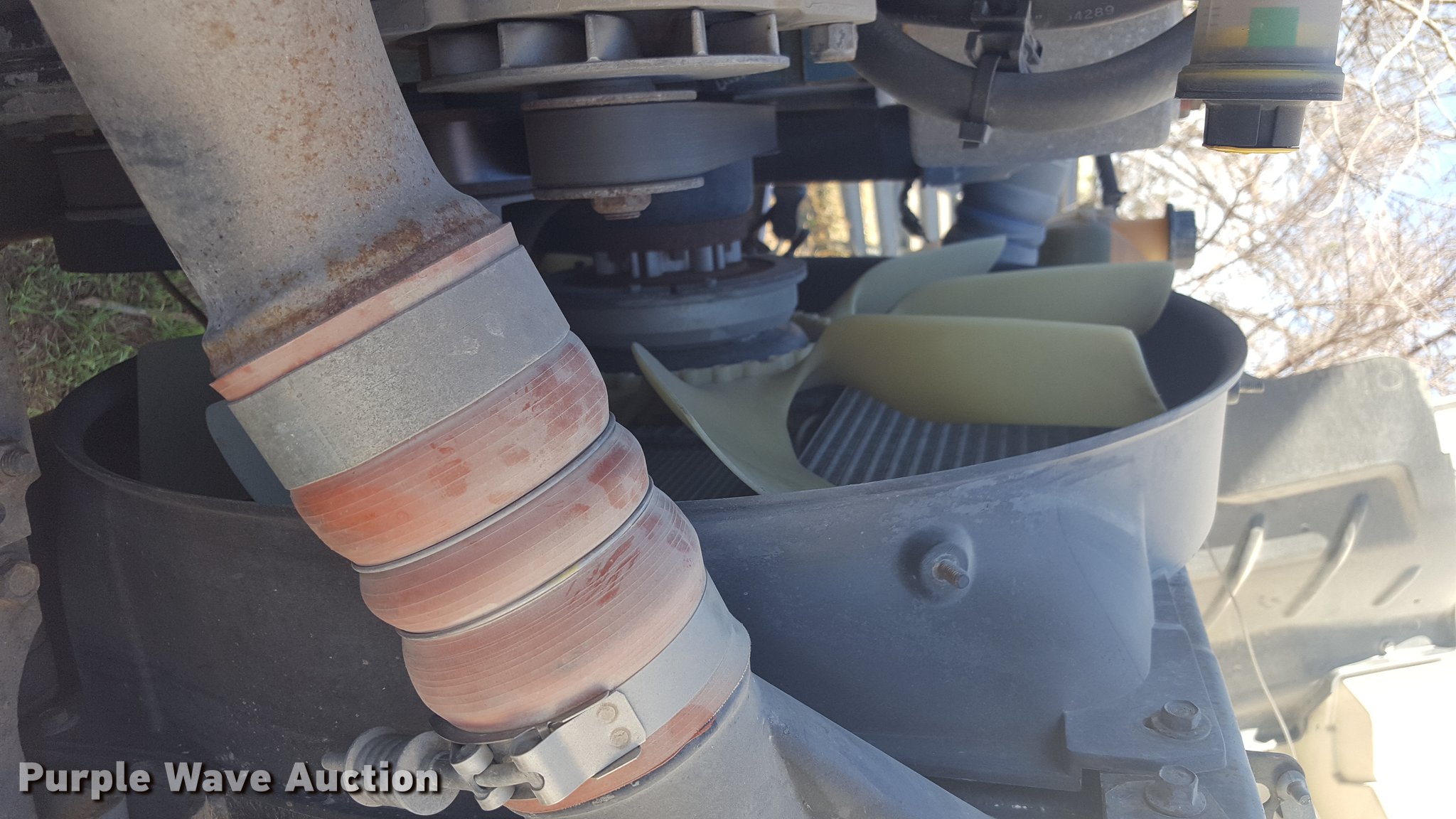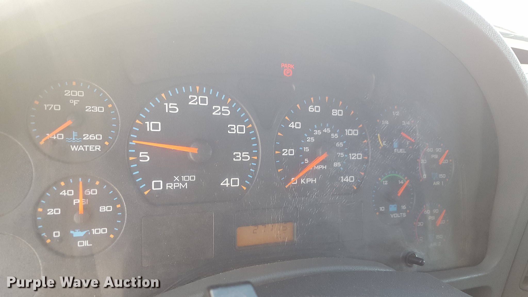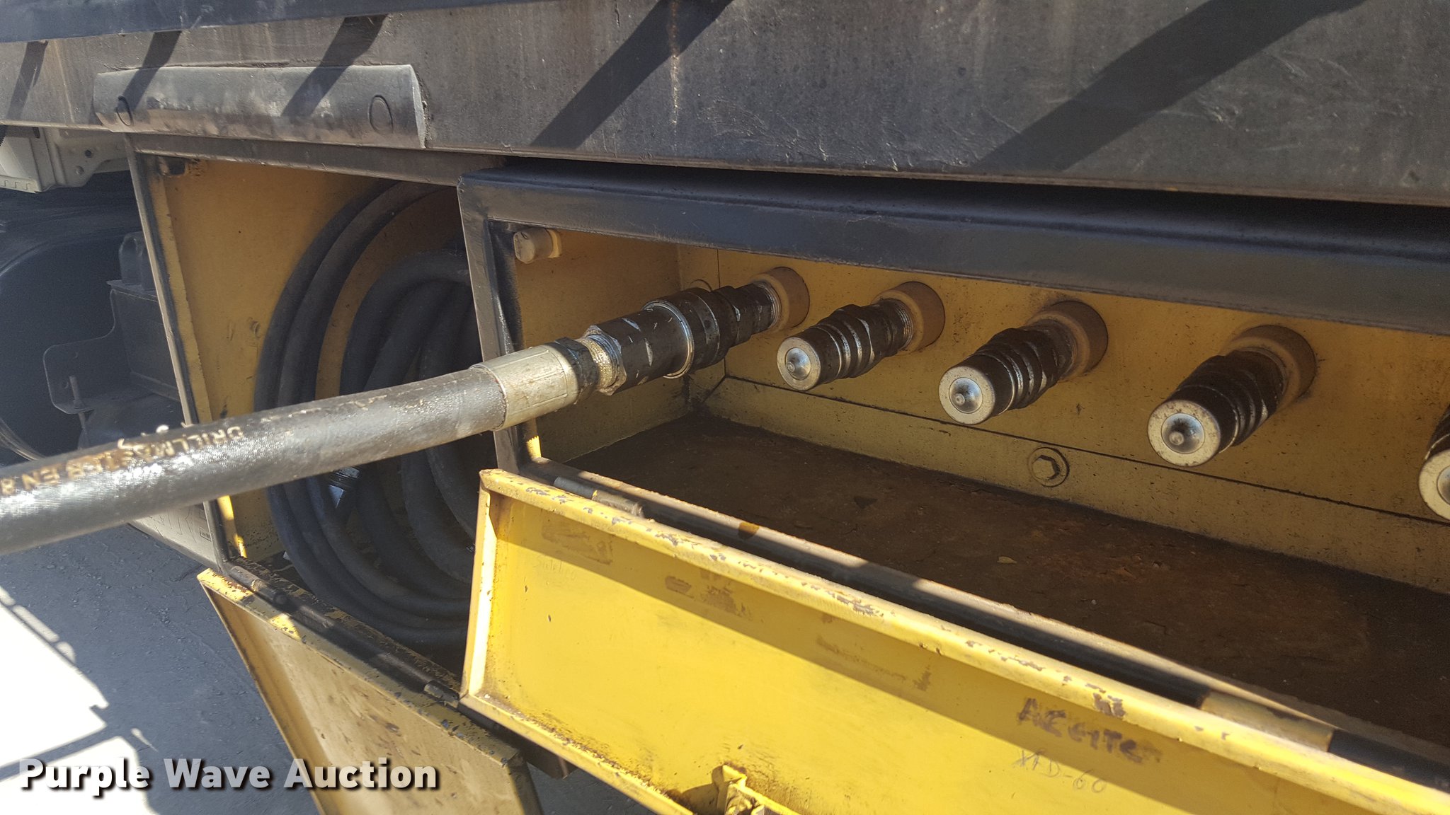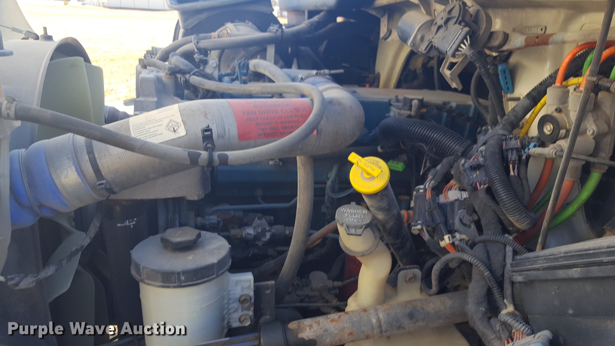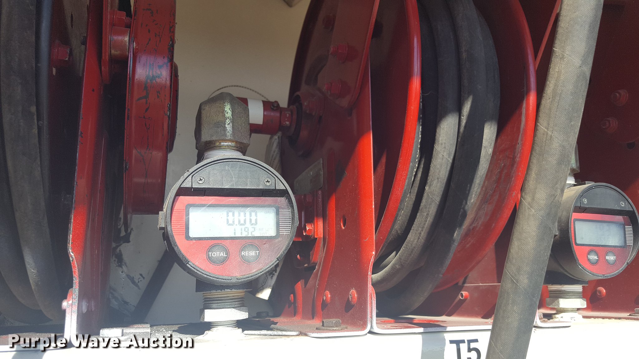 Purple Wave is selling a used Service Truck in Texas. This item is a 2012 International 4400 service truck with the following: 27,115 miles on odometer, International DT530 8.7L L6 turbo diesel engine, Eaton Fuller 10 speed manual transmission, Tandem axle, AC and heat, Air suspension seat, Backup alarm, Beacon light, Front tow hooks, Enclosed body service bed, Compartment lights, Work lights, Oil/lube system, 125 gallon oil reservoir, 750 gallon diesel fuel tank, Nozzles, Pump, Hydraulic fluid reservoir, Grease reservoir, Used oil reservoir, Hose reels, Metered nozzles, Pneumatic pumps,, Dual fuel tanks, Spring suspension, Air brakes, 12R22.5 front tires, 11R22.5 rear tires