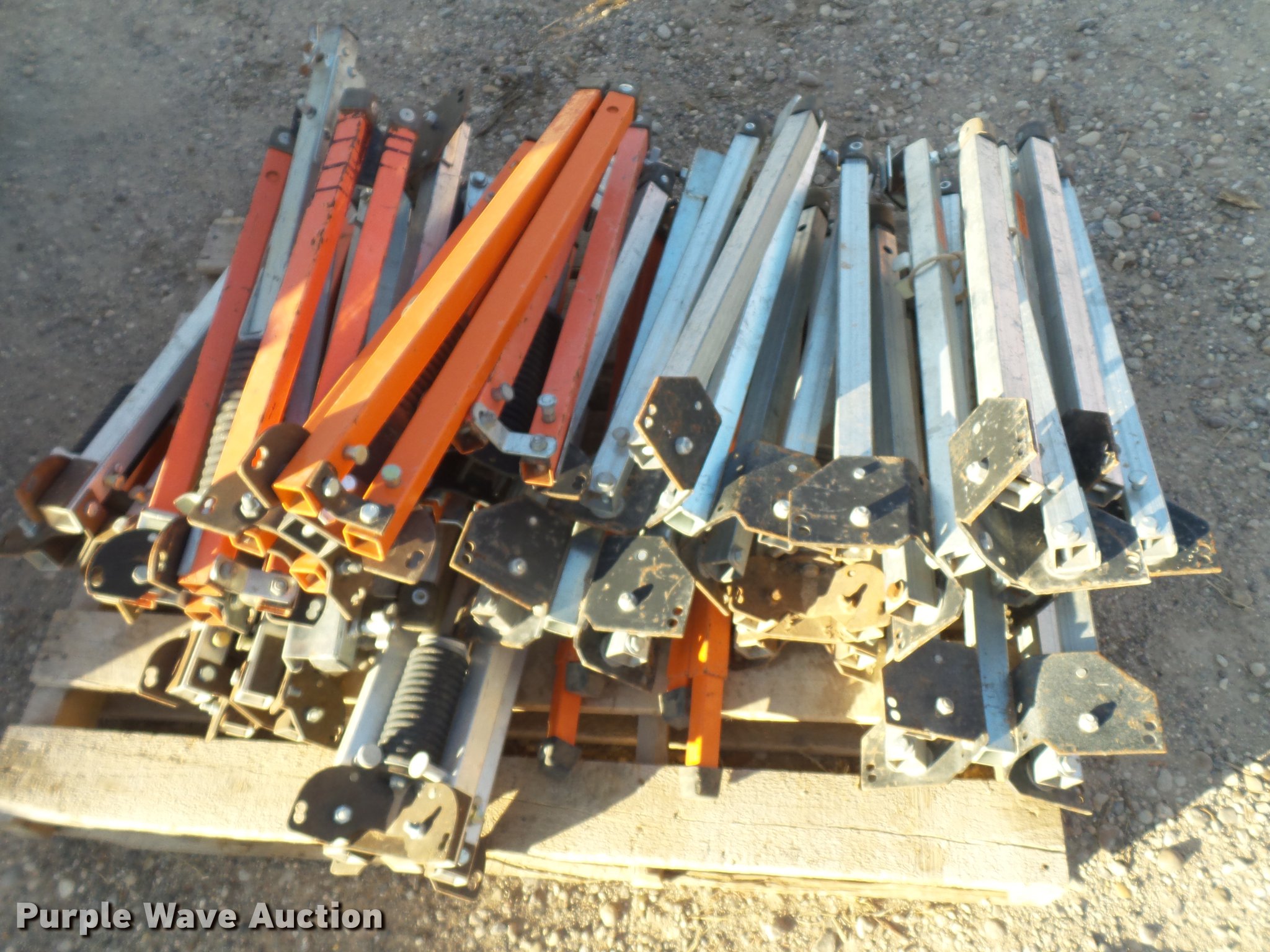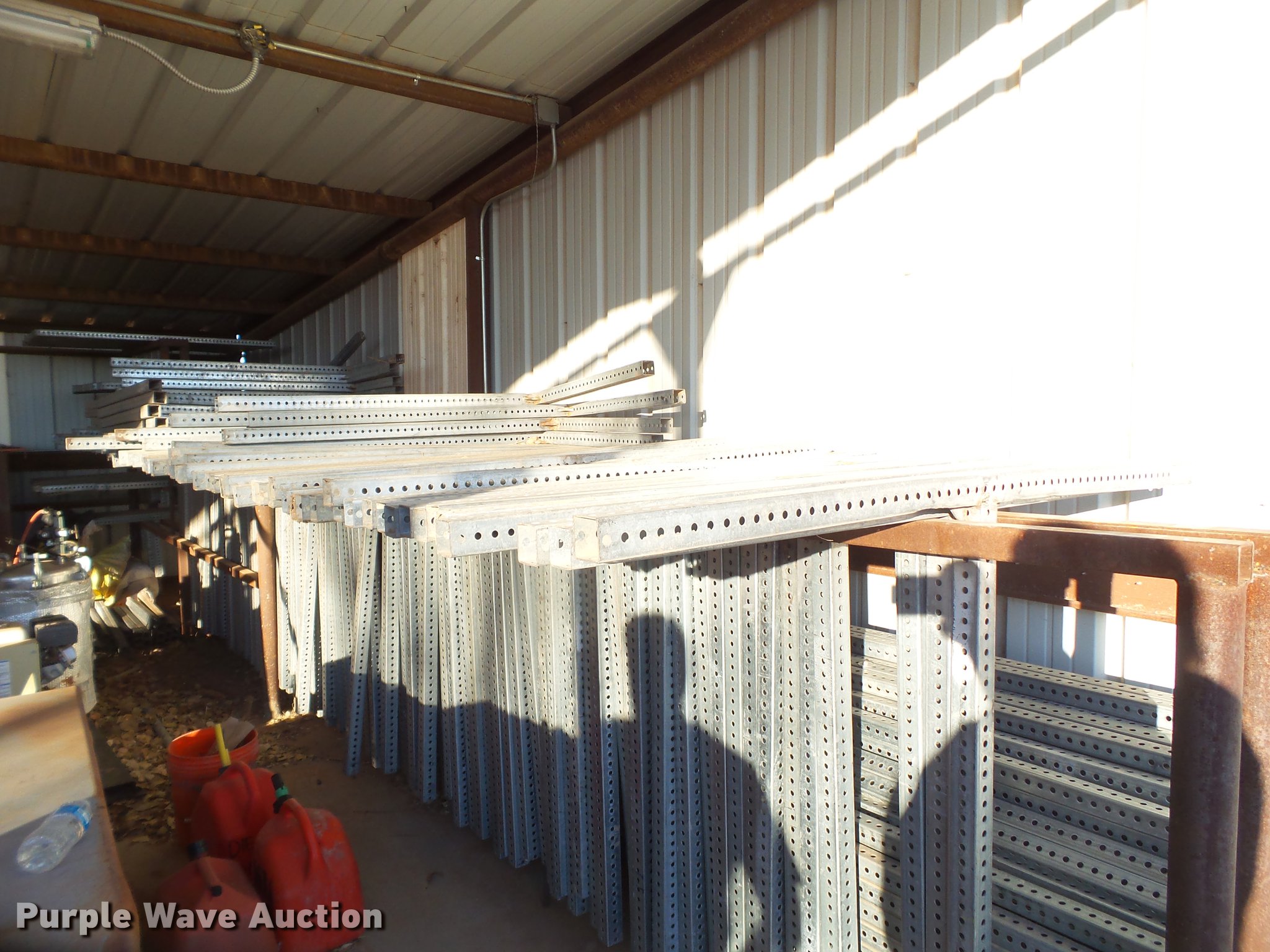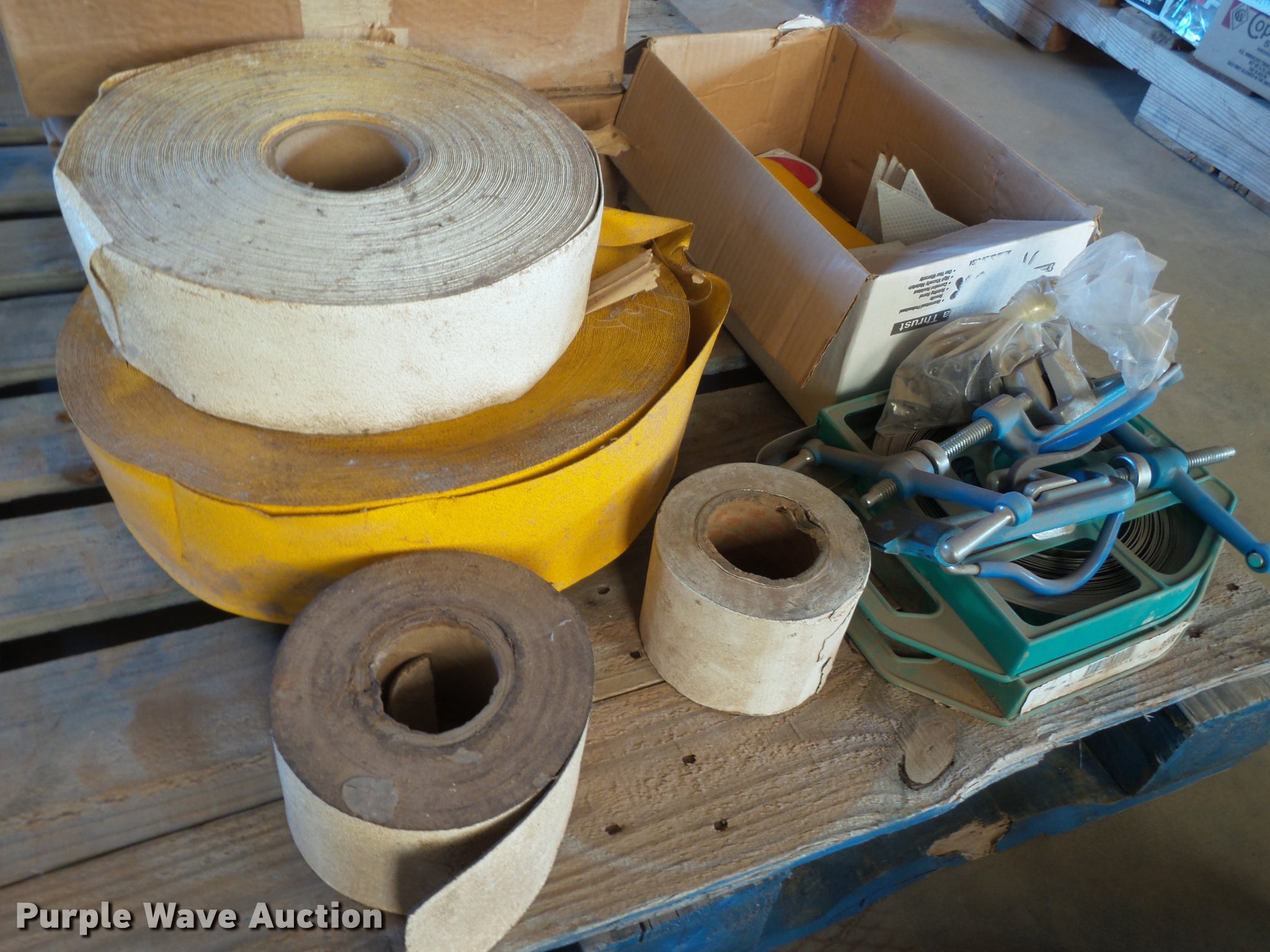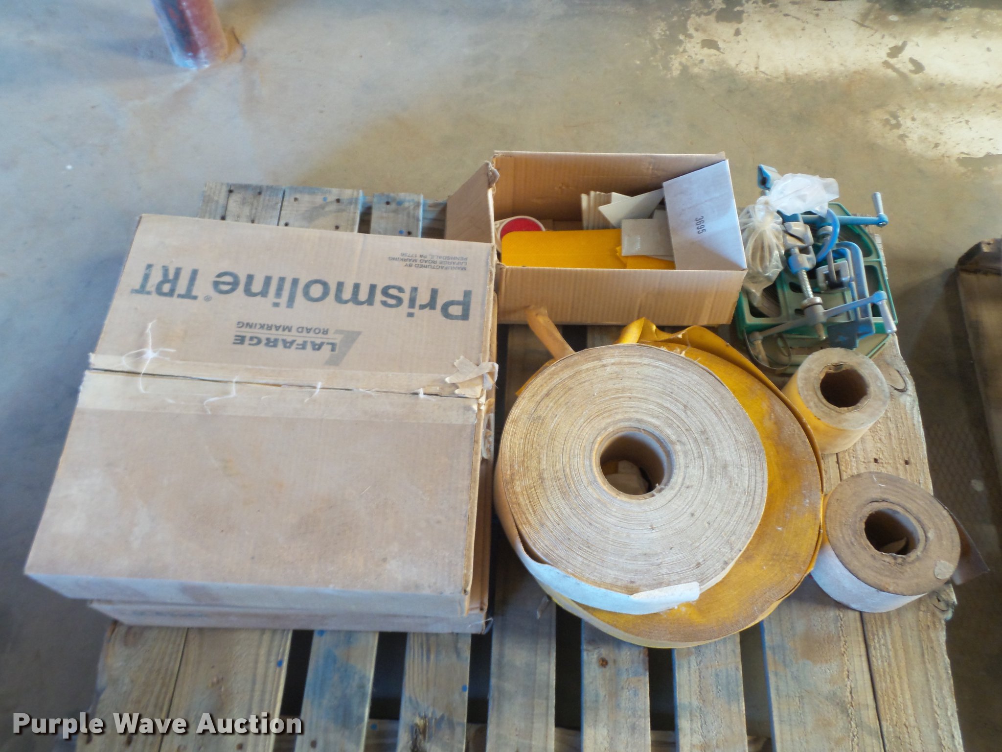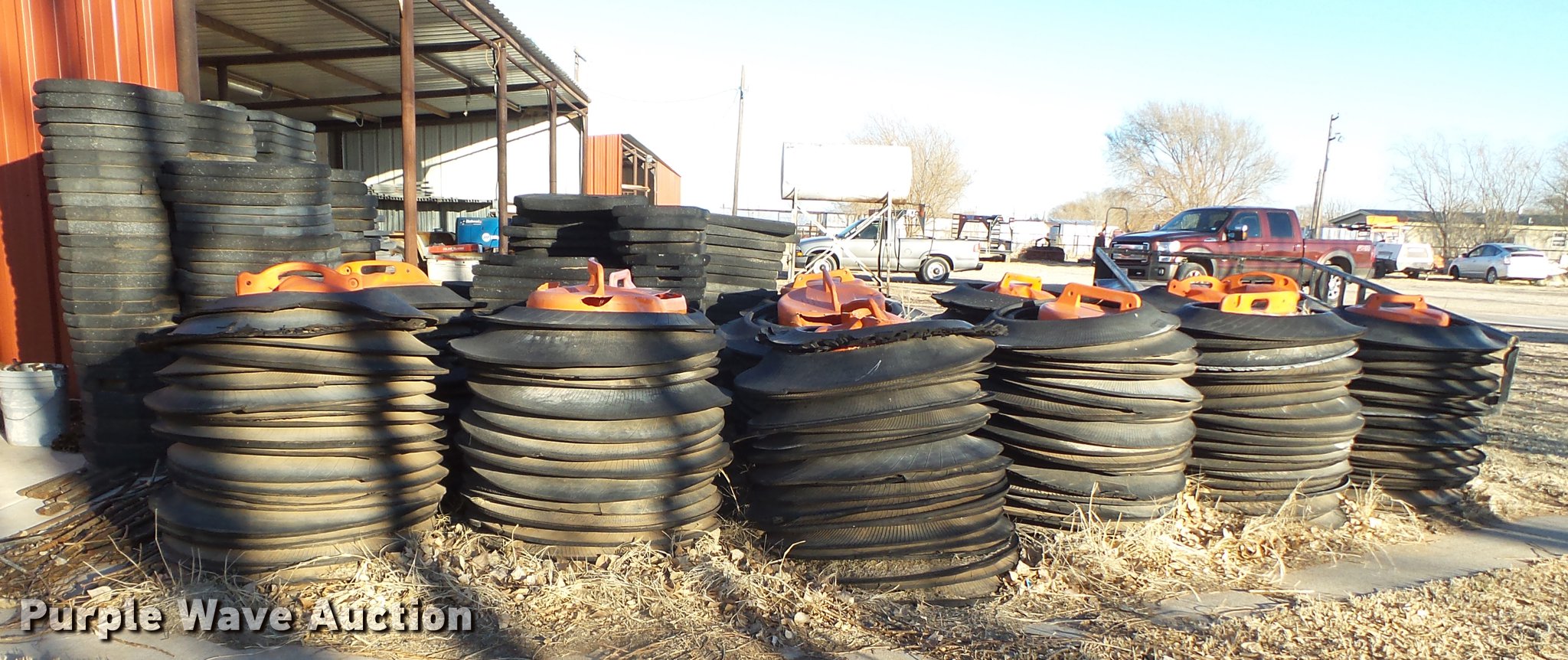 Purple Wave is selling a used Road Safety Equip. in Texas. This item is a Road safety equipment with the following: (133) 4'H T stands, (122) 12"H T stands, (110) 30" braces, (167) legs, 10' to 14'L, (17) type III, Metal braces, (4) type III, 4 x 4 plastic braces, (9) type III with rubber braces, (198) barrels, (252) tire bases, Approximately 130 cones, 4'H, Approximately 300 rubber cone bases, (10) road work ahead signs, 3' x 3', (20) road work ahead signs, 4' x 4', (19) right lane closed signs, 4' x 4', (4) obey warning signs, (23) end road work signs, Roll-up signs, Folding sign bases, Flags, Tape, Stop signs, Markers, Lights, Barrier fence, 174"W x 55"H sign rack