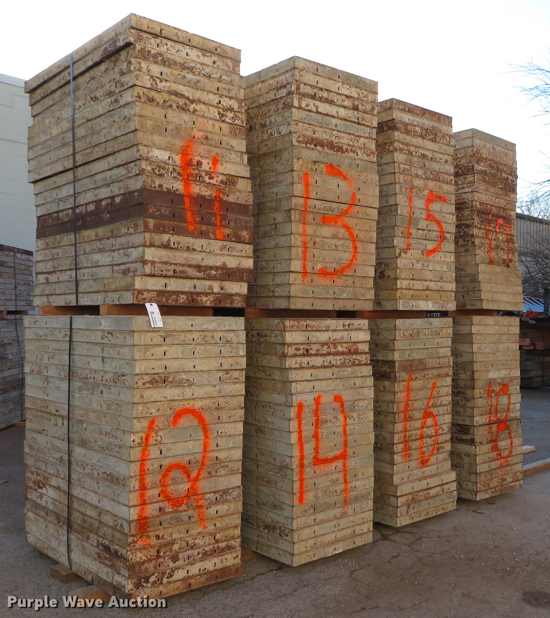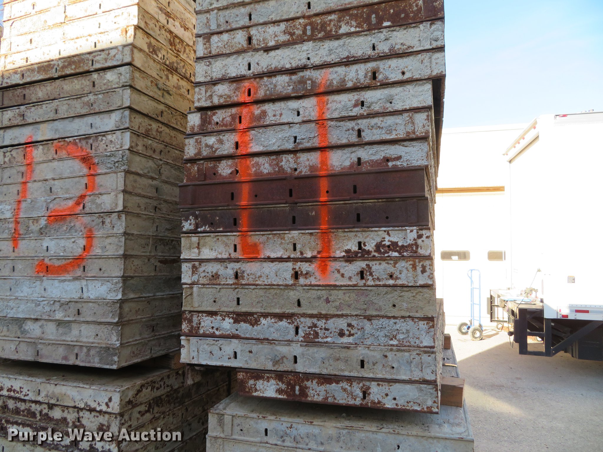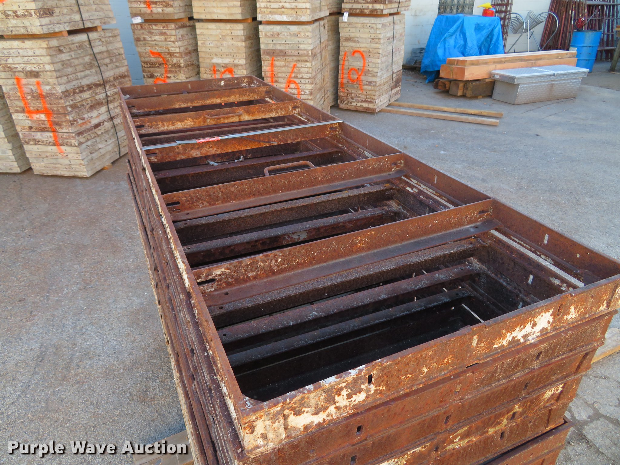 Purple Wave is selling a used Concrete Equip. or Acces. in Missouri. This item is a (160) concrete forms with the following: 4'L x 24"W, Steel frame, Wood face, Unit# 11, 12, 13, 14, 15, 16, 17, 18