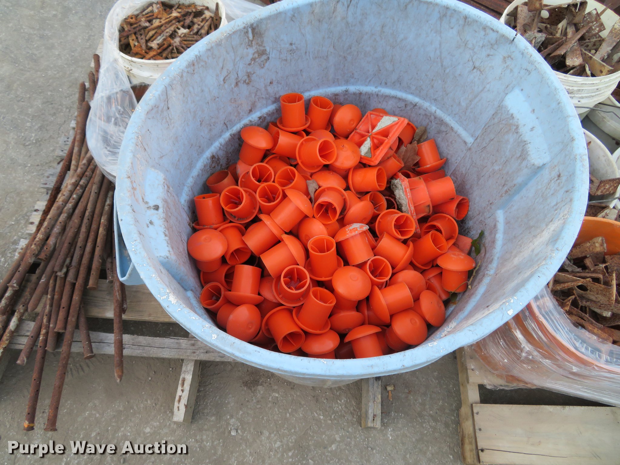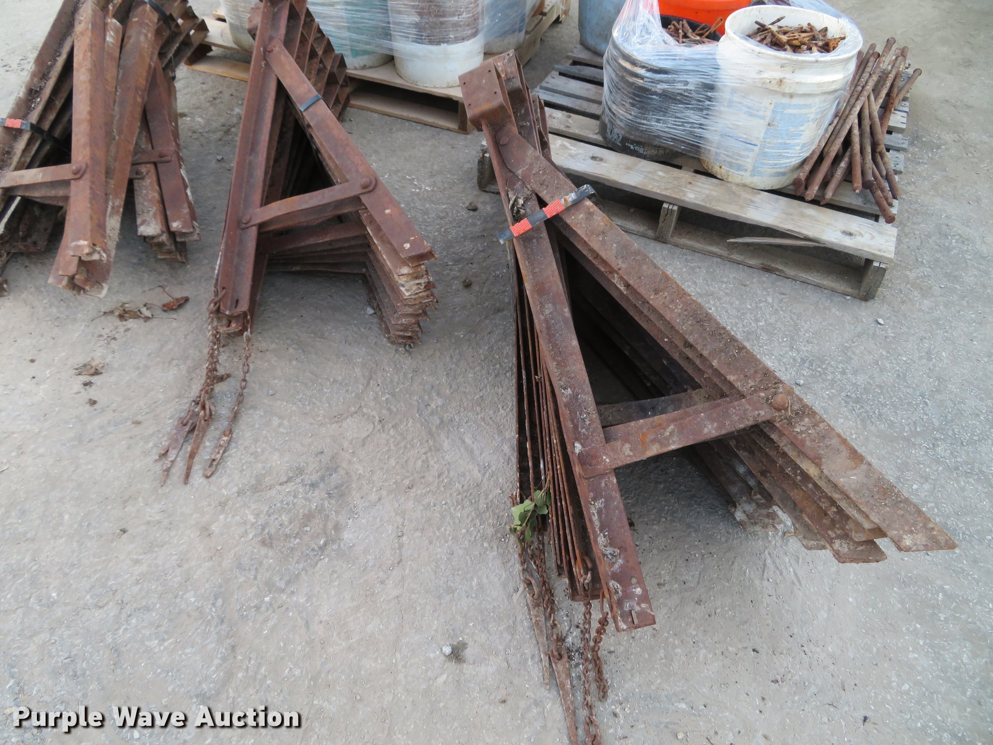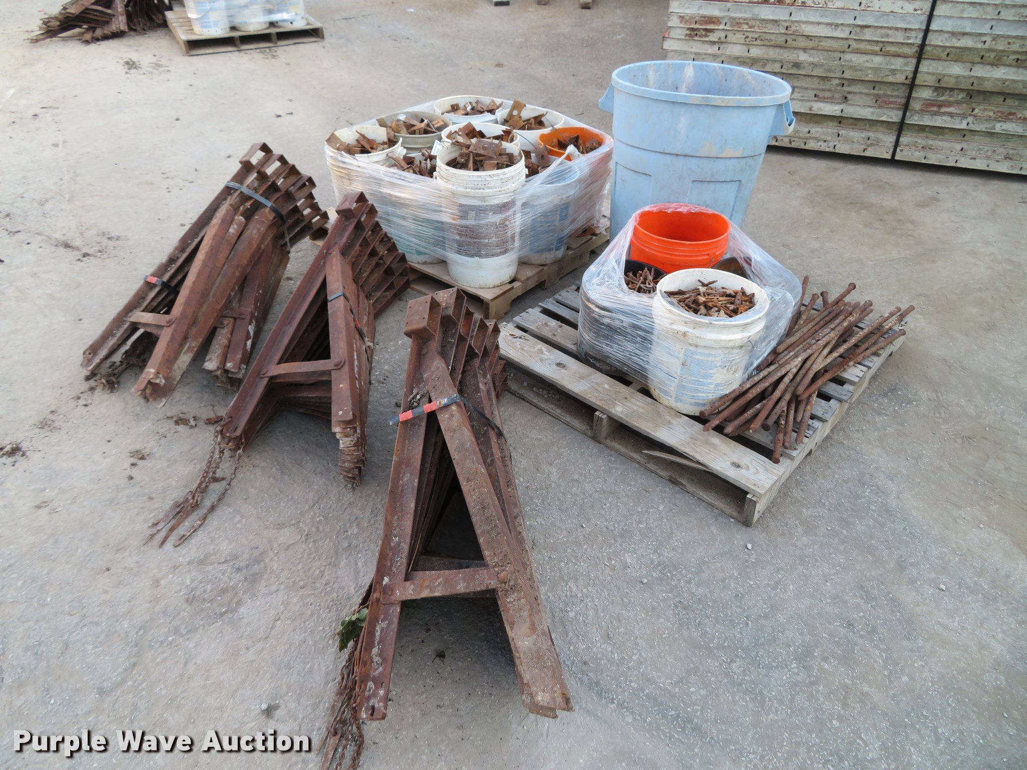 Purple Wave is selling a used Concrete Equip. or Acces. in Missouri. This item is a Concrete supplies with the following: (29) form braces, Wedge locks, Gang loop ties, Z tie holders, Orange re-bar caps, Form stakes