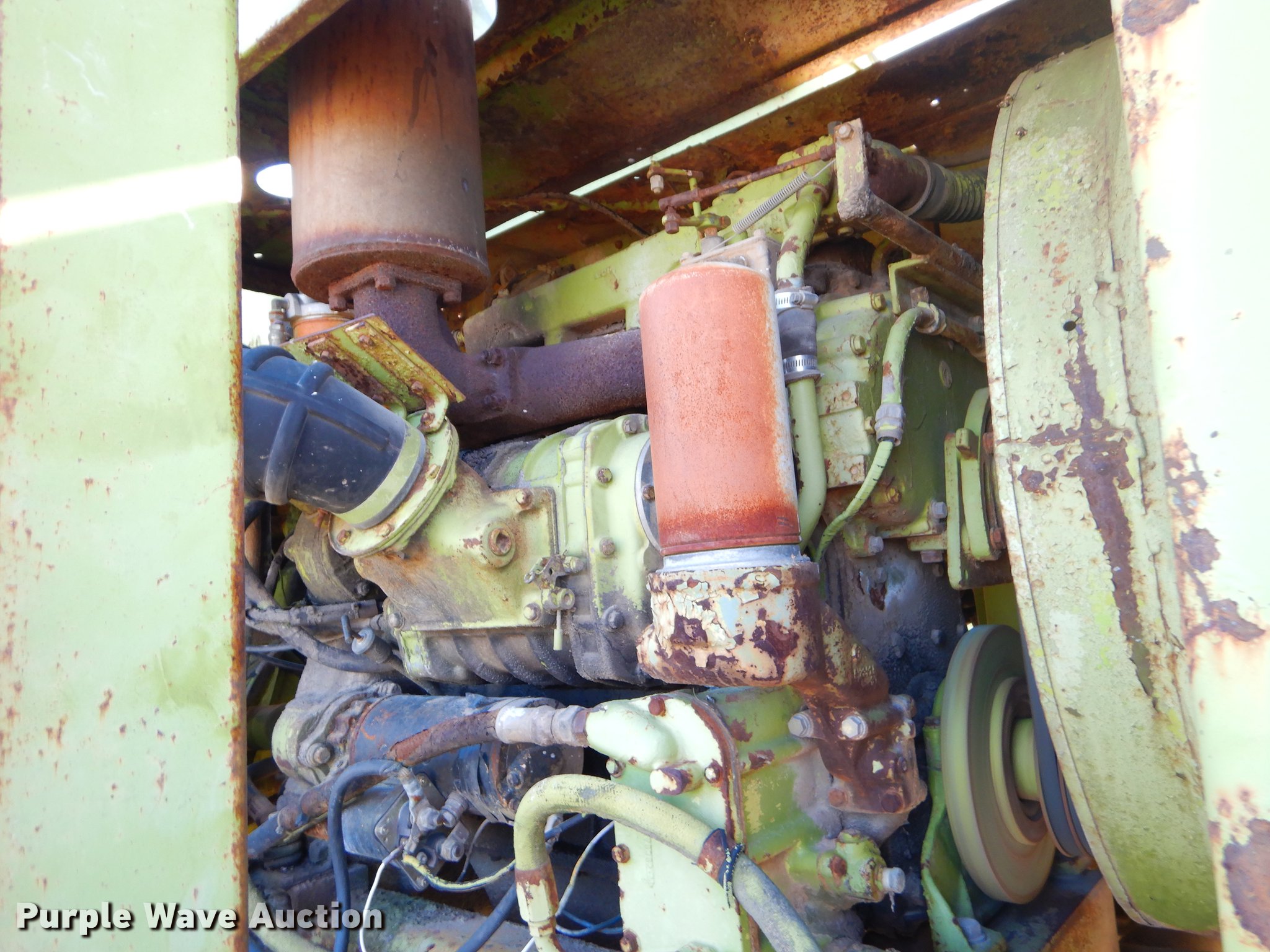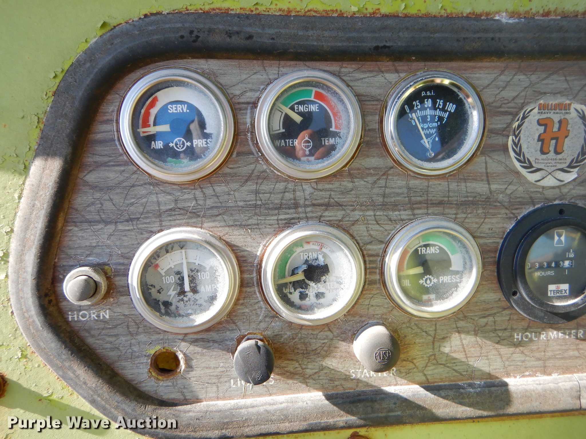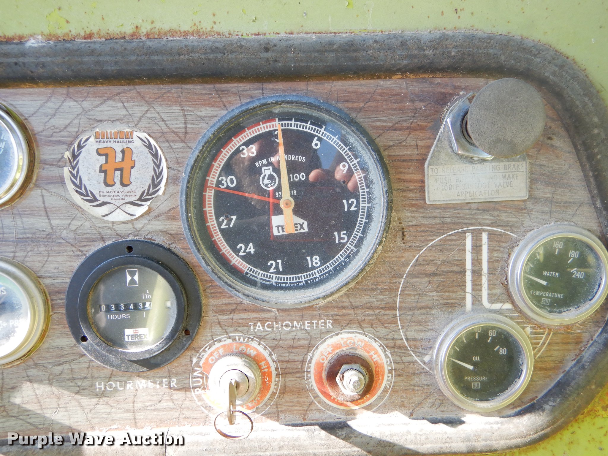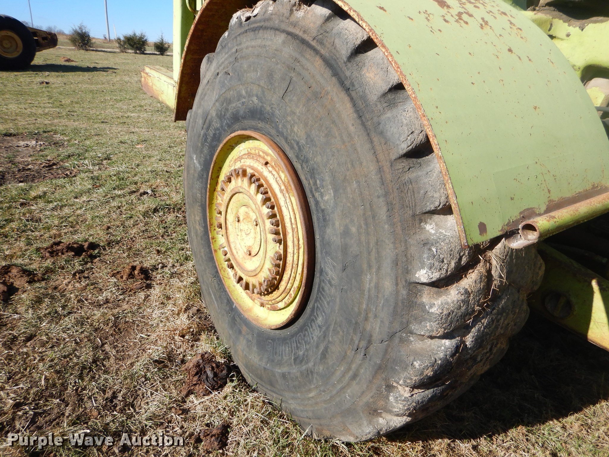 Purple Wave is selling a used Conventional Scraper in Missouri. This item is a Terex TS14B conventional scraper with the following: 3,343 hours on meter, Detroit Diesel 4-71N front and rear engines, 160 HP, Powershift transmission, 4F-4R gears, OROPS, Air suspension seat, Three lever controls, 14 cu.yd. bowl capacity, Reversible cutting edge, Hydraulic lift, Rear push block, Air brakes, 29.5R25 tires, Windshield broken, Air leak, Serial 61070