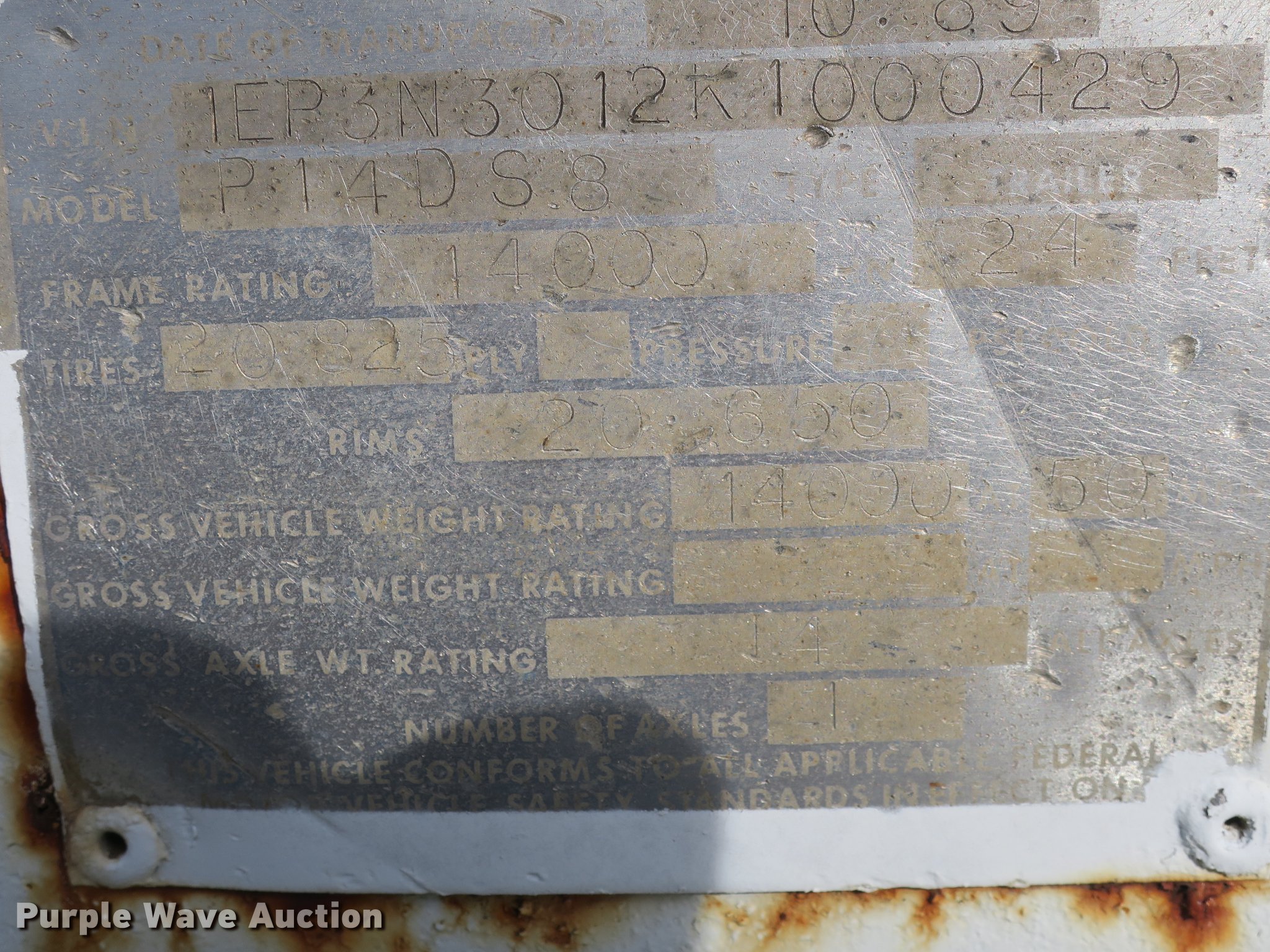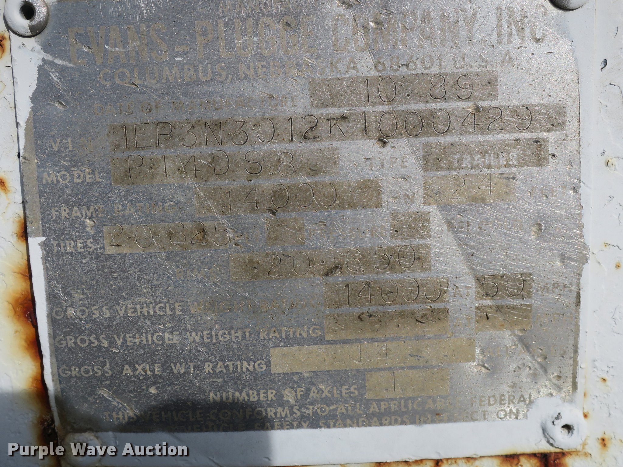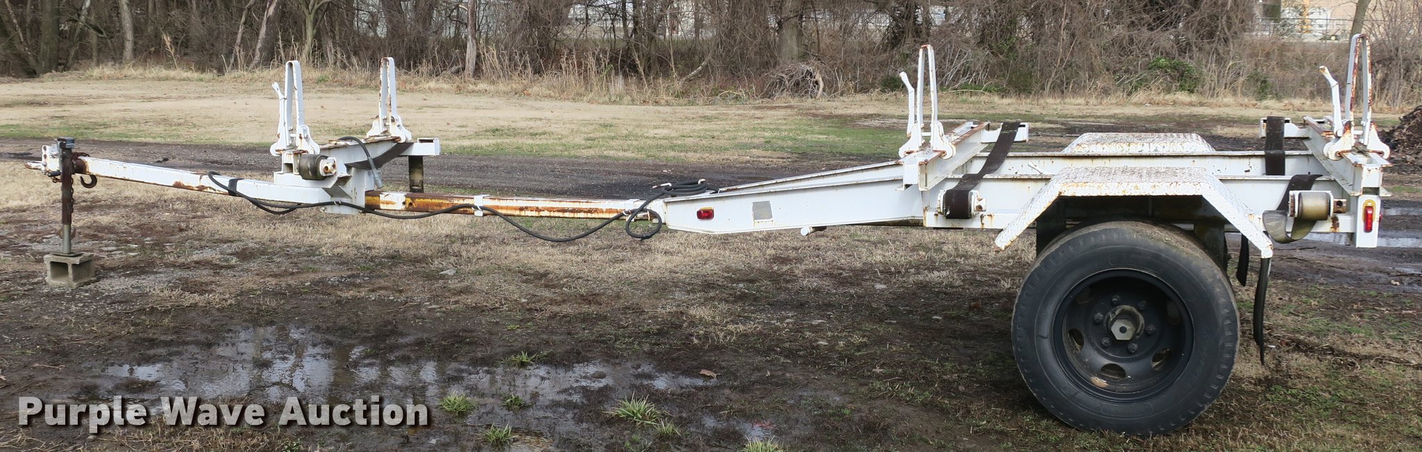 Purple Wave is selling a used Trailer Other in Missouri. This item is a 1989 Evans-Plugge R14DS3 pole trailer with the following: 25'L x 92"W overall, Pintle hitch, Single leg landing gear, Spring suspension, Electric brakes, Steel wheels, 8.25-20 tires, GVWR 14,000 lbs