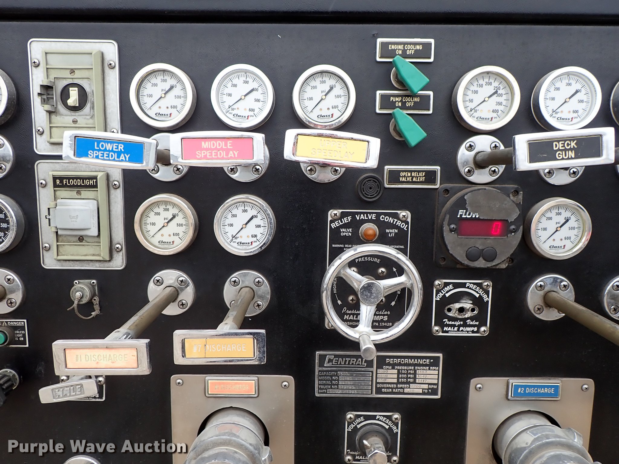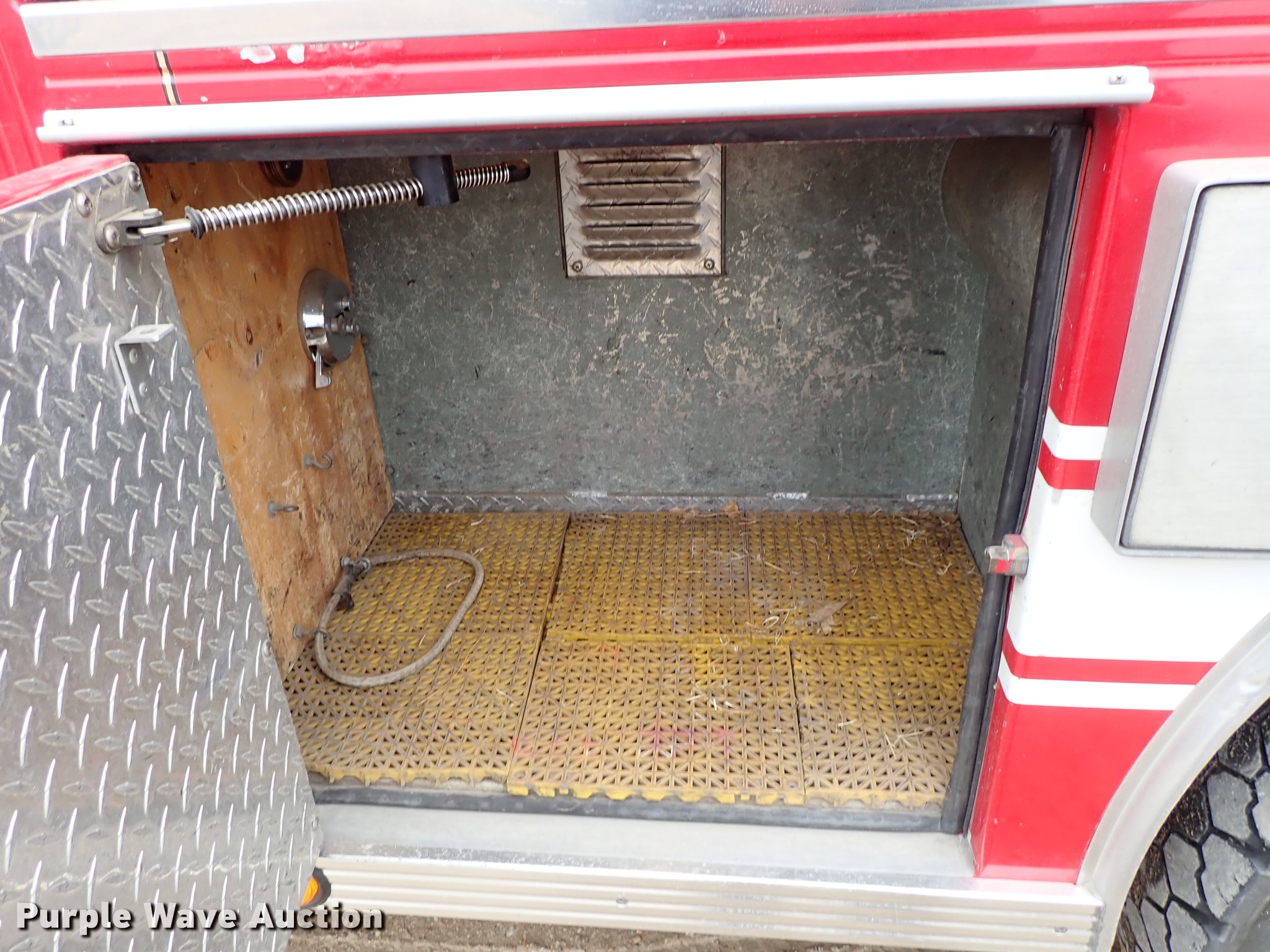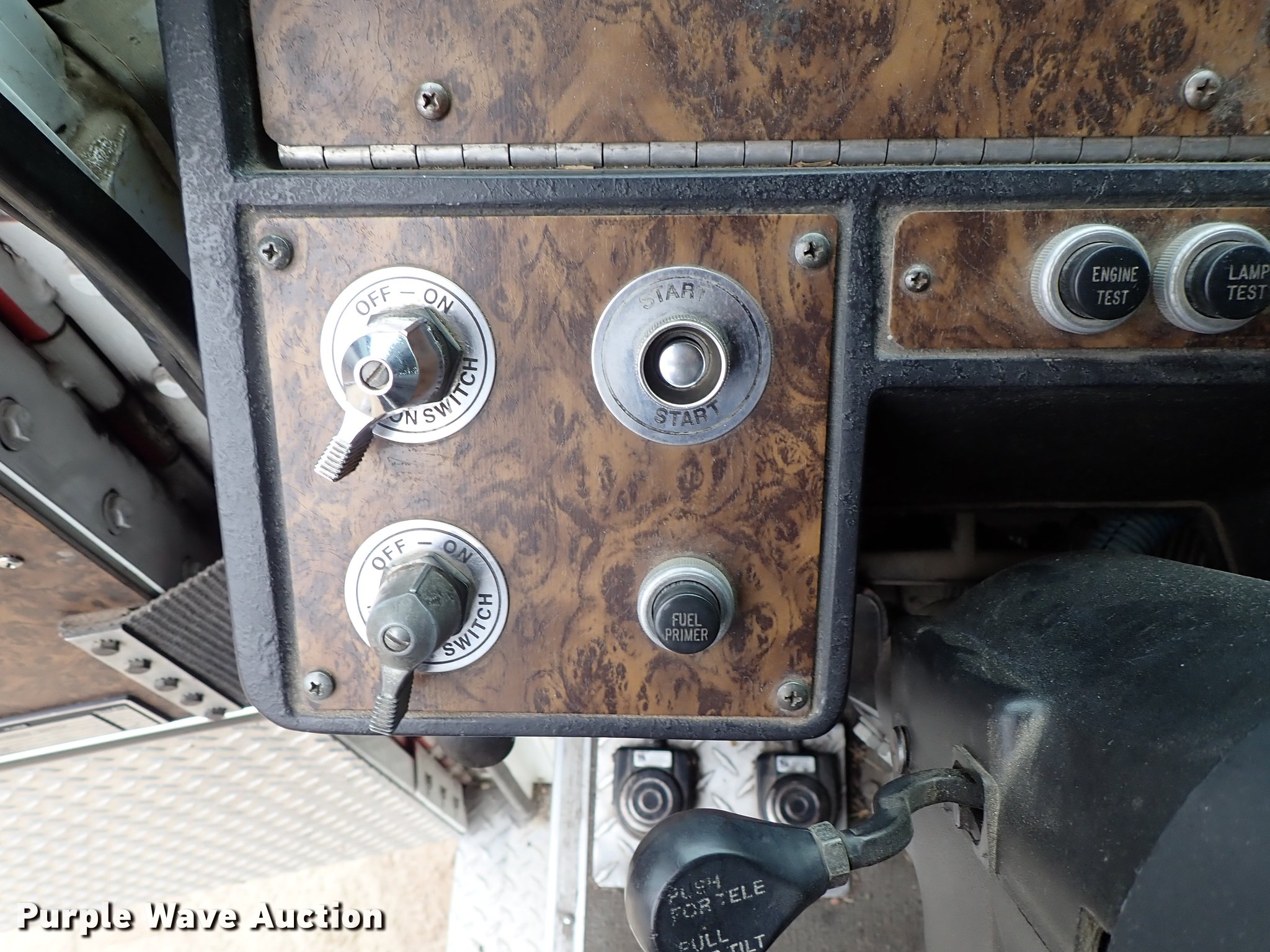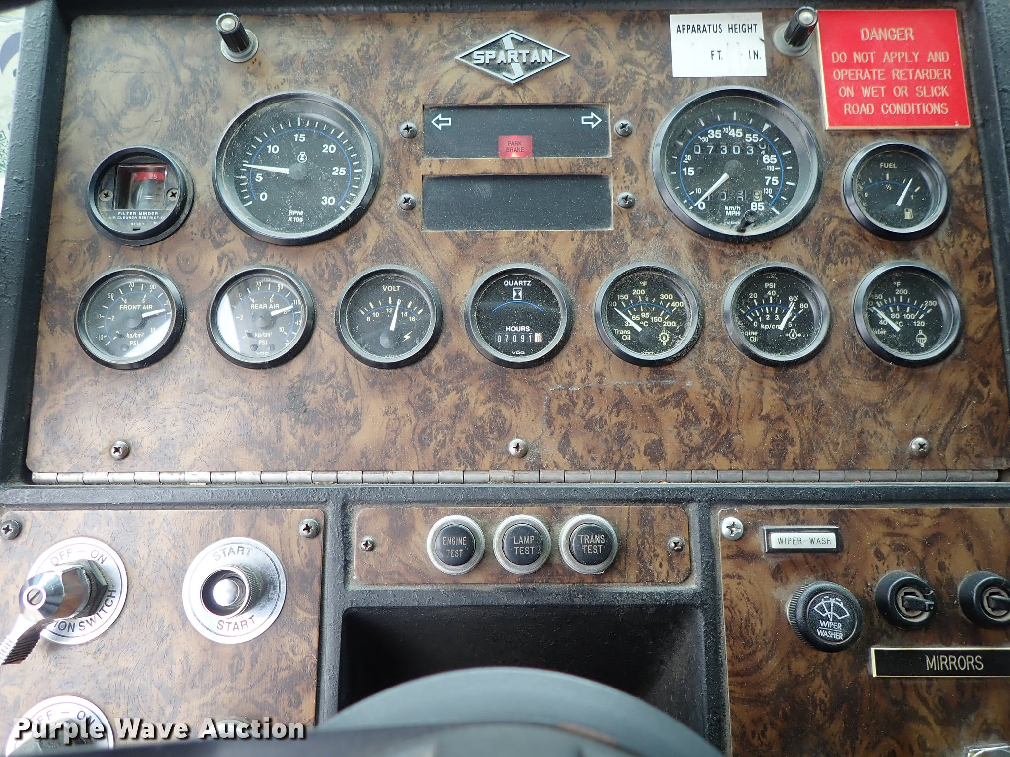 Purple Wave is selling a used Fire Truck or Emergency Vehicle in Kansas. This item is a 1993 Spartan Gladiator GA40M-2142 fire truck with the following: 7,303 miles on odometer, Actual mileage unknown, Detroit Diesel Series 60 12.7L L6 diesel engine, Automatic transmission, Single axle, Differential lock, AC and heat, Heated mirrors, Six passenger capacity, Control performance platform, 1,500 gallon tank, Serial 64059, Hale pump, Automatic transfer valve removed, Storage, Water gun, Generator, 234 hours on meter, Lombardi diesel engine, Electric start, Electrical cord/electric reel, Full light package, Horn/sirens, Spring suspension, Air brakes, 385/65R22.5 front tires, 12R22.5 rear tires, GVW 42,000 lbs