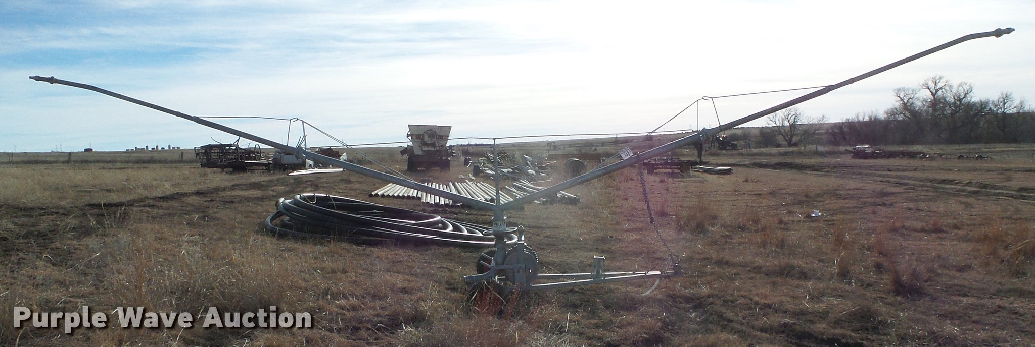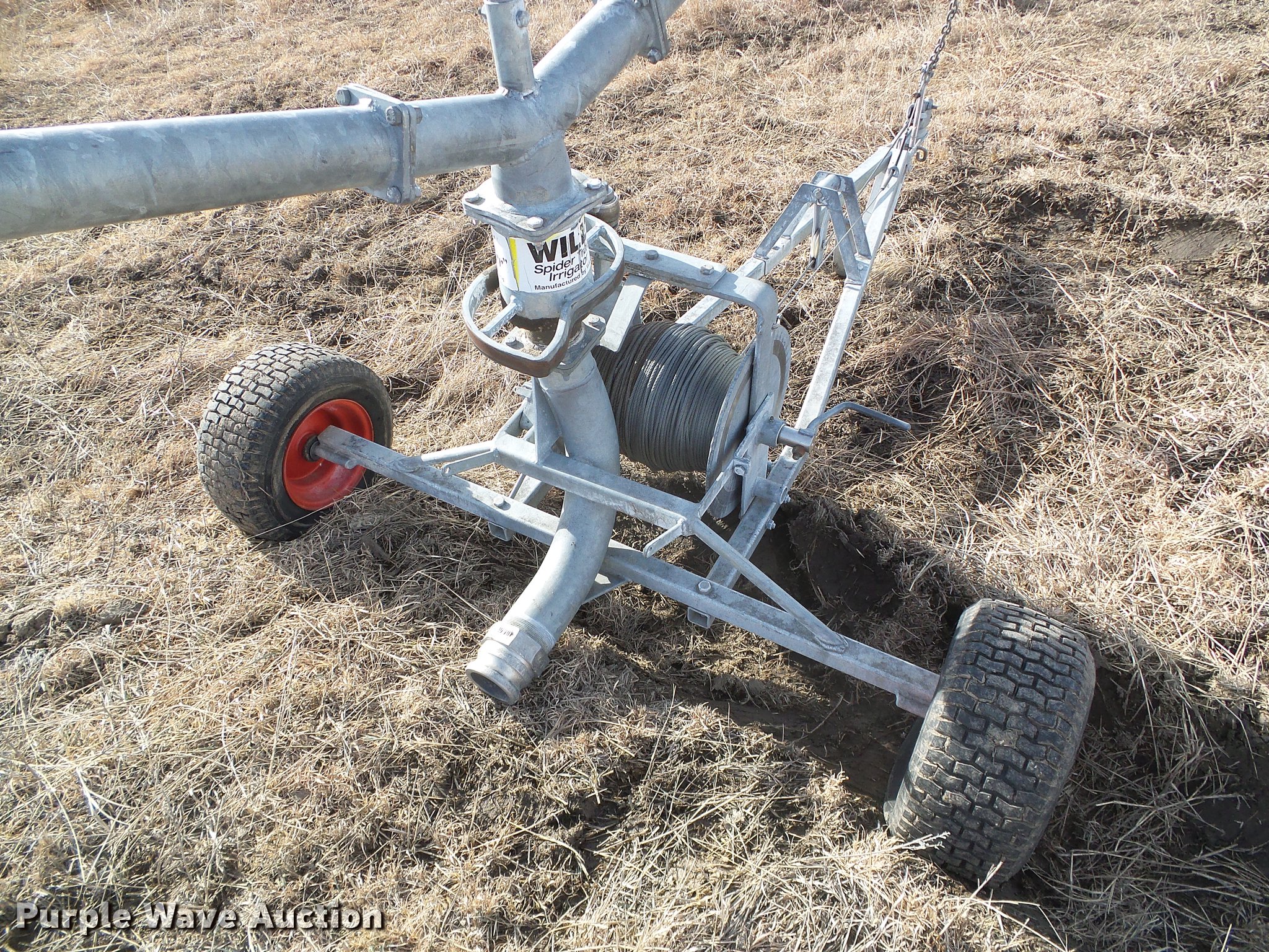 Purple Wave is selling a used Irrigation Equip. Attach. in Kansas. This item is a Williams Spider Travelling irrigator with the following: 32'L overall, 3" inlet, 3/4" end nozzle plumbing, Removable end arms, Approx. 300' of 3" feed hose, Winch adjustment, 16x6.50-8 tires