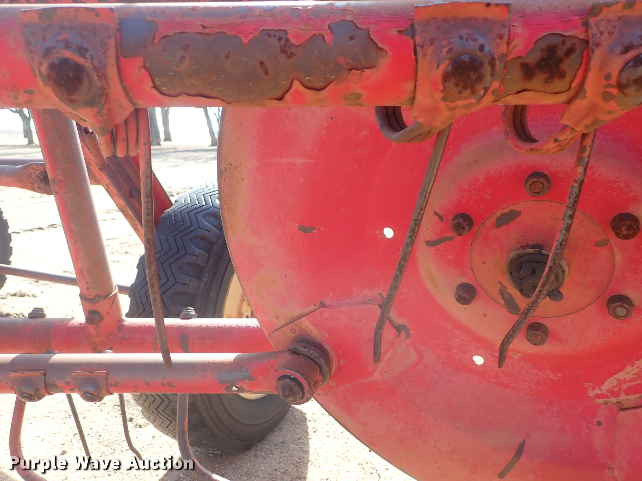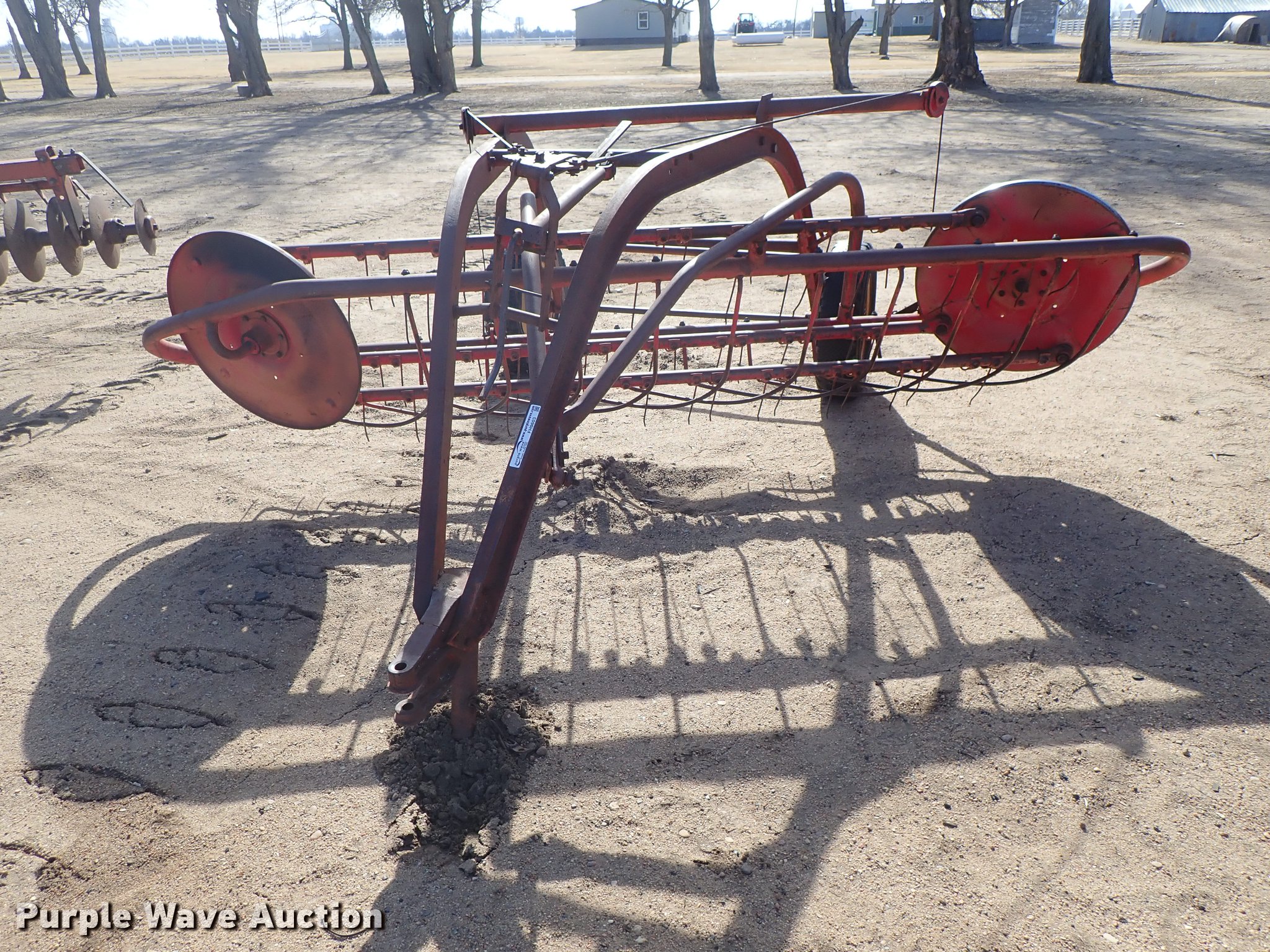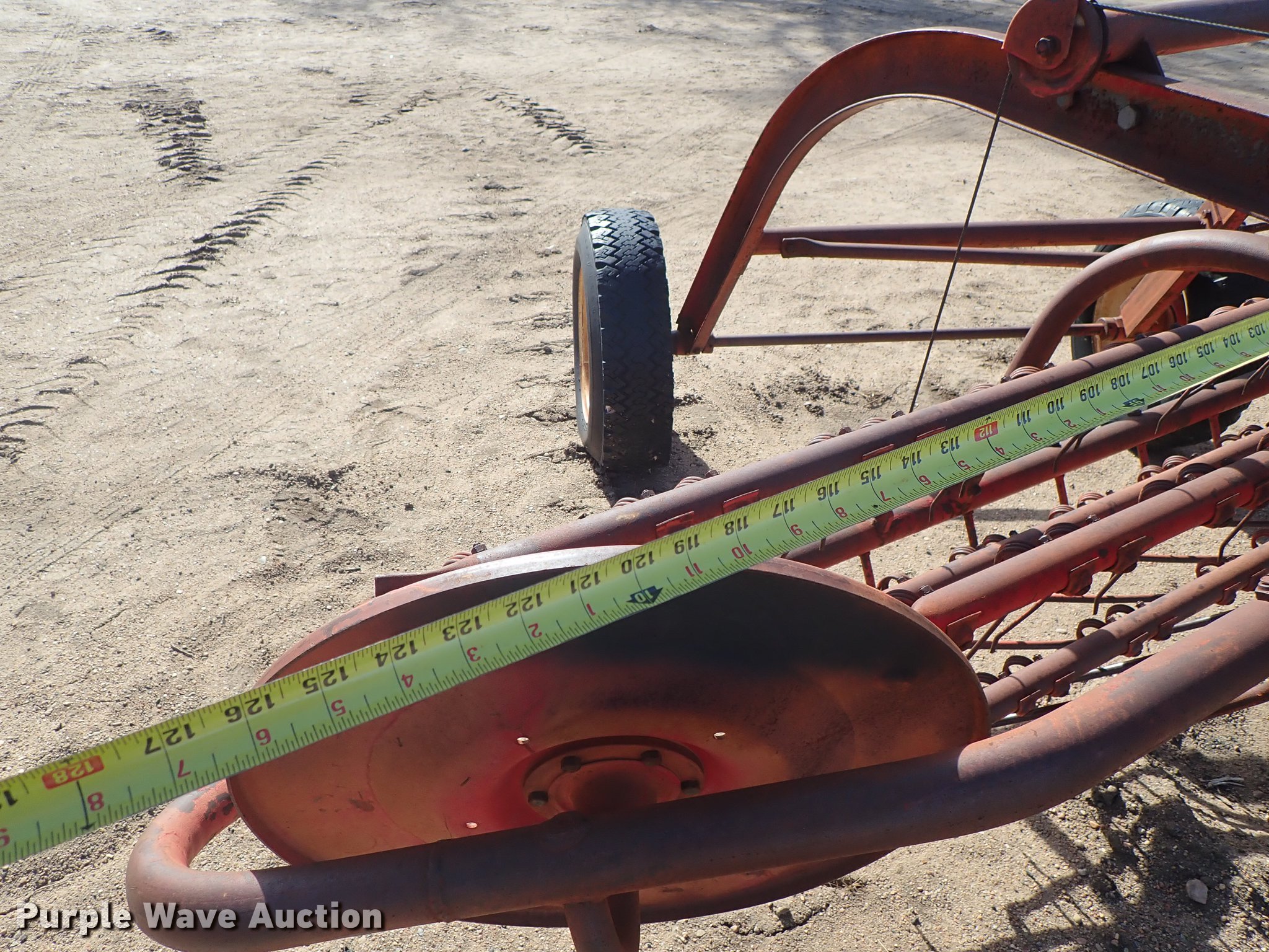 Purple Wave is selling a used Hay Rake in Kansas. This item is a Massey-Ferguson 36 hay rake with the following: Approx. 10'W, Pin hitch, One tire damaged, Serial 014715