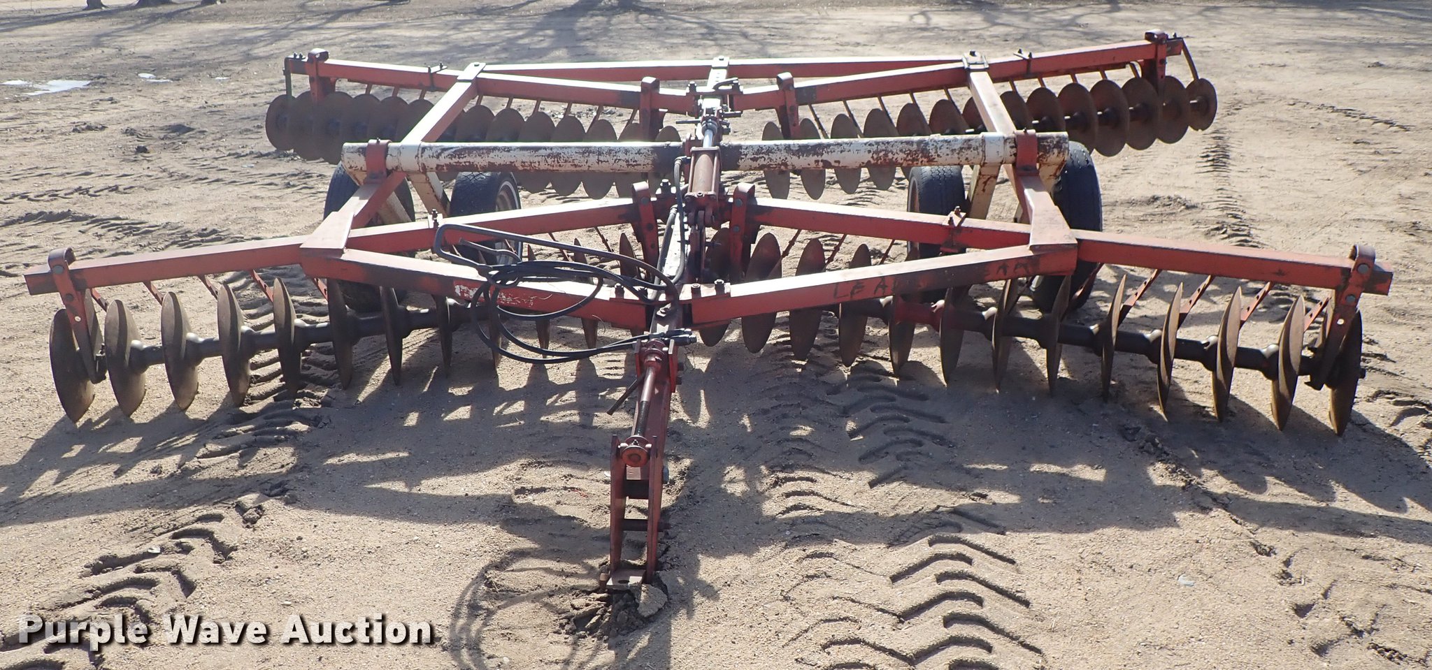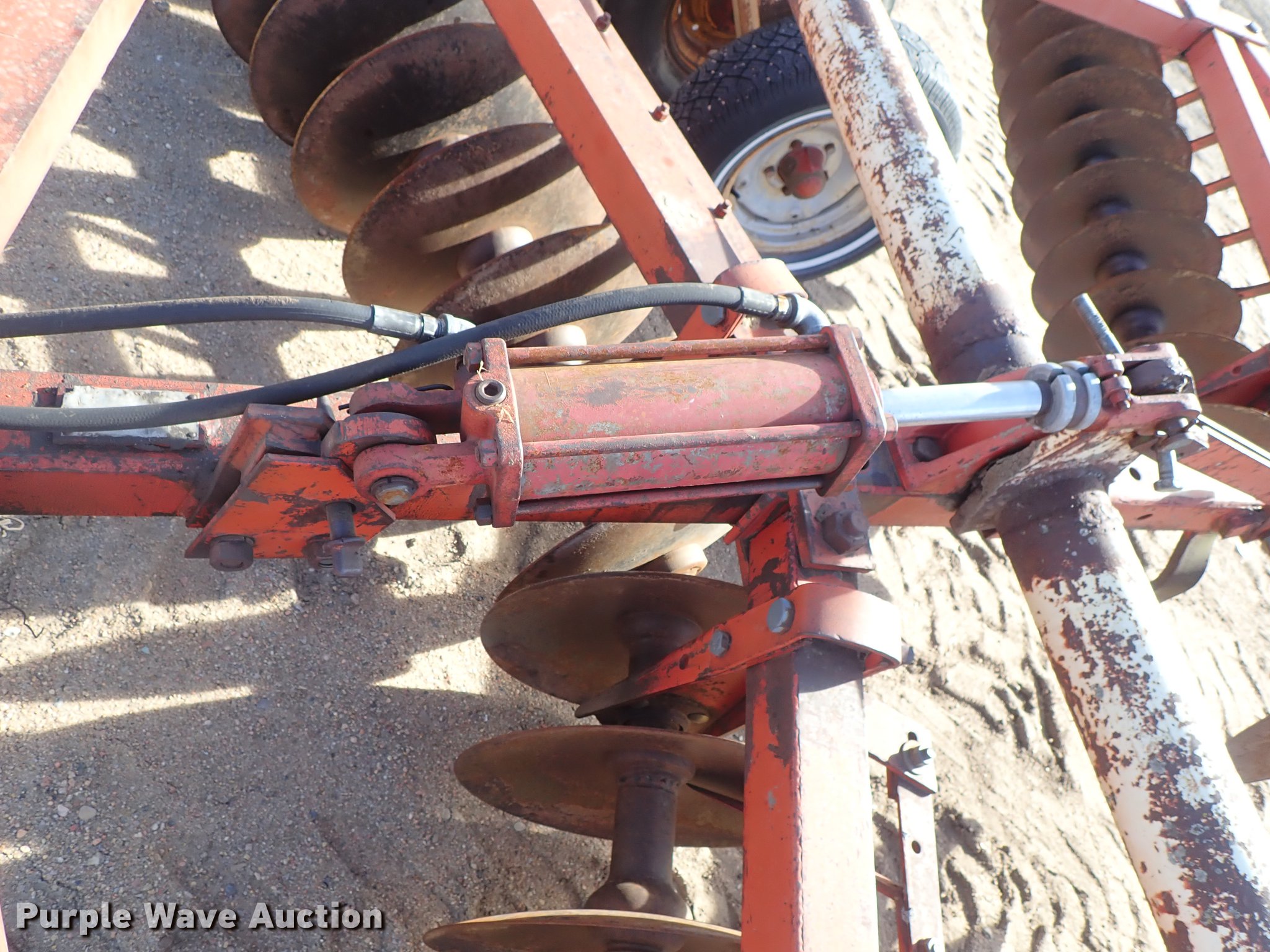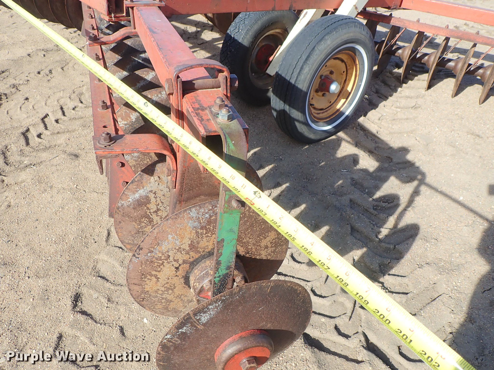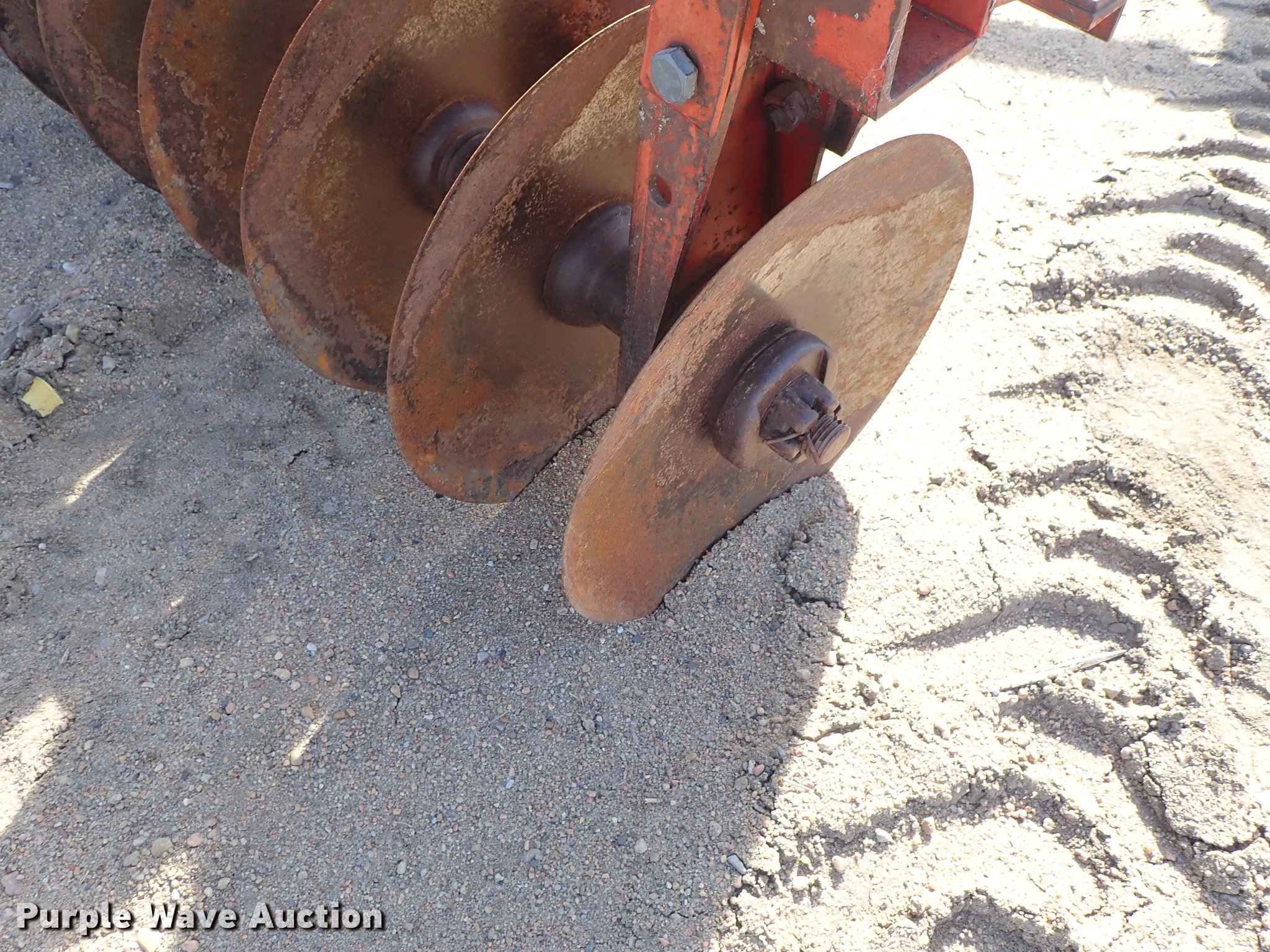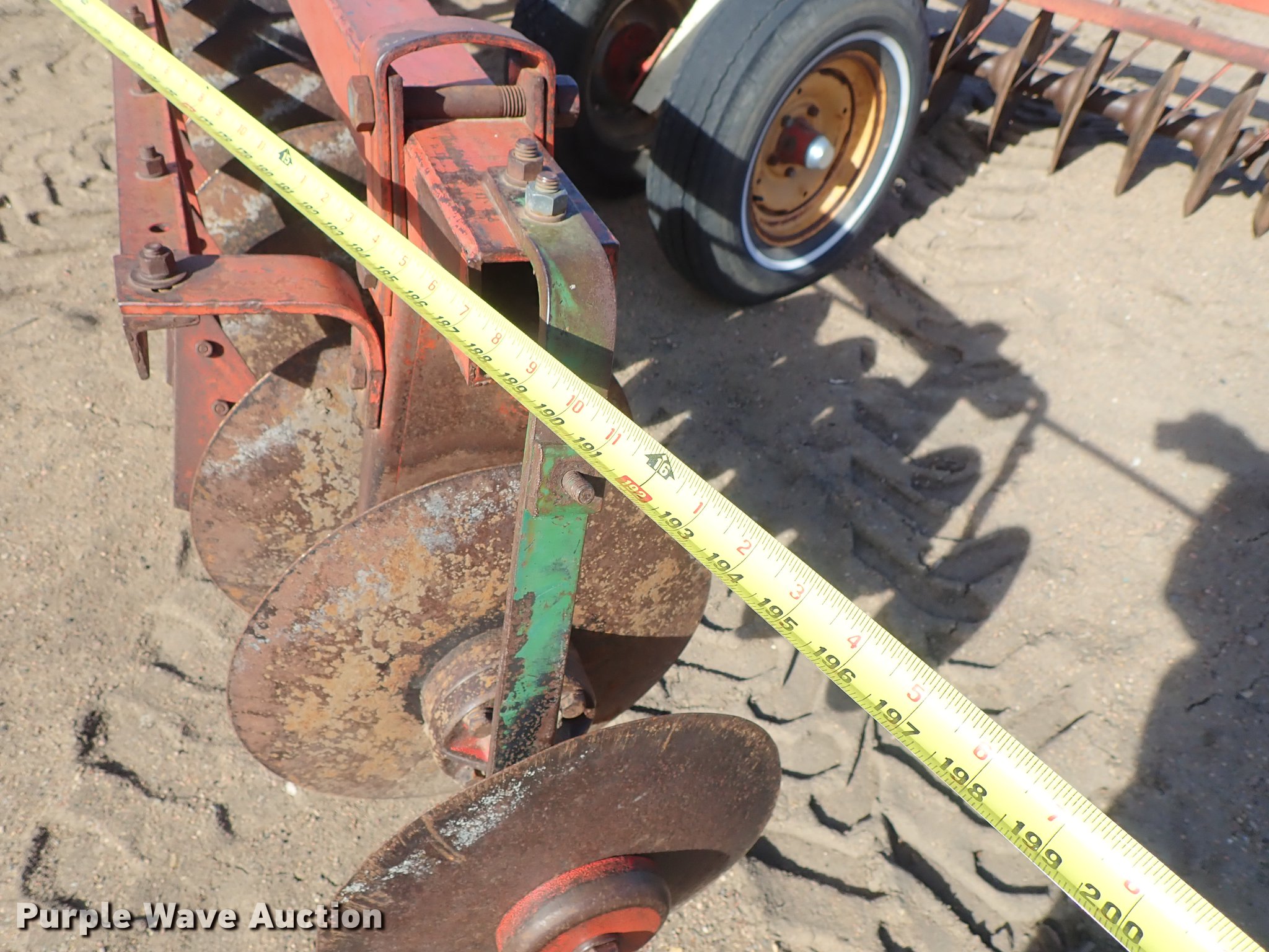 Purple Wave is selling a used Disk in Kansas. This item is a Krause 613 disk with the following: Approx. 16'W, 16" diameter disks, Disk scrapers, Hydraulic lift, Pin hitch, 7.00-15 transport tires, Serial 5477