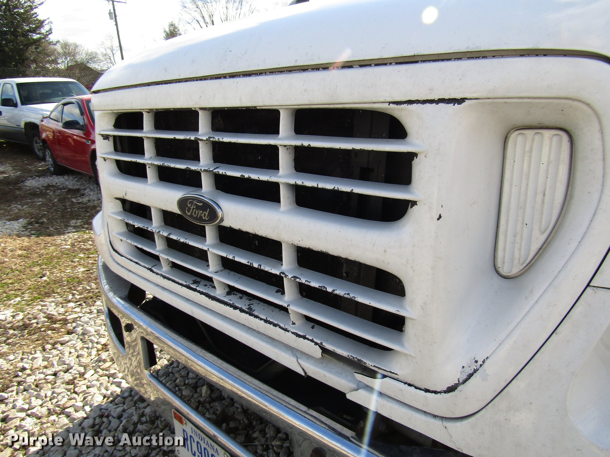Purple Wave is selling a used Rollback or Tow Truck in Indiana. This item is a 2000 Ford F650 Super Duty rollback truck with the following: 96,849 miles on odometer, 7.3L V8 turbo diesel engine, Six speed manual transmission, Single axle, AC and heat, AM/FM/CD, PTO, Beacon light, Block heater, Jerr Dan rollback steel rollback bed, 21'L x 8'W, Stake side pockets, Headache rack, Winch, Hand controls, Storage boxes, 3,000 lbs maximum wheel lift capacity, 7,500 lbs maximum wheel lift tow capacity, 10,000 lbs deck capacity, Serial 49163, Dual fuel tanks, 227" wheelbase, Spring suspension, Hydraulic brakes, 255/70R22.5 tires, GVWR 26,000 lbs