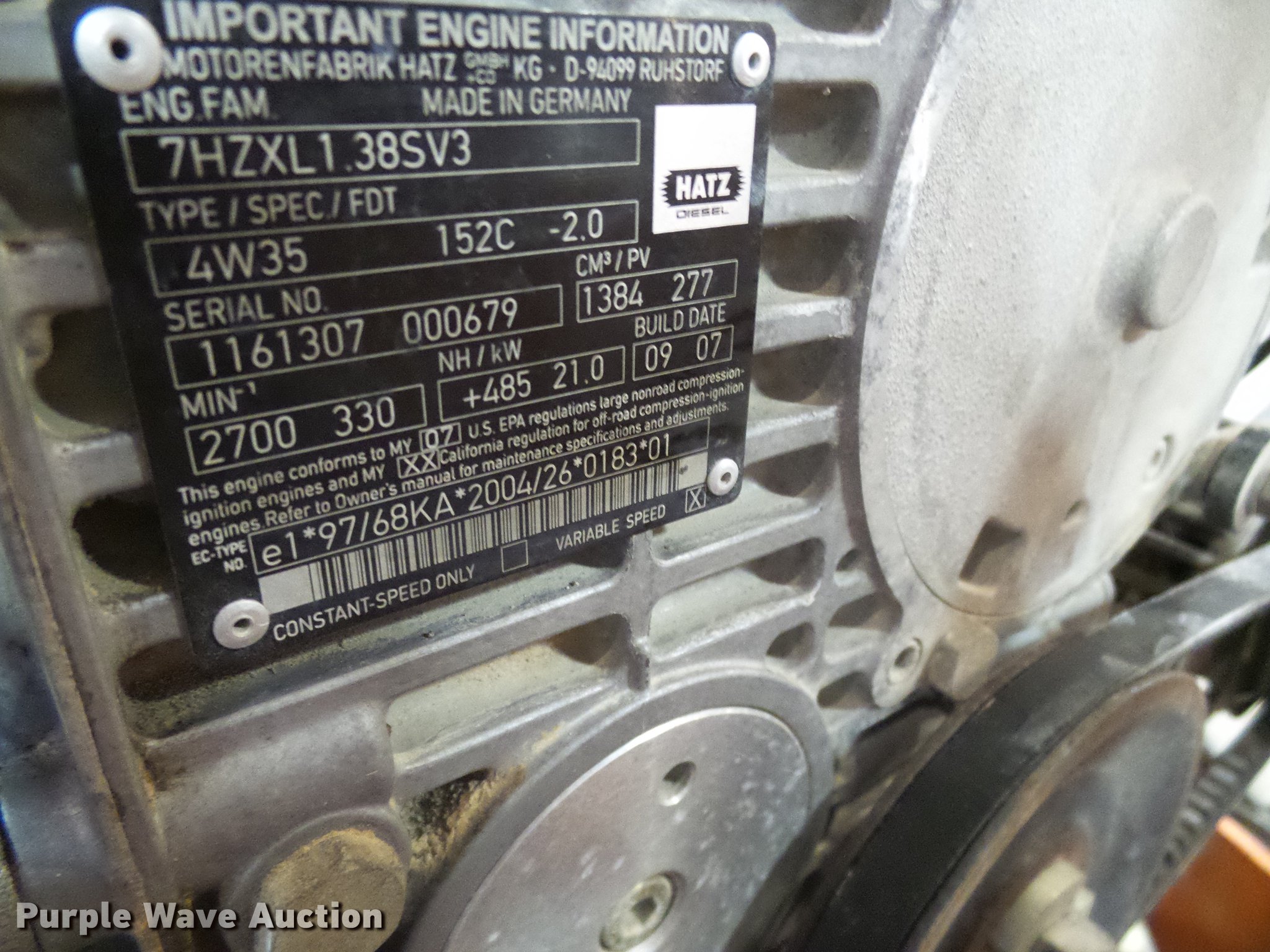 - Hatz 7HZXL138SV3 four cylinder diesel engine