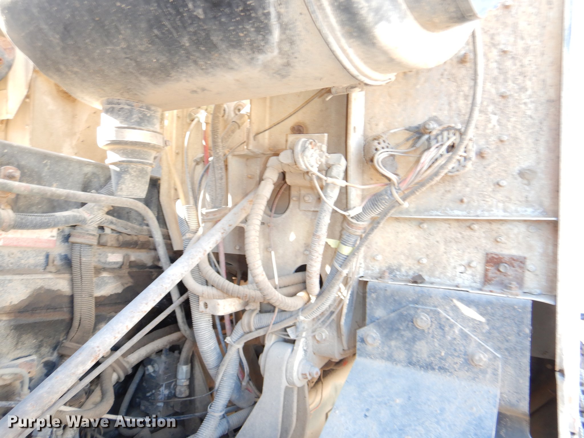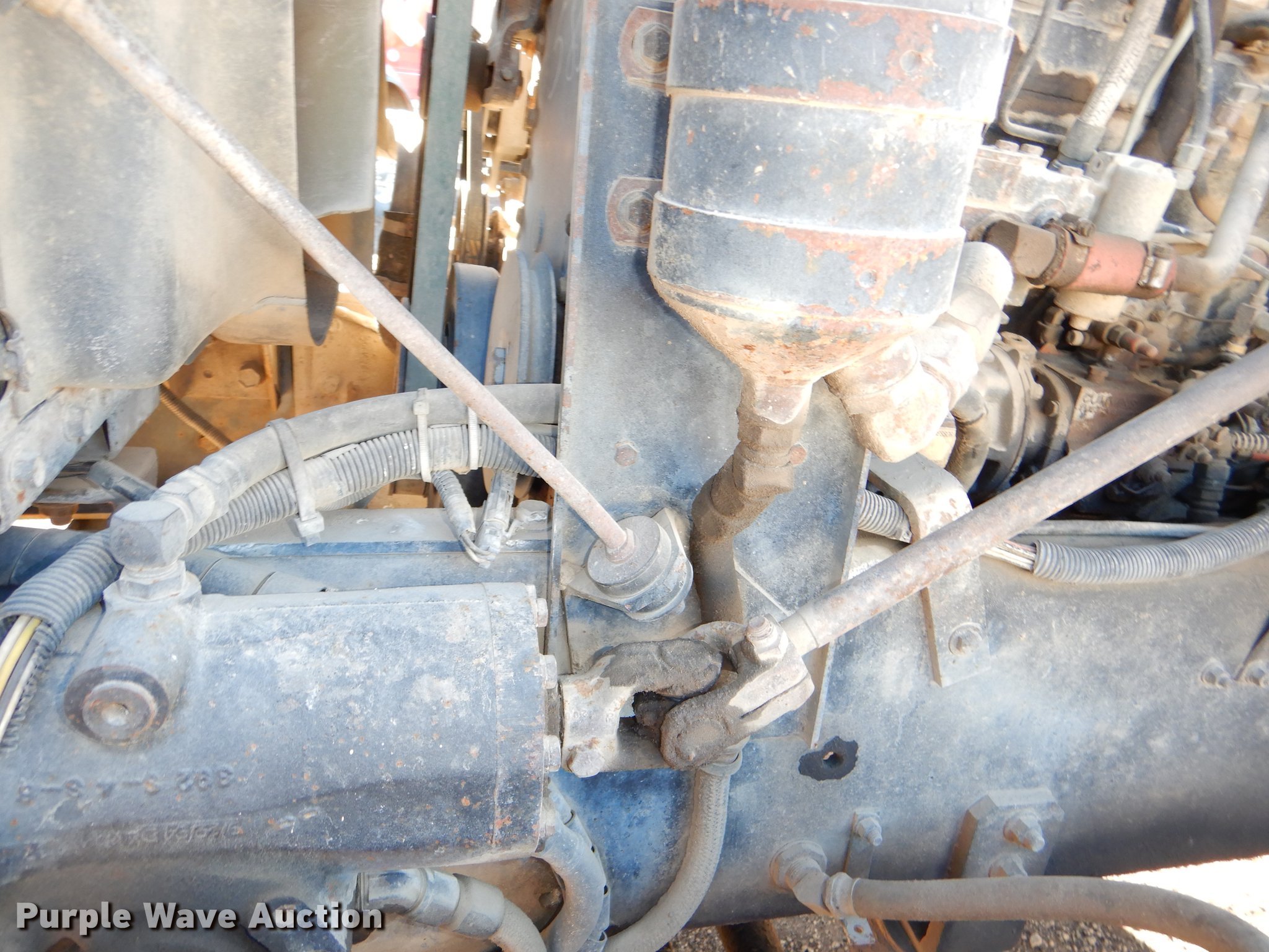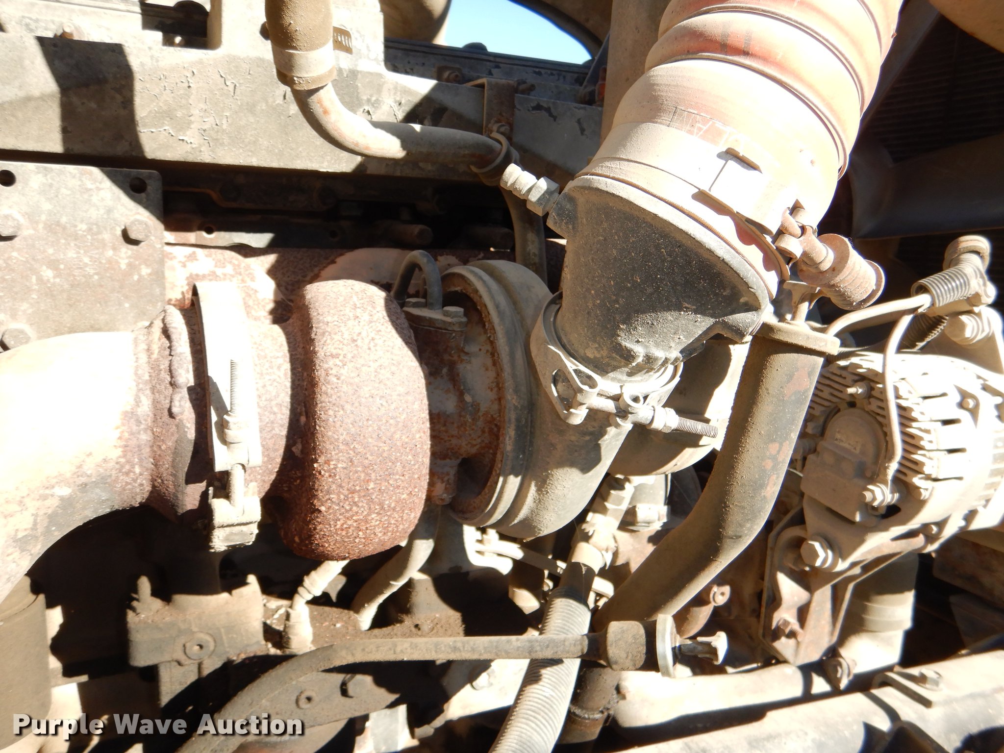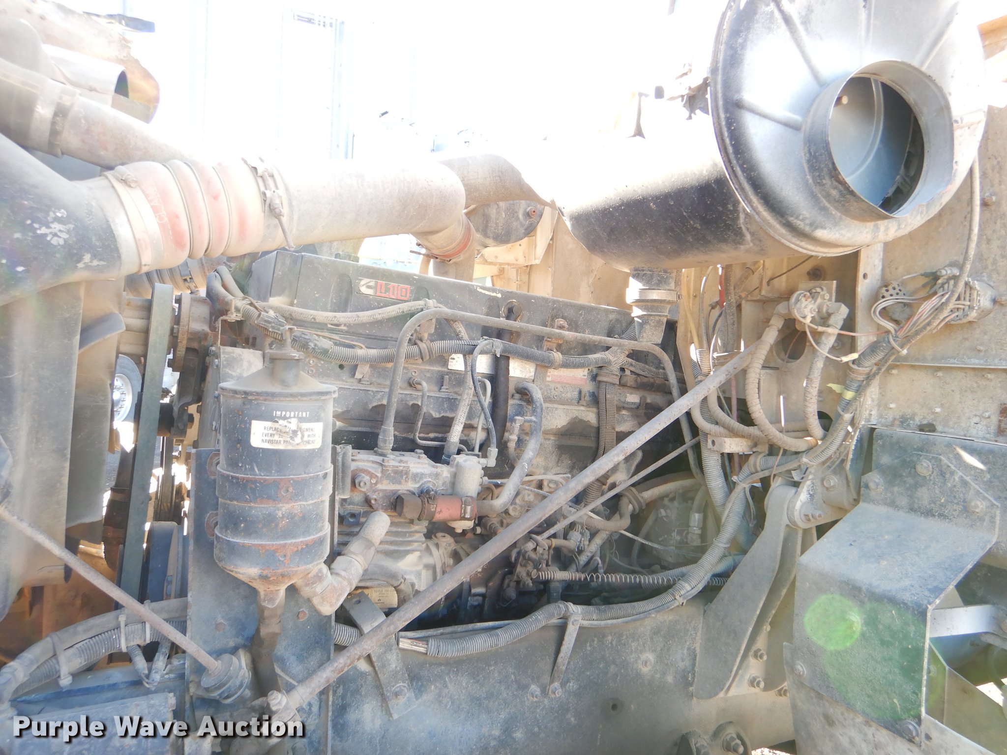 Purple Wave is selling a used Truck Chassis in Kansas. This item is a 1995 International Paystar 5000 truck cab and chassis with the following: 155,286 miles on odometer, Cummins L10 10.0L L6 turbo diesel engine, Serial 34758140, Eaton Fuller manual transmission, Inter-axle differential lock, Tandem axle, Heat, Air suspension seat, Front and rear tow hooks, Storage box, Single rear exhaust stack, 225" wheelbase, 205" frame, Walking beam suspension, Air brakes, 425/65R22.5 front tires, 11R22.5 rear tires, Passenger seat missing