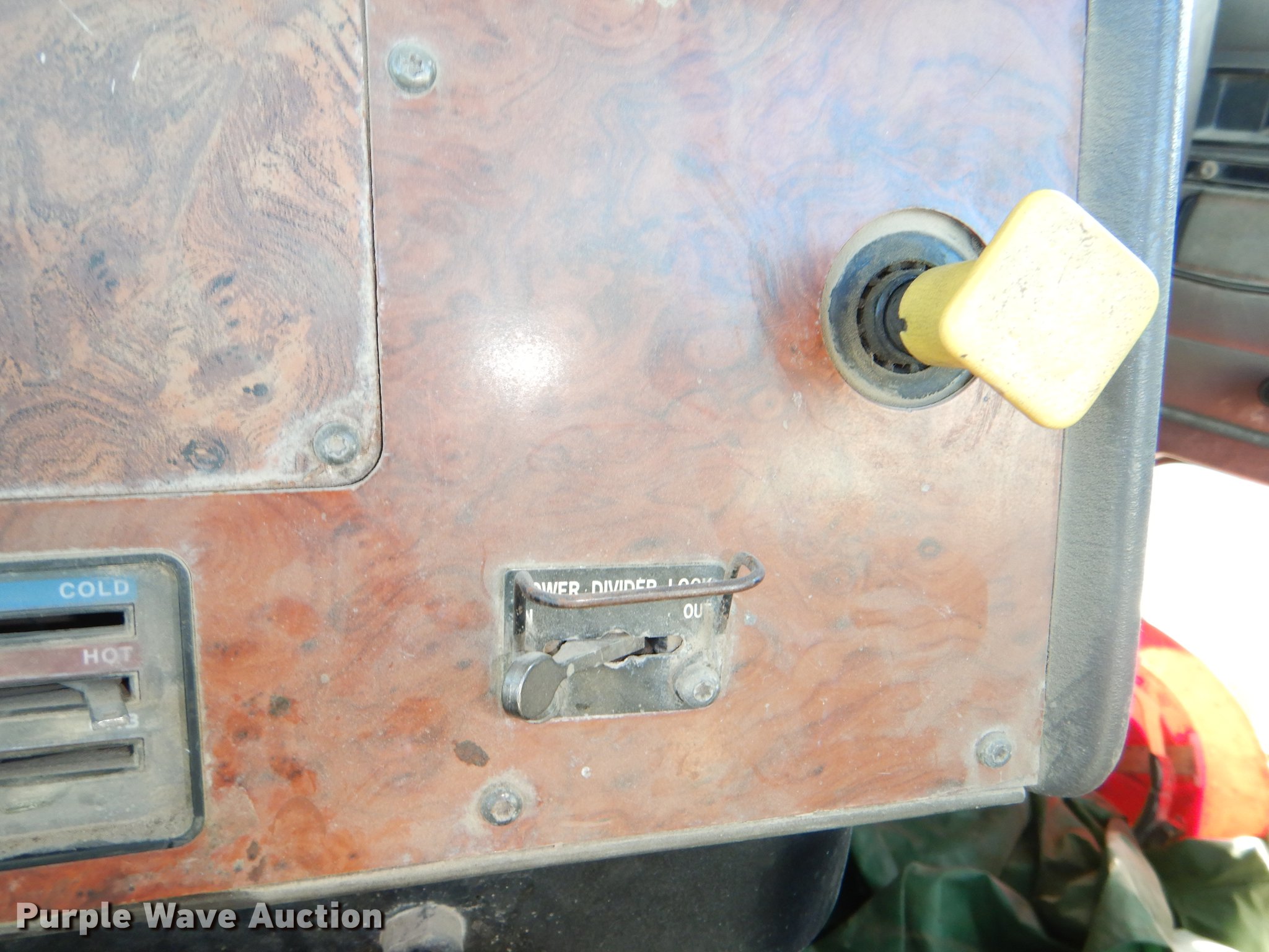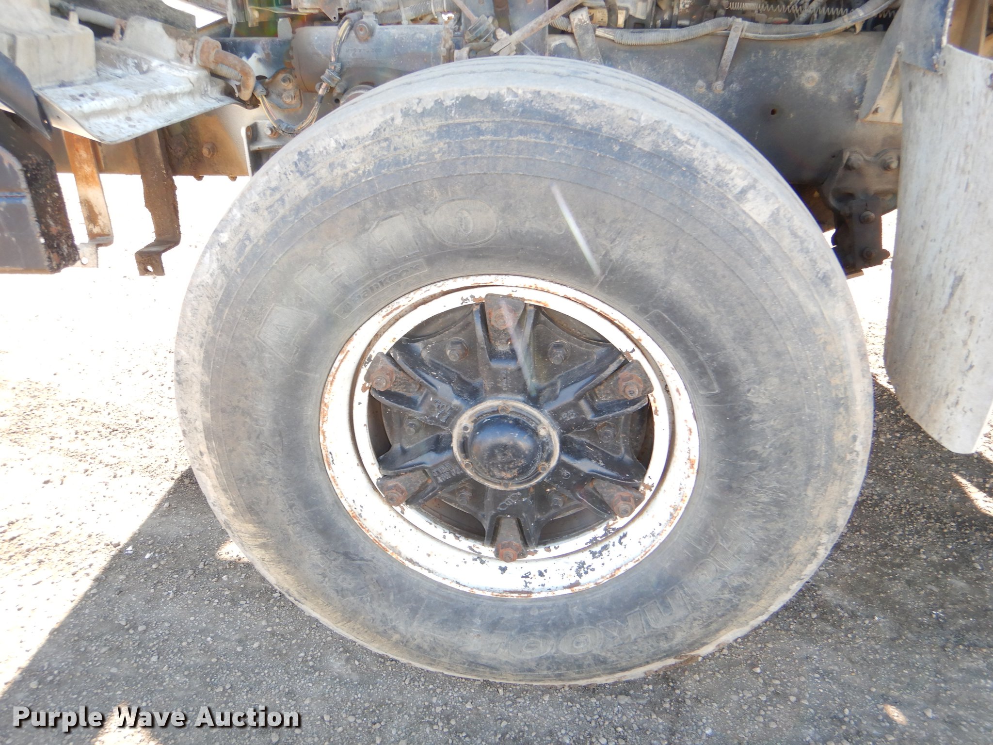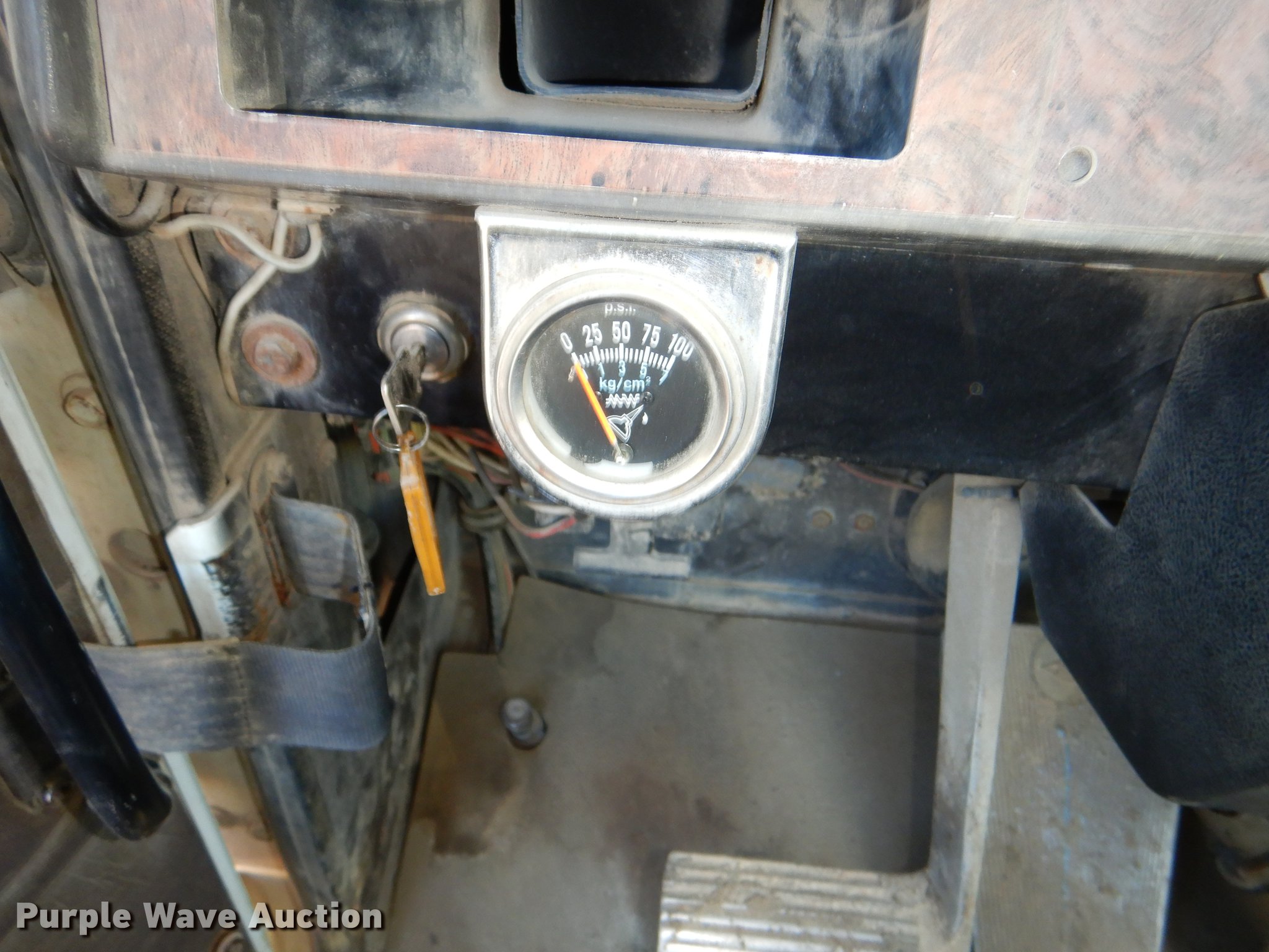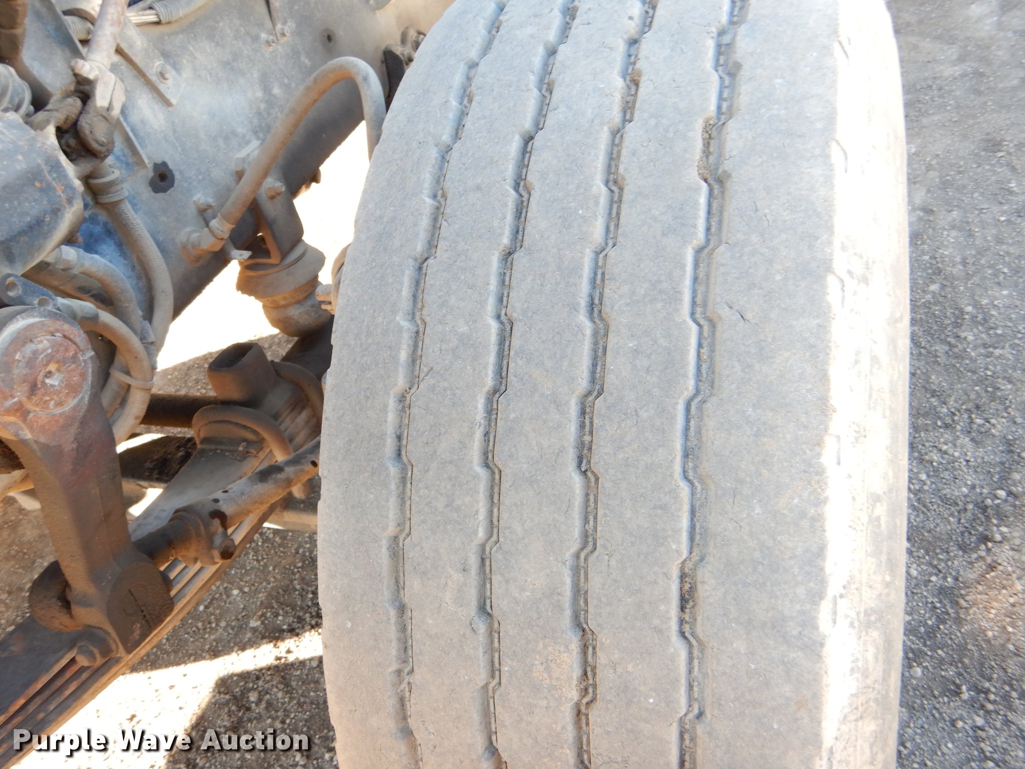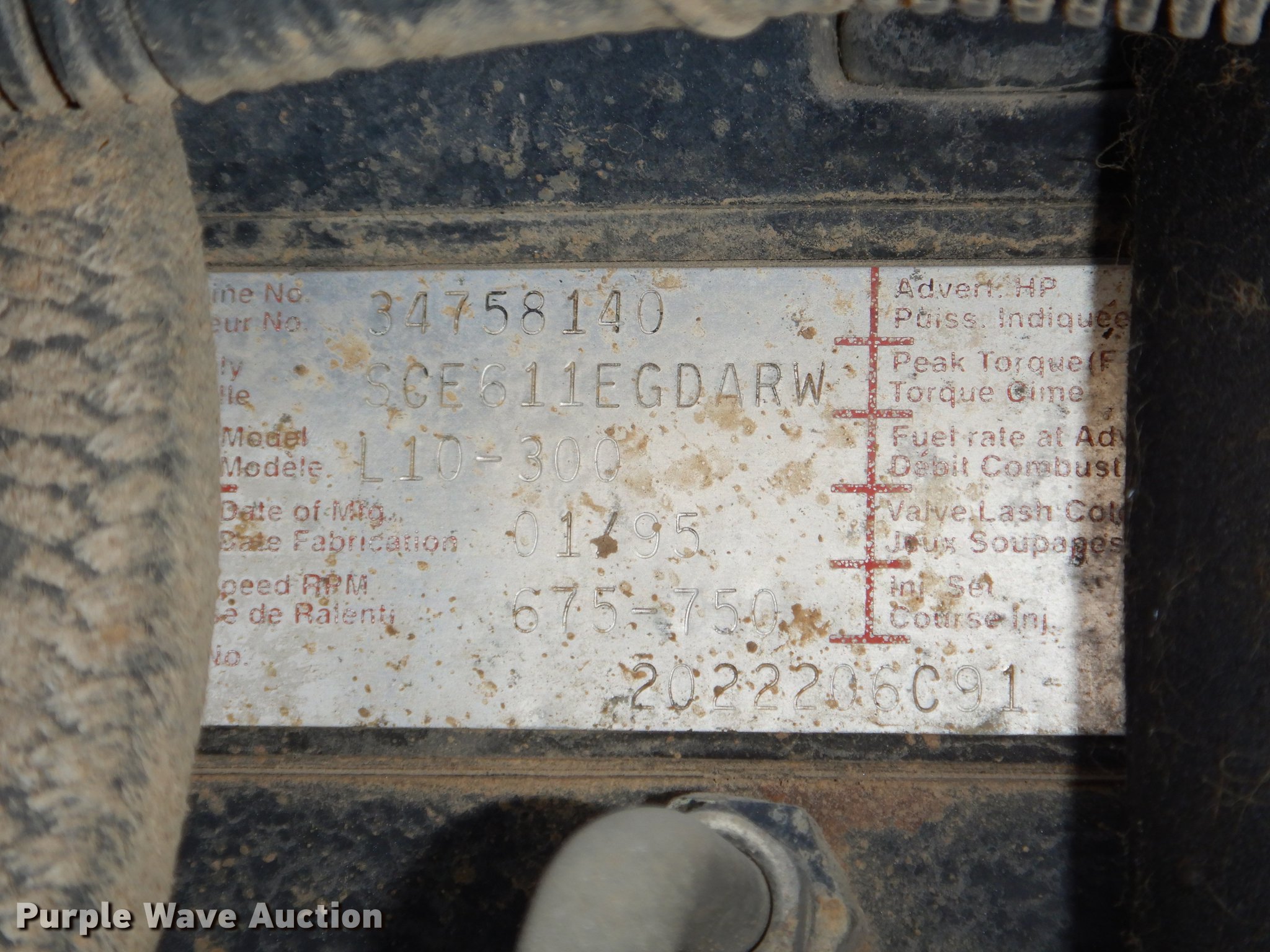 Purple Wave is selling a used Truck Chassis in Kansas. This item is a 1995 International Paystar 5000 truck cab and chassis with the following: 155,286 miles on odometer, Cummins L10 10.0L L6 turbo diesel engine, Serial 34758140, Eaton Fuller manual transmission, Inter-axle differential lock, Tandem axle, Heat, Air suspension seat, Front and rear tow hooks, Storage box, Single rear exhaust stack, 225" wheelbase, 205" frame, Walking beam suspension, Air brakes, 425/65R22.5 front tires, 11R22.5 rear tires, Passenger seat missing
