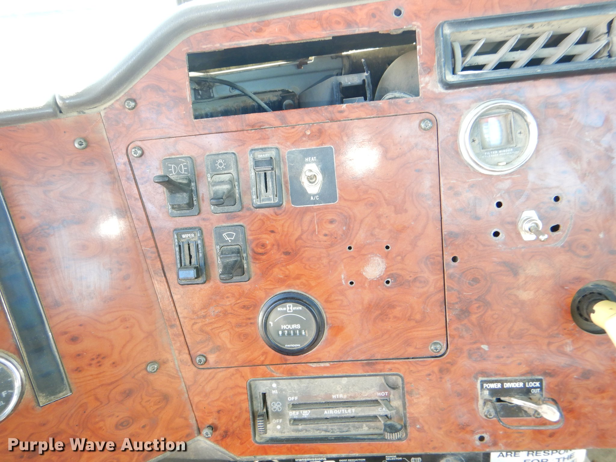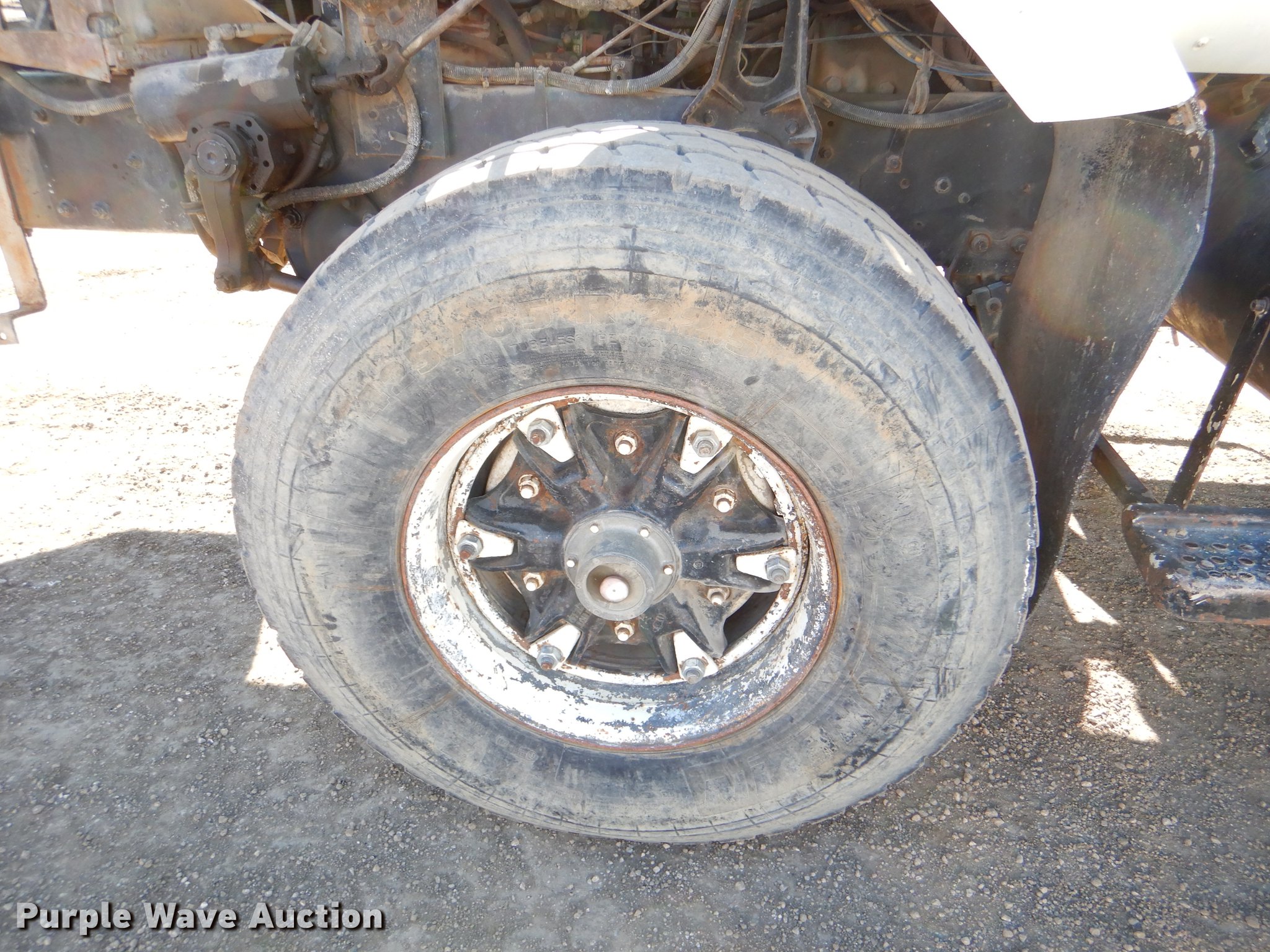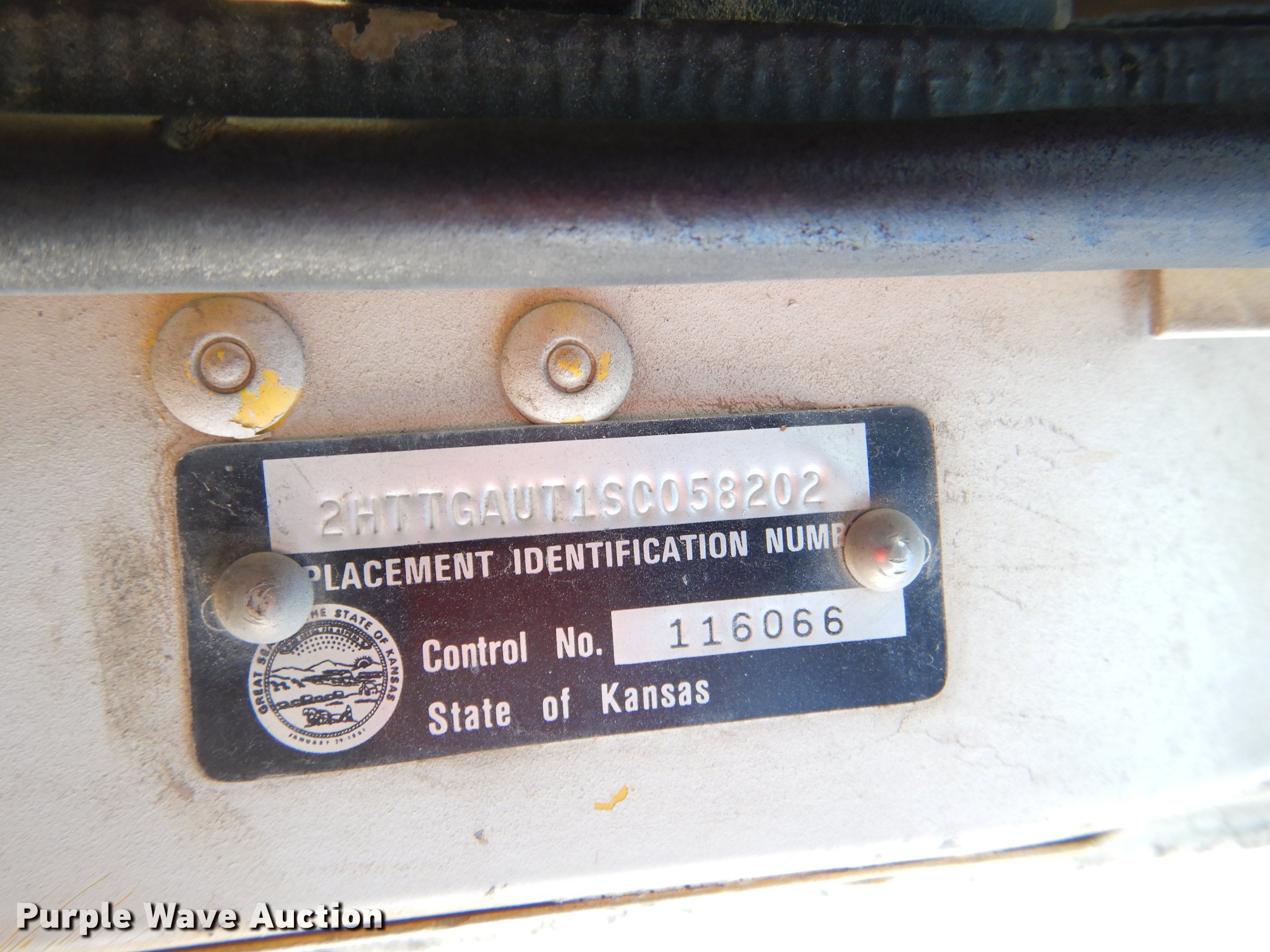 Purple Wave is selling a used Truck Chassis in Kansas. This item is a 1995 International Paystar 5000 truck cab and chassis with the following: 7,116 hours on meter, 41,409 miles on hub-o-meter, Cummins L10 10.0L L6 turbo diesel engine, 300 HP, Serial 34762908, Eaton Fuller nine speed manual transmission, Lo and Lo-Lo, Inter-axle differential lock, Tandem axle, Heat, Air suspension seat, Block heater, Toolbox, Storage box, Single fuel tank, Single rear exhaust stack, 220"L frame, 216" wheelbase, Walking beam suspension, Air brakes, 425/65R22.5 front tires, 11R22.5 rear tires