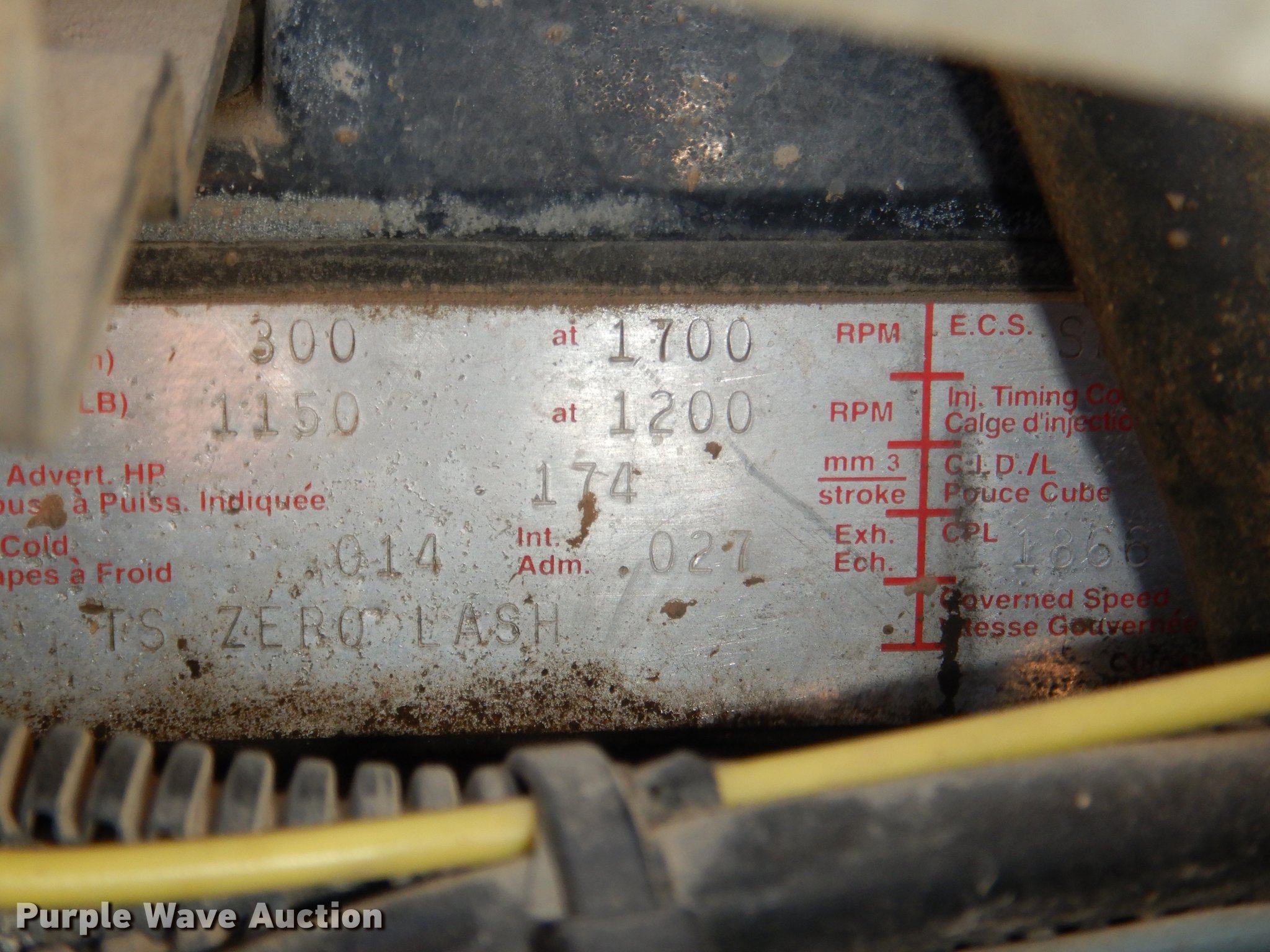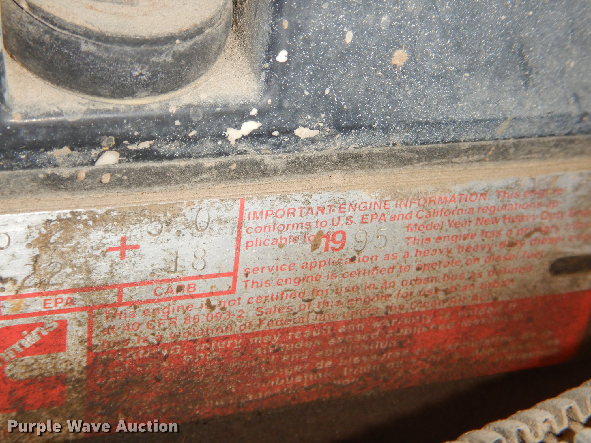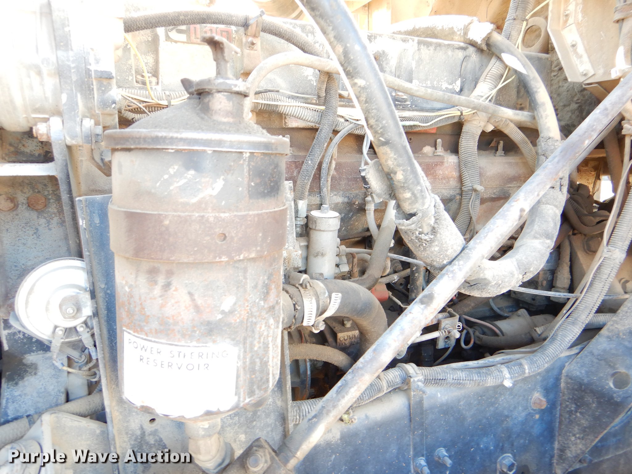 Purple Wave is selling a used Truck Chassis in Kansas. This item is a 1995 International Paystar 5000 truck cab and chassis with the following: 7,116 hours on meter, 41,409 miles on hub-o-meter, Cummins L10 10.0L L6 turbo diesel engine, 300 HP, Serial 34762908, Eaton Fuller nine speed manual transmission, Lo and Lo-Lo, Inter-axle differential lock, Tandem axle, Heat, Air suspension seat, Block heater, Toolbox, Storage box, Single fuel tank, Single rear exhaust stack, 220"L frame, 216" wheelbase, Walking beam suspension, Air brakes, 425/65R22.5 front tires, 11R22.5 rear tires