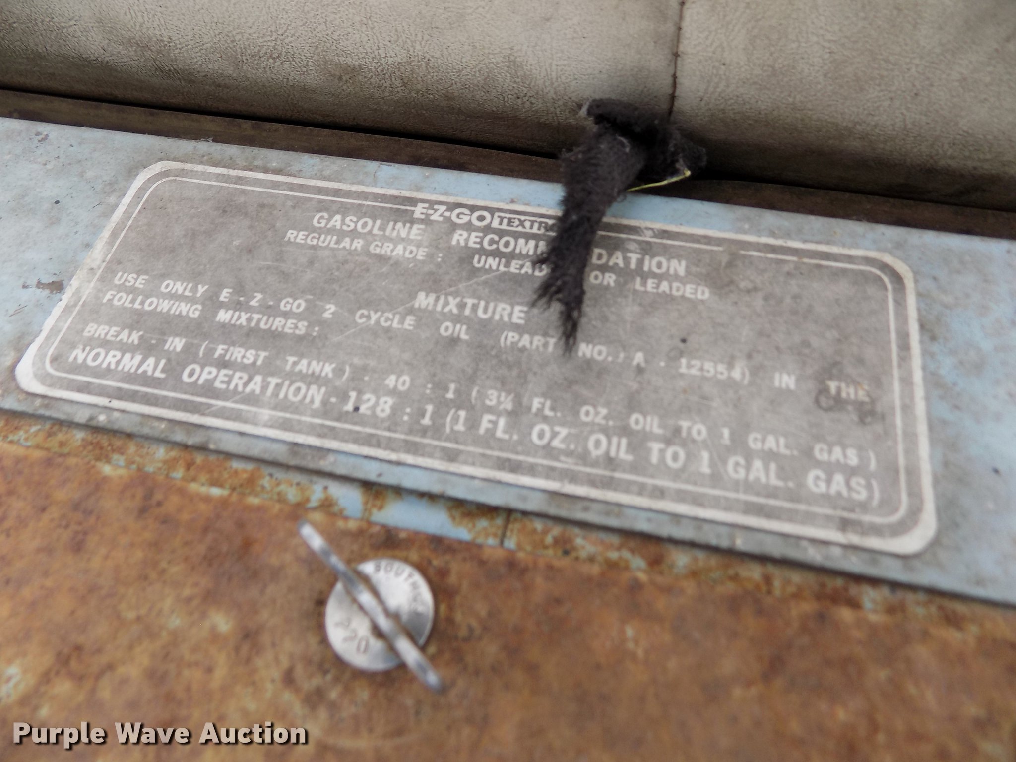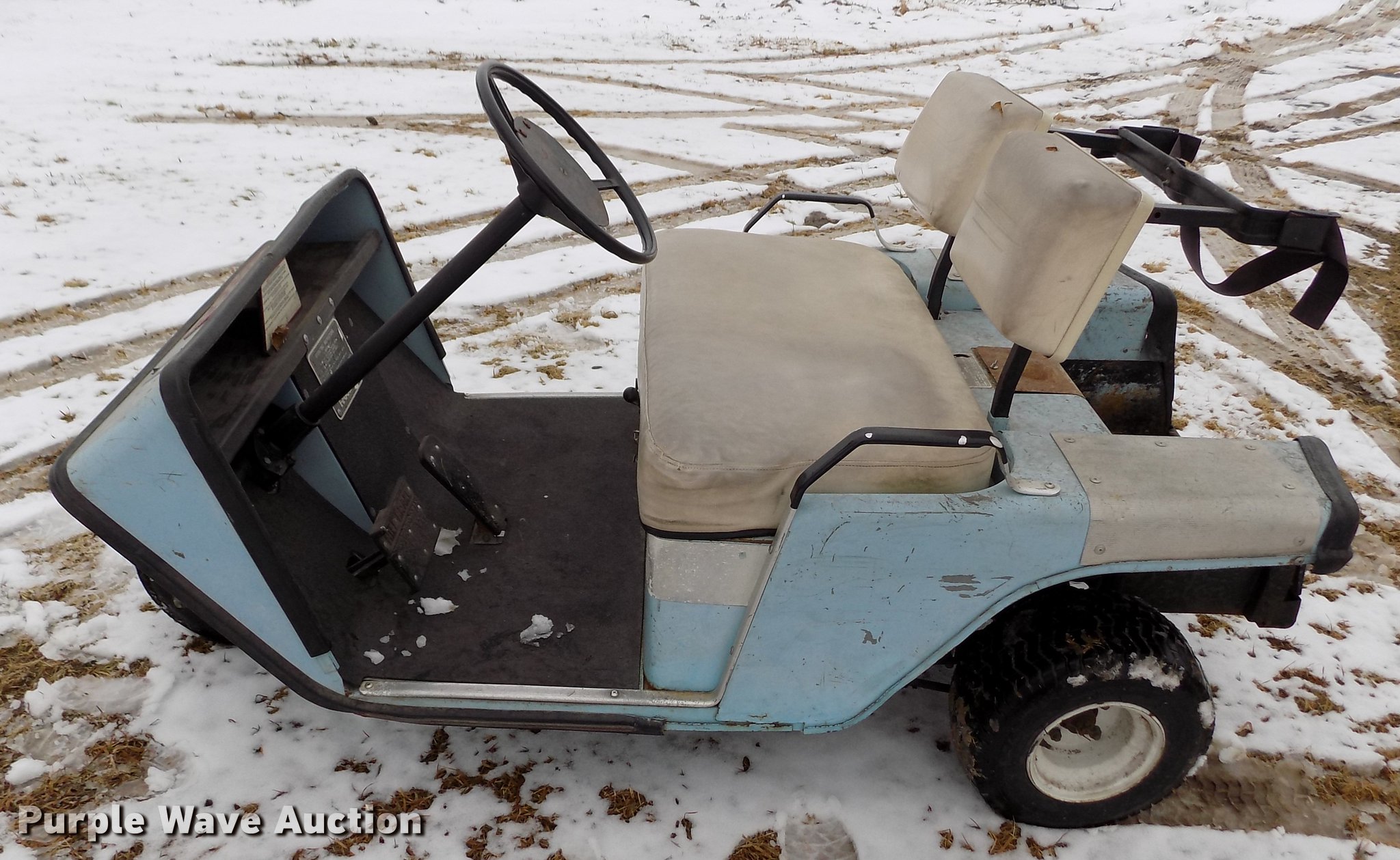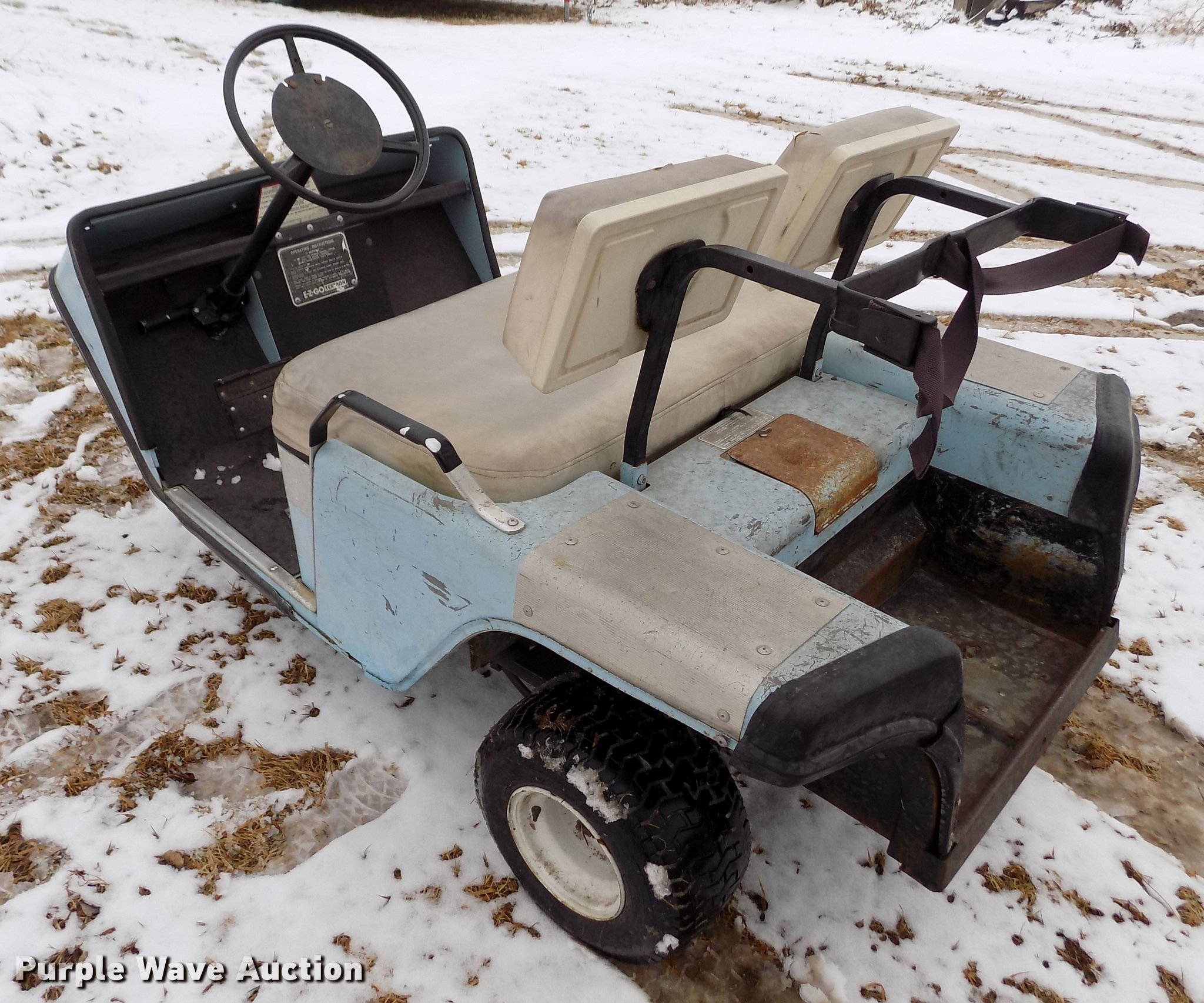 Purple Wave is selling a used Golf Cart in Kansas. This item is a Ez-go golf cart with the following: Robin 244cc single cylinder two cycle gas engine, Electric start, Two passenger capacity, 18x8.50-8 tires, Serial 81B22221281