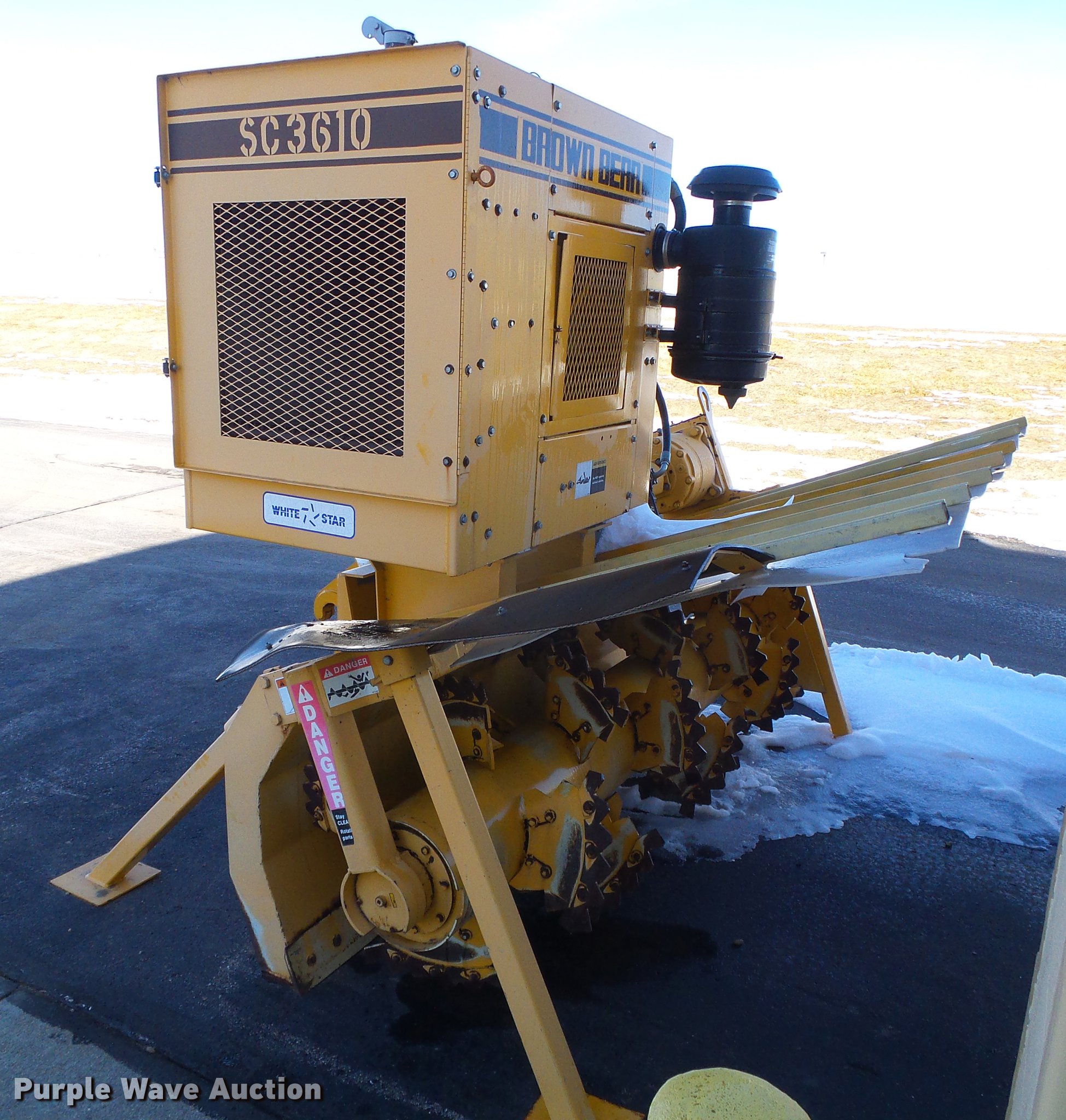 Purple Wave is selling a used Wheel Loader Attach. in Kansas. This item is a Brown Bear SC36B compost aerator attachment with the following: 152 hours on meter, Series no. 10RP2TC1111X, Cummins four cylinder turbo diesel engine, 10'W, Poly debris shield, Manual adjust stabilizer arms, Funk F9RR drive motor, In-cab controls, Serial SC36B-014