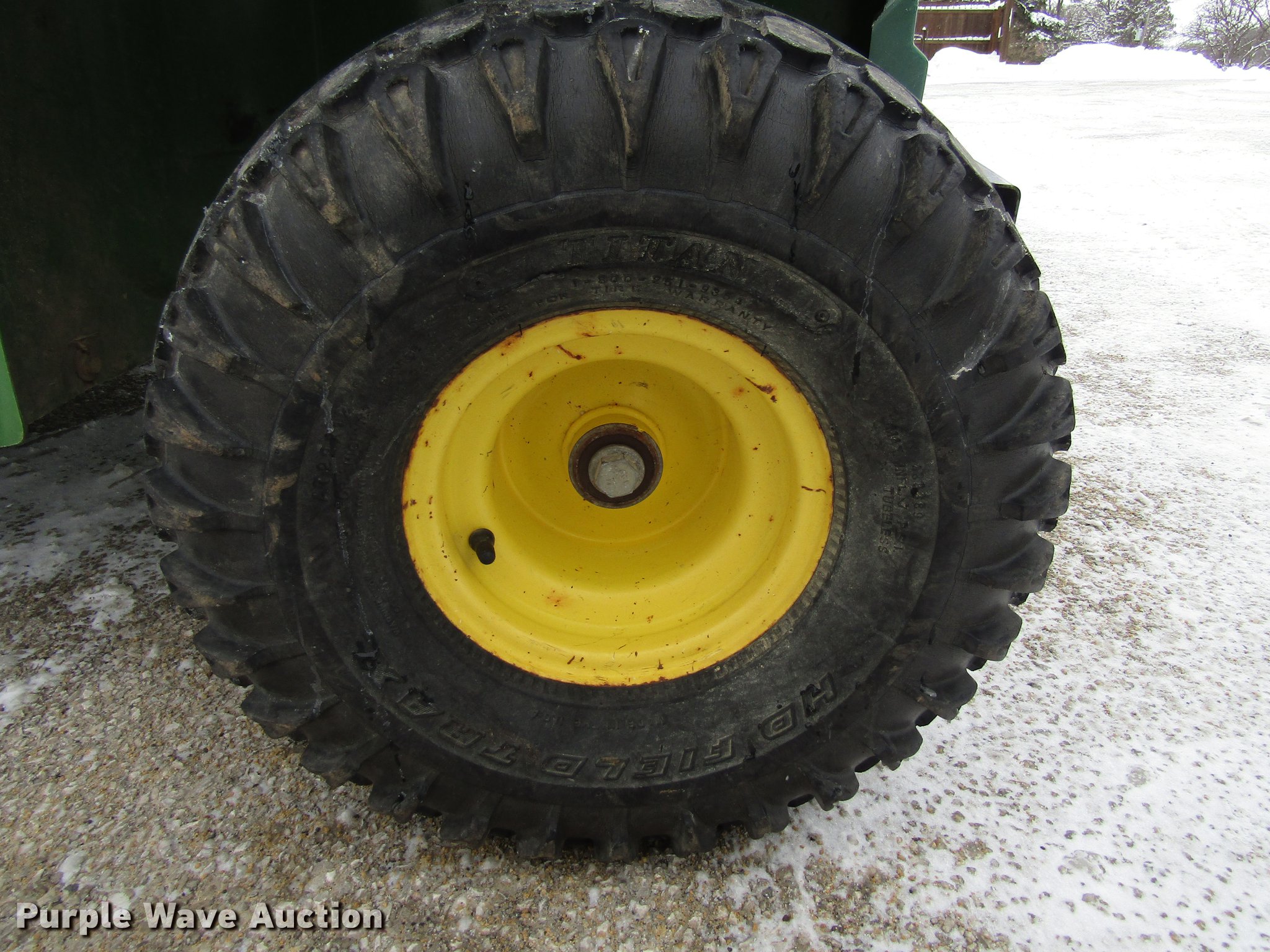 Purple Wave is selling a used Utility Vehicle in Iowa. This item is a 1993 John Deere 6X4 Gator utility vehicle with the following: 123 hours on meter, Hour meter replaced at 2,315 hours, Kawasaki gas engine, Automatic transmission, Two passenger capacity, Electric start, 44"L x 4'W dump bed, Electric/hydraulic dump, 22x12-8 tires, Serial W006X4X002370