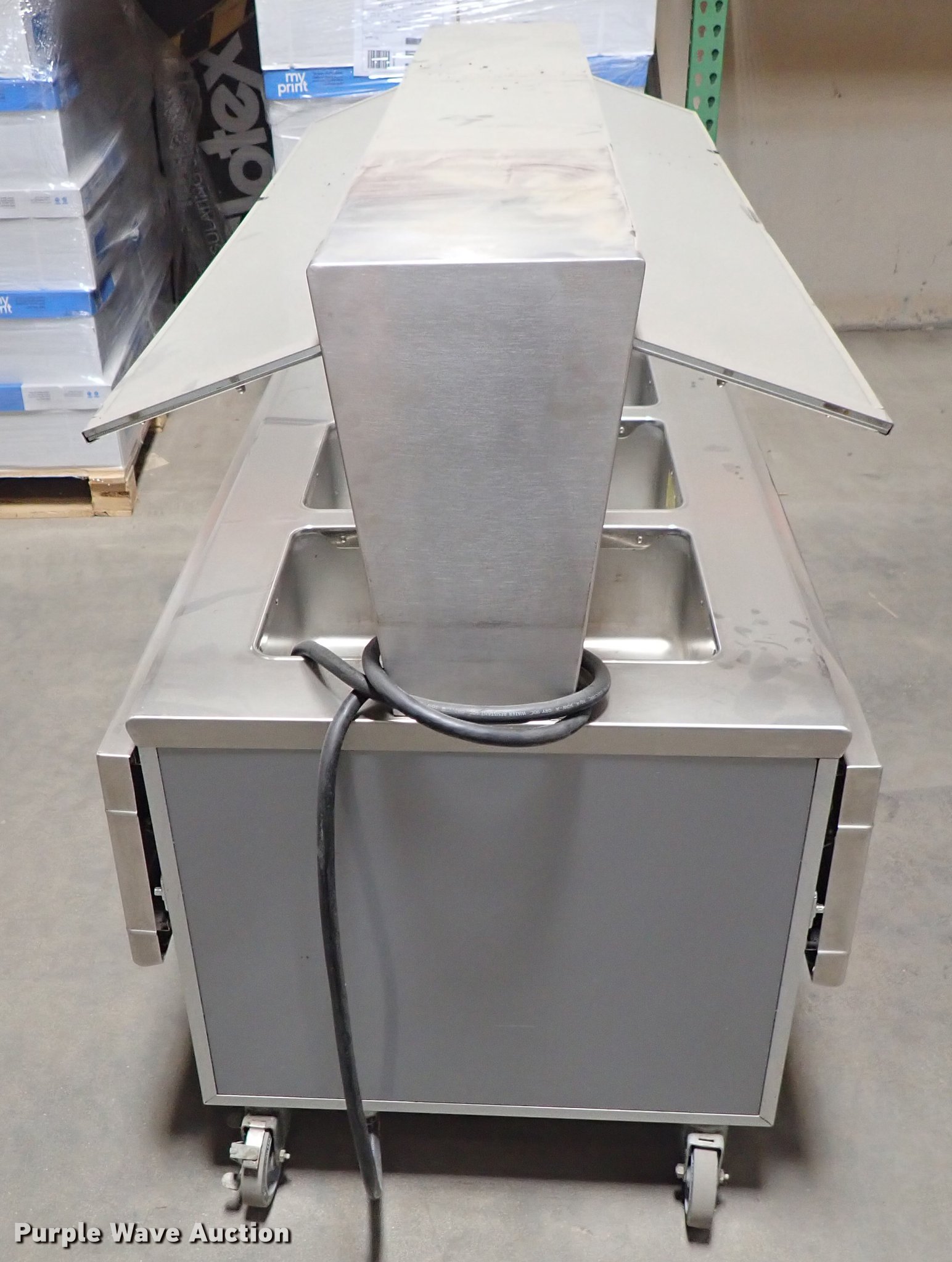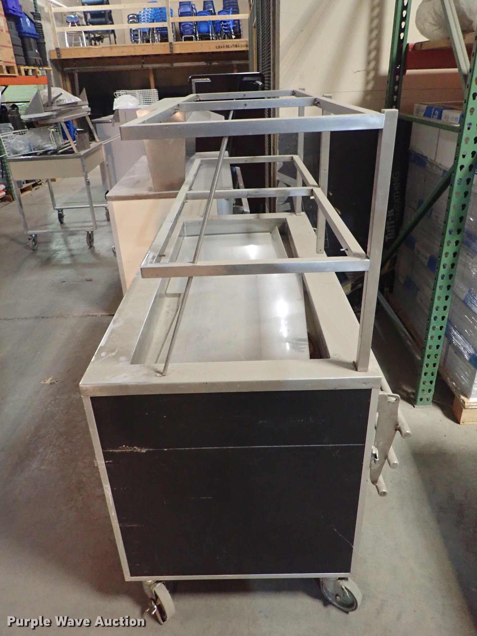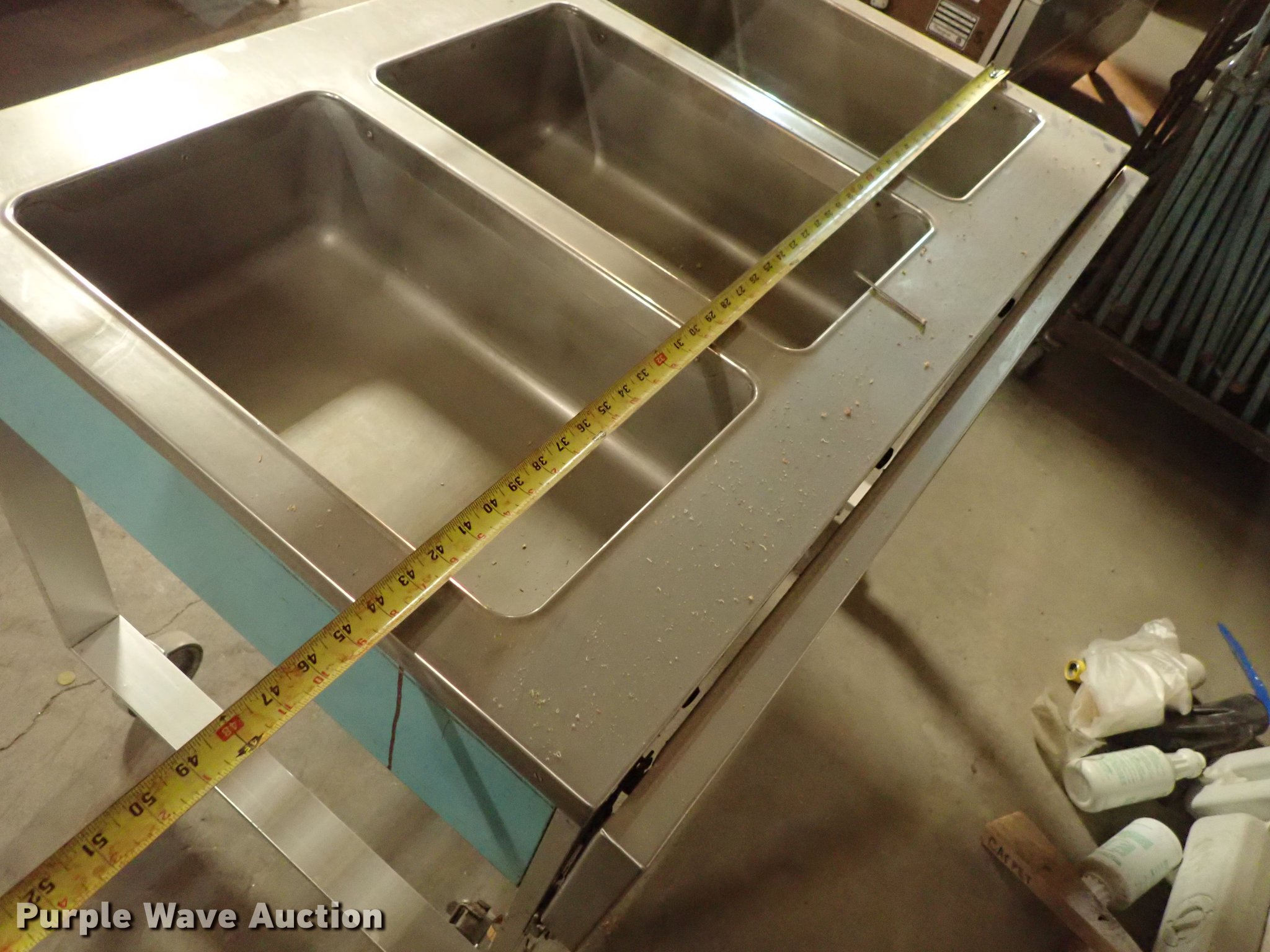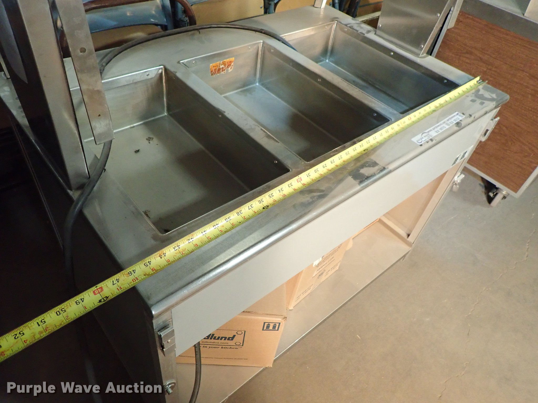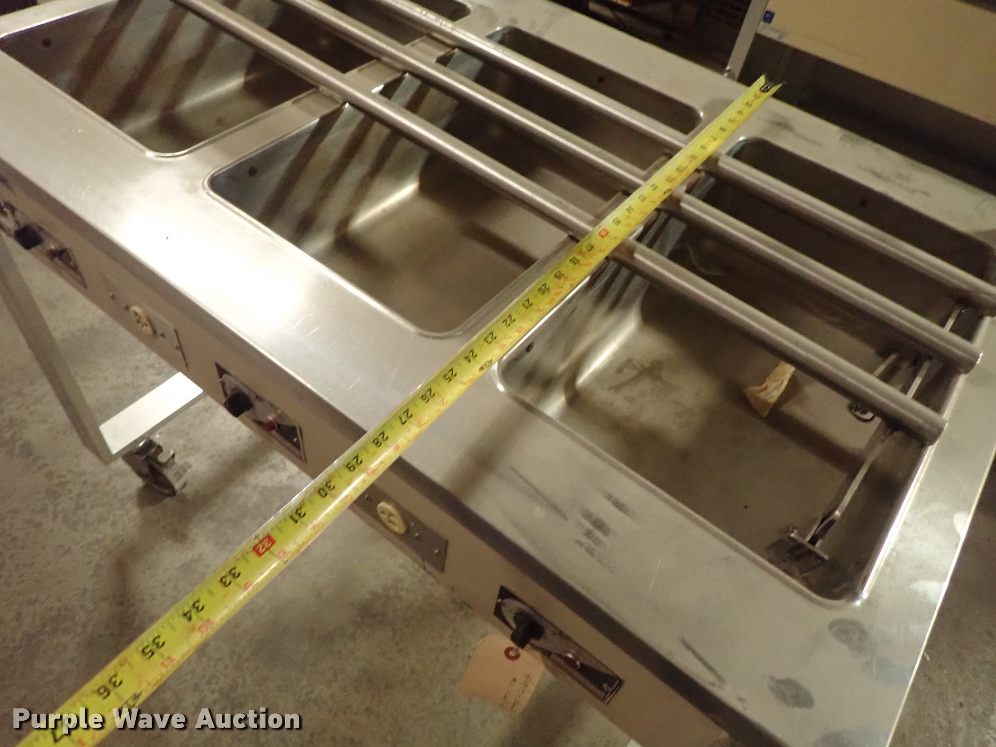 Purple Wave is selling a used Restaurant Equip. in Kansas. This item is a Restaurant equipment with the following: Beverage Air milk cooler, Precision three well hot table, Three well hot table, Atlas serving table, Precision serving table, Precision PSB-79-R serving table, Metal warming cart, Precision four well hot table, Atlas three well hot table, Beverage Air cooler, Precision RSU-401 warmer, Unknown operating conditions