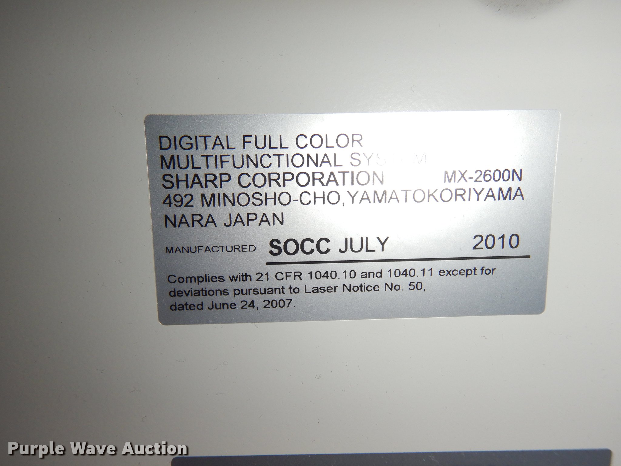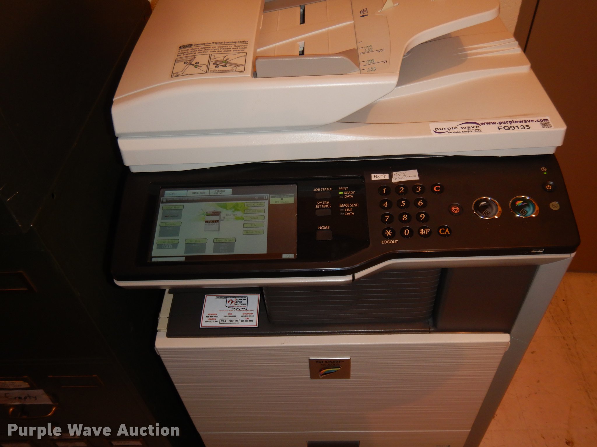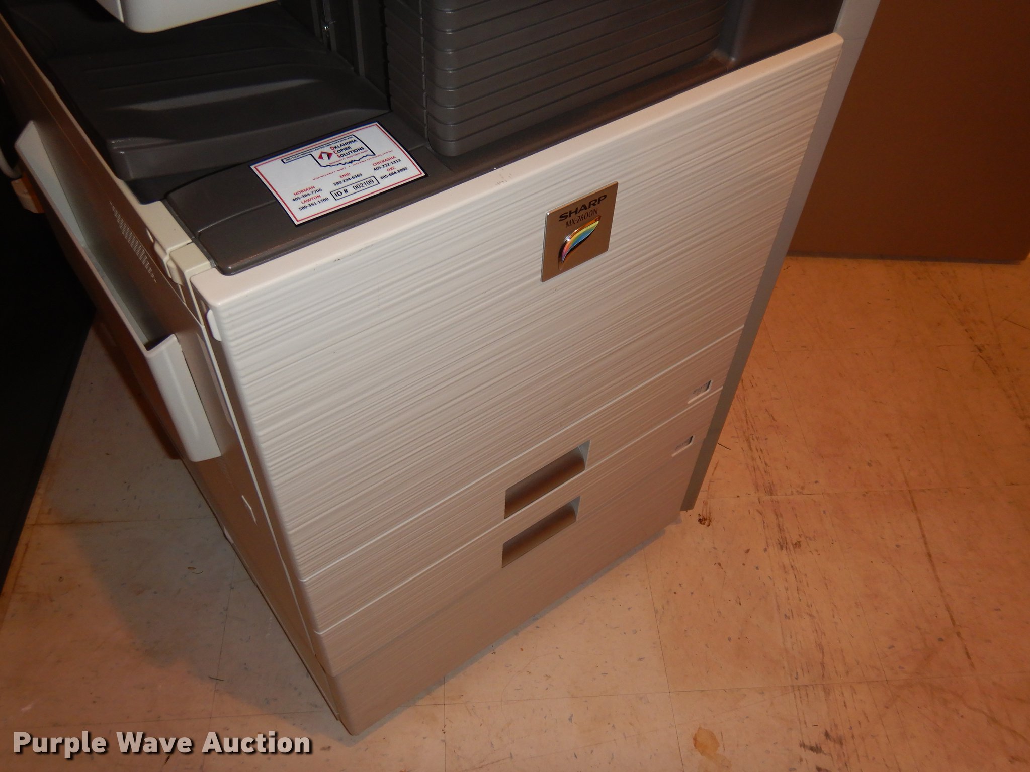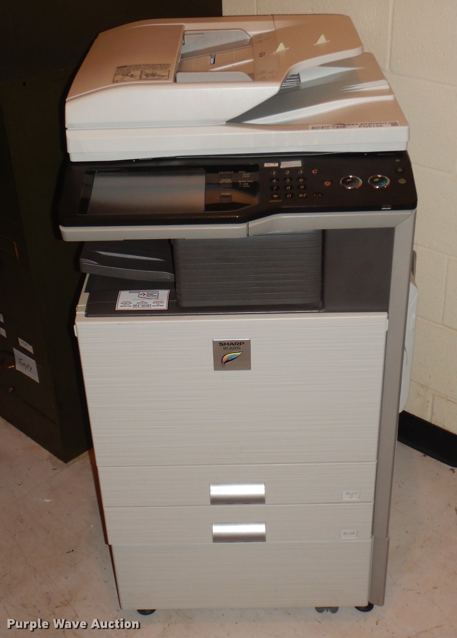 Purple Wave is selling a used Electronics in Oklahoma. This item is a 2010 Sharp MX-2600N digital full color multi-functional system with the following: Serial 05063997