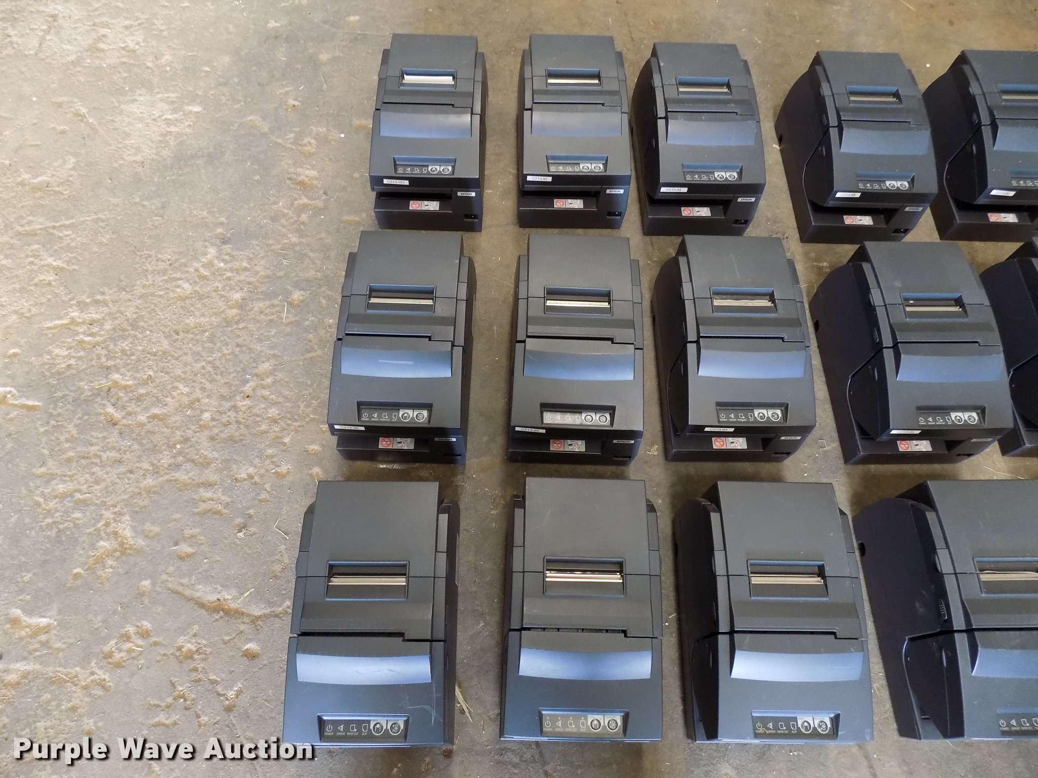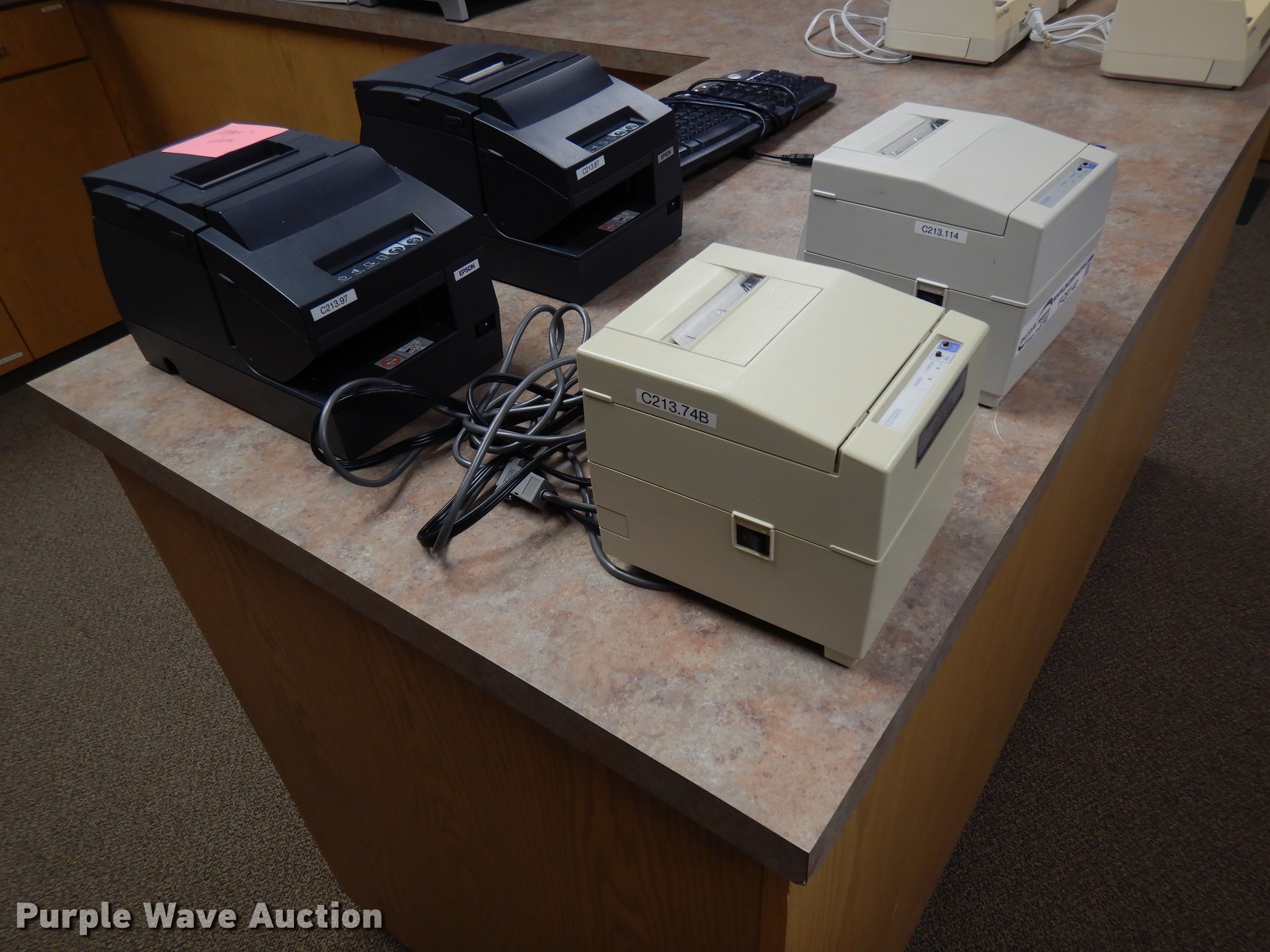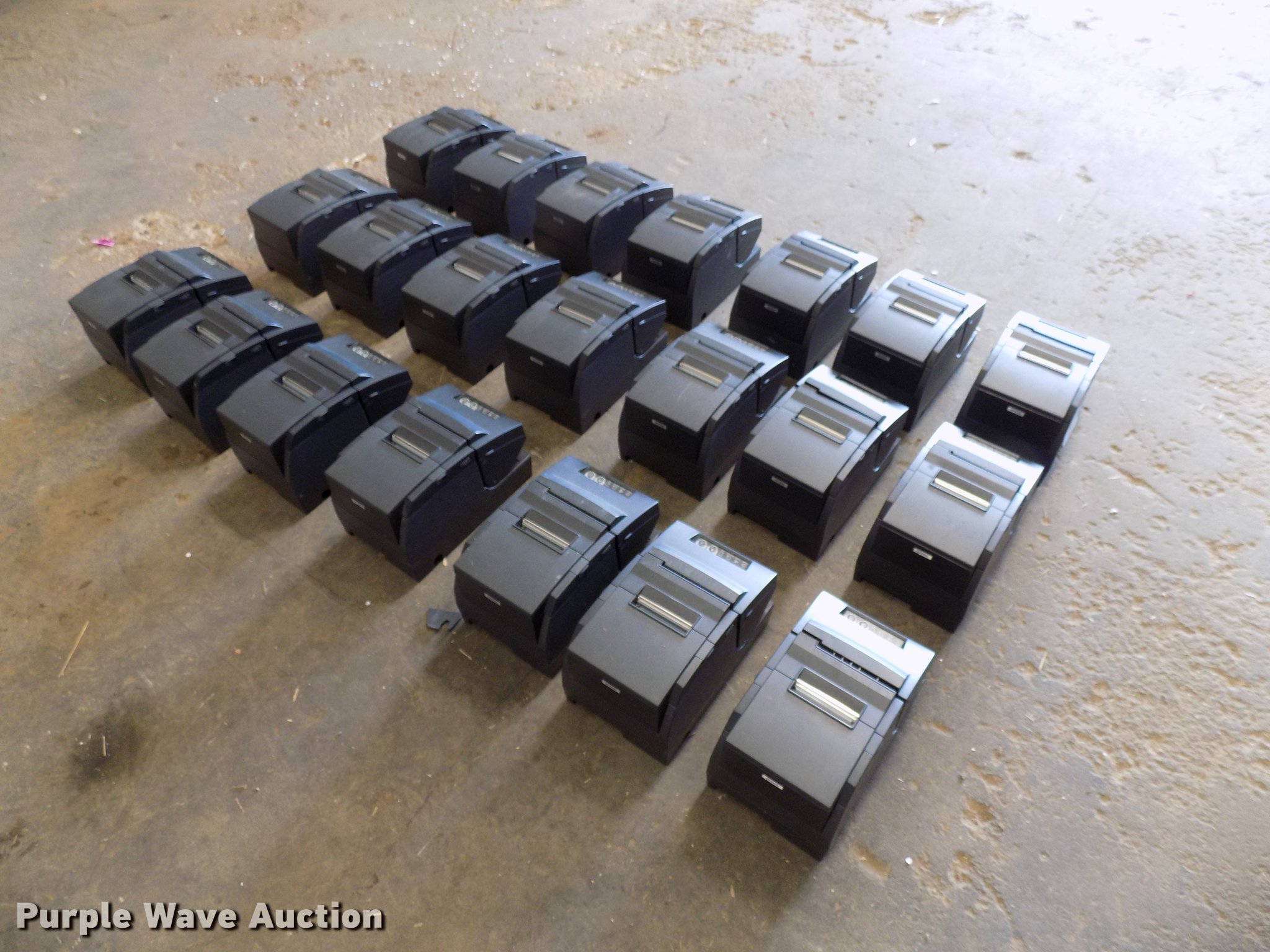 Purple Wave is selling a used Office Supplies and Equip. in Oklahoma. This item is a (24) Epson M147H validators with Citizen iOP3550 printers with the following: Additional ribbon cartridges and keyboard, Serial J94G002869, J94G003069, 0520236, 1370613