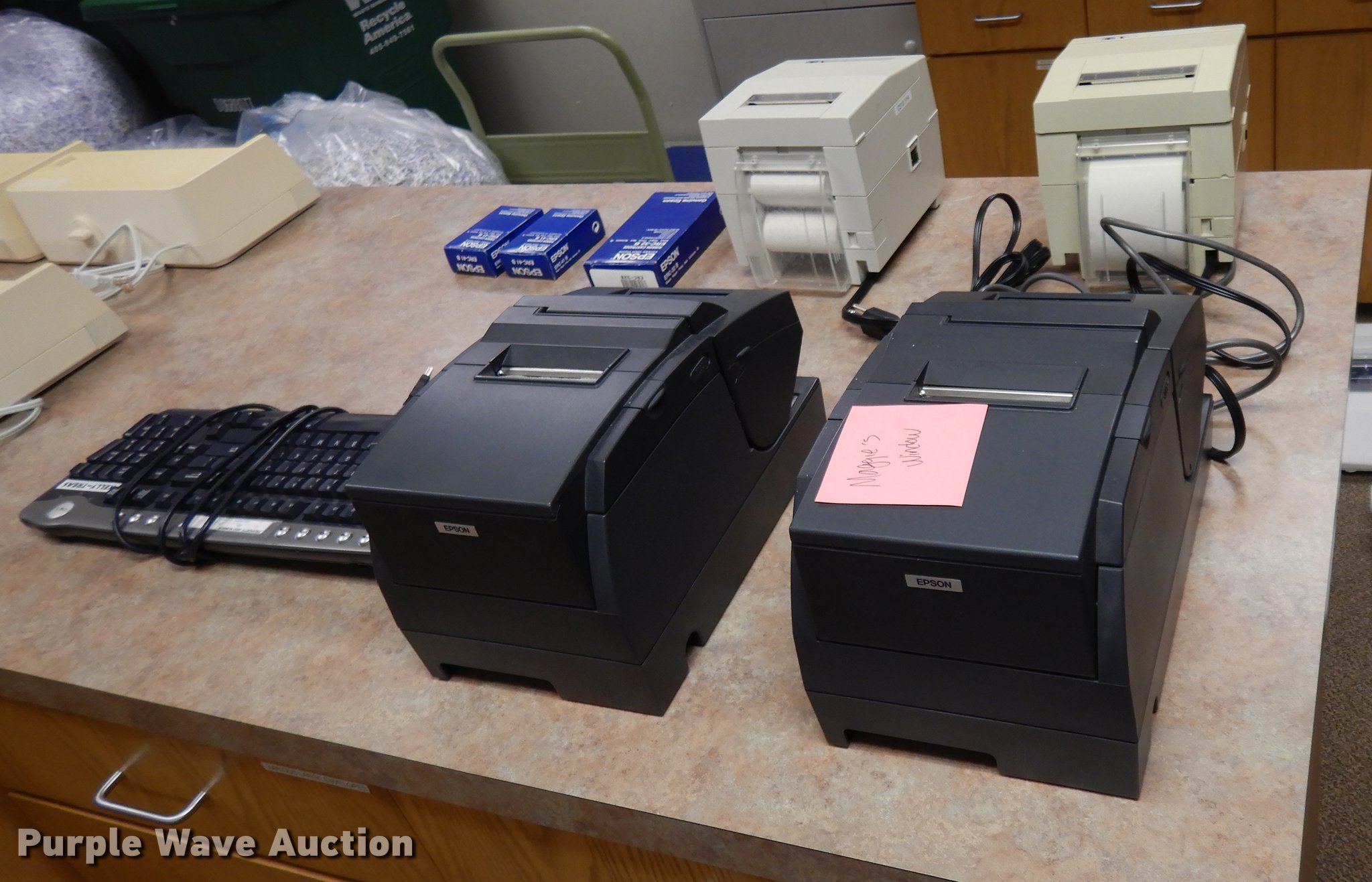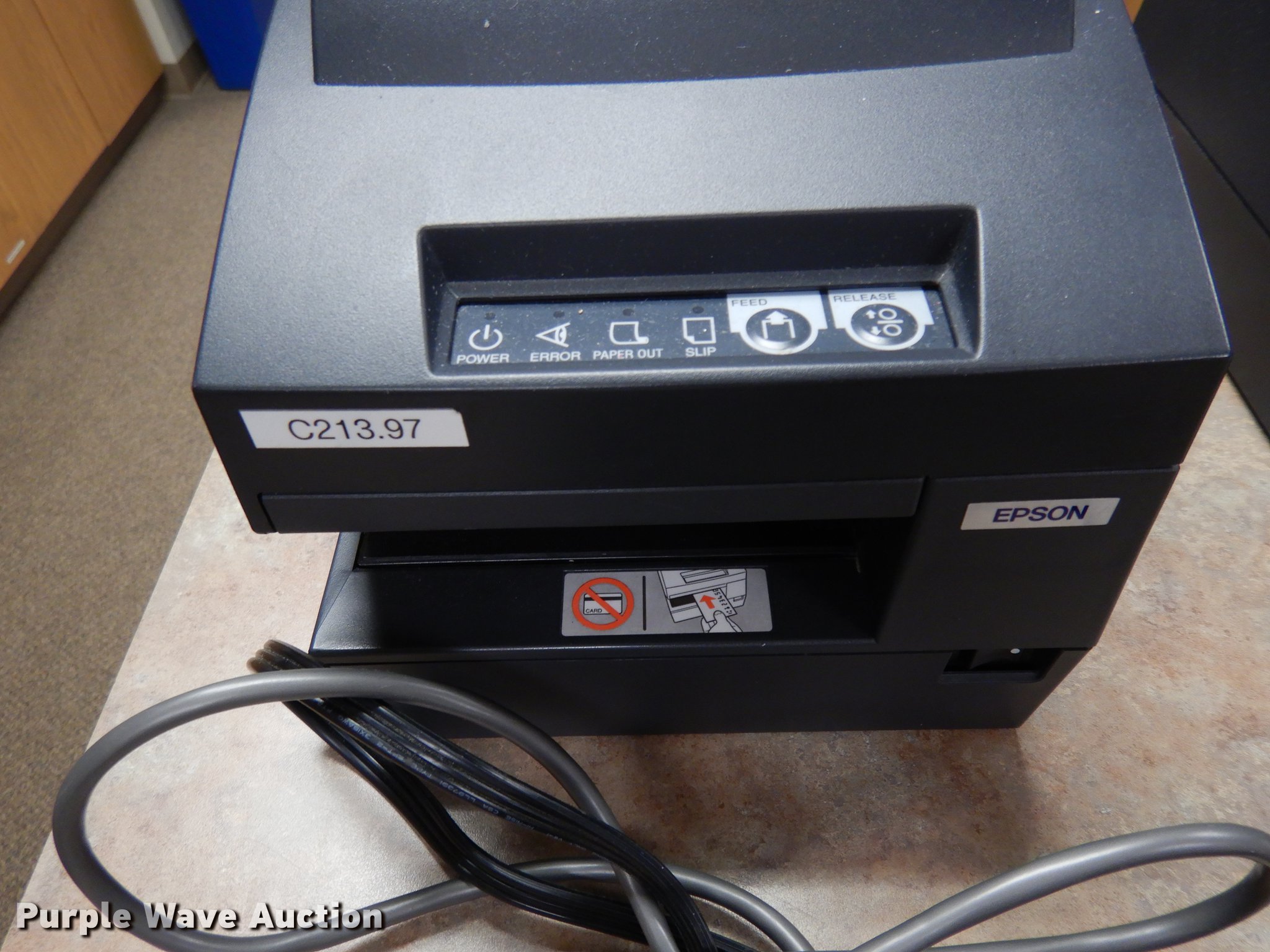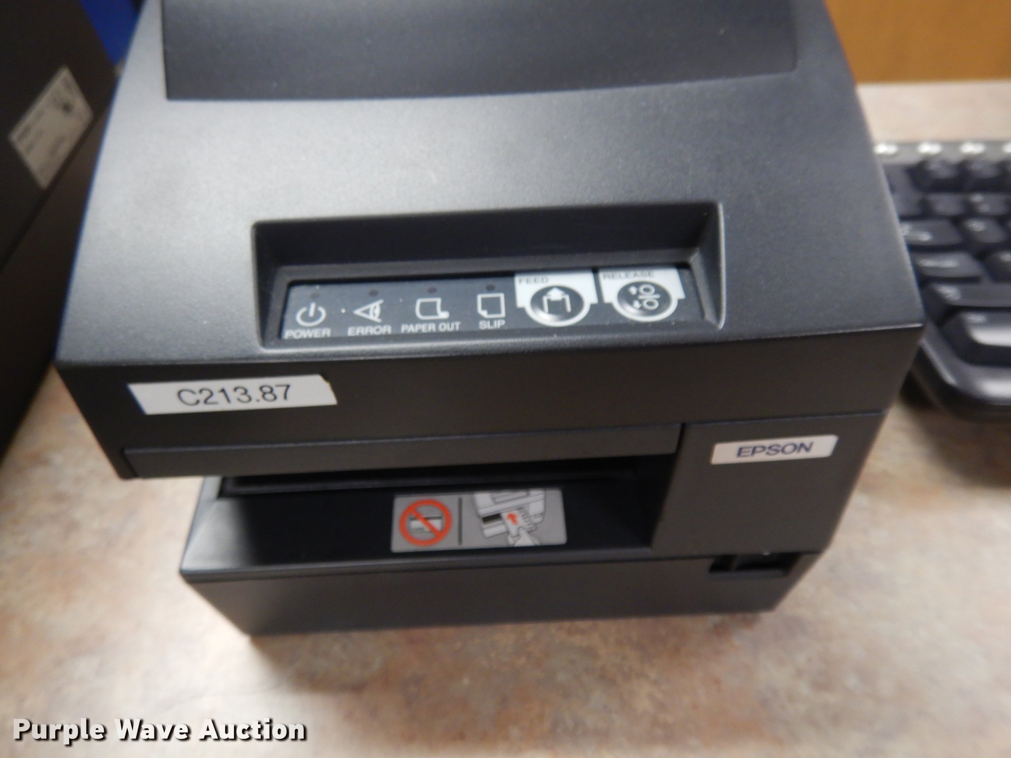 Purple Wave is selling a used Office Supplies and Equip. in Oklahoma. This item is a (24) Epson M147H validators with Citizen iOP3550 printers with the following: Additional ribbon cartridges and keyboard, Serial J94G002869, J94G003069, 0520236, 1370613