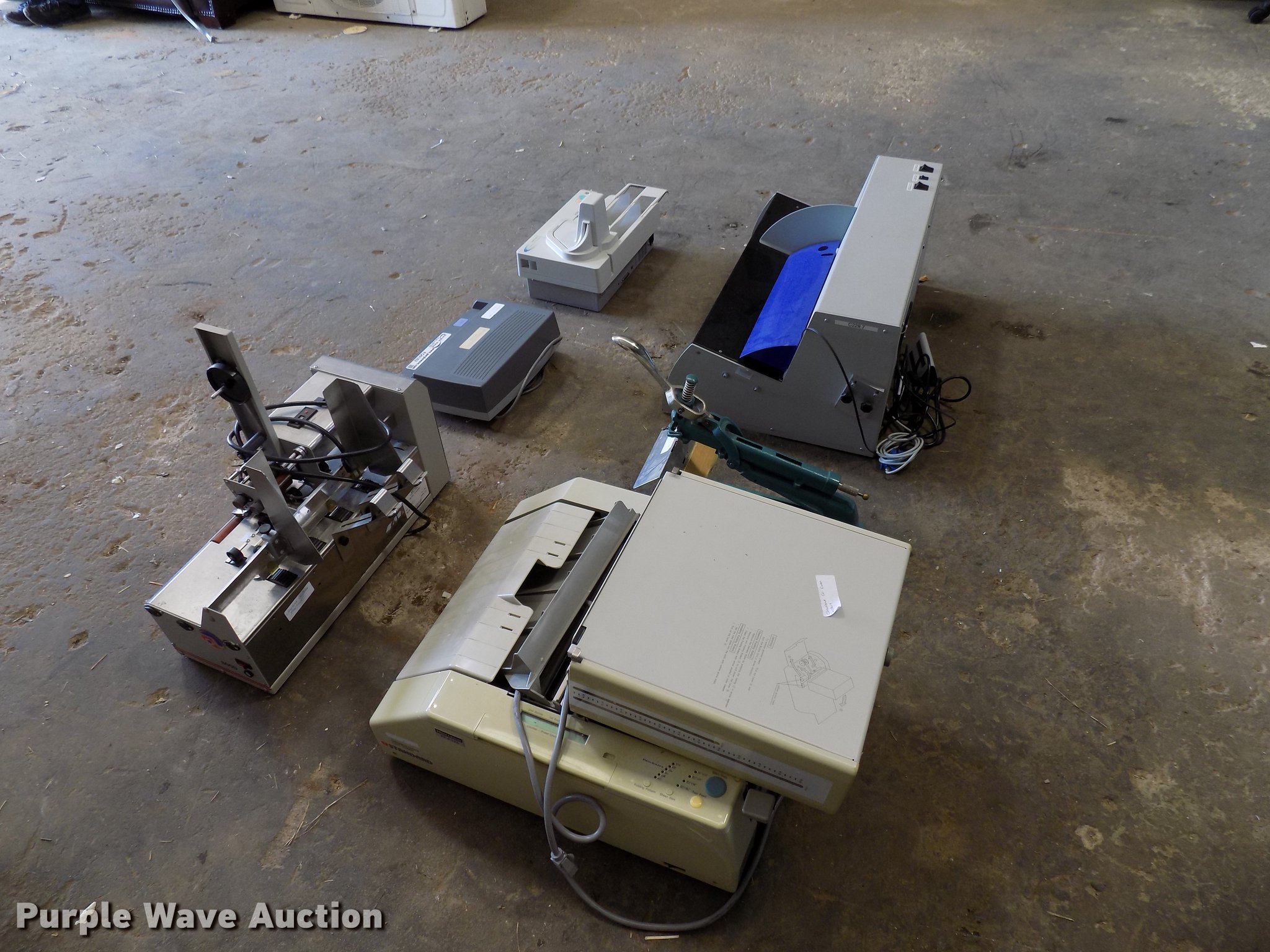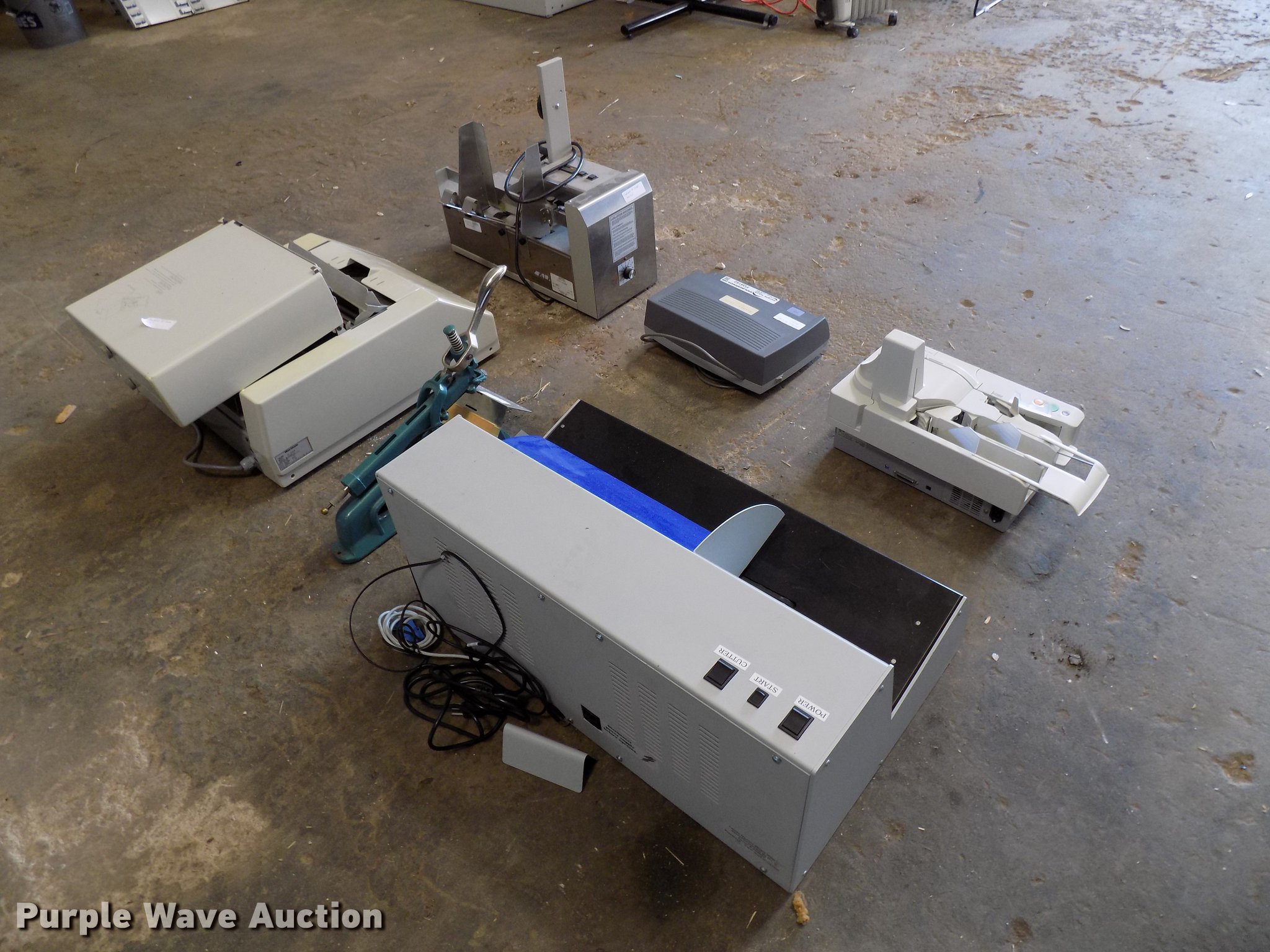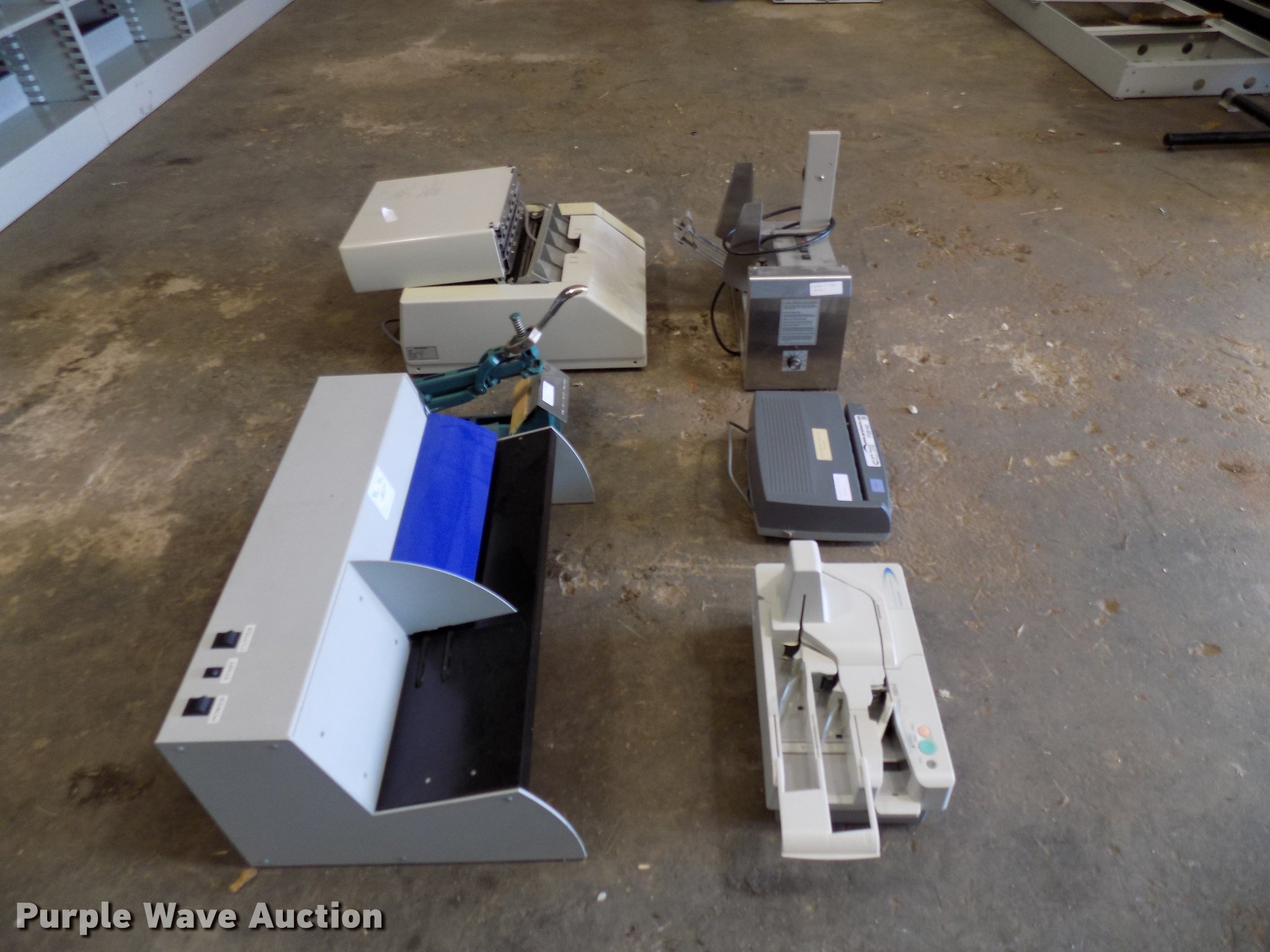 Purple Wave is selling a used Office Supplies and Equip. in Oklahoma. This item is a Office supplies and equipment with the following: Horizon PF-P320 letter folder, Astro 8000 letter feeder, Canon CK-180 check reader, Postmark 3050 letter opener, Swingline electric hole punch, Acme stapler
