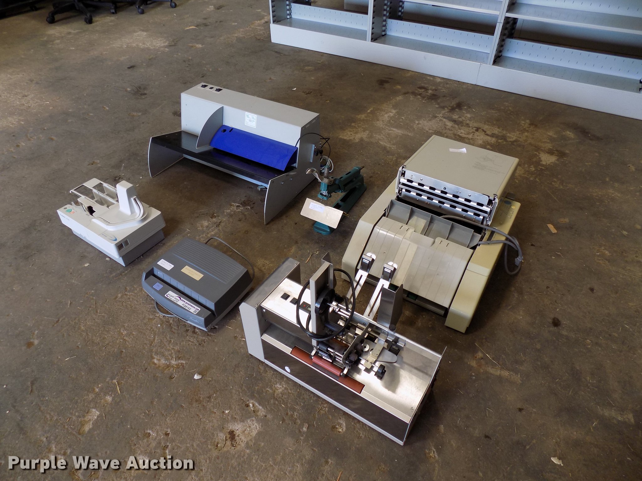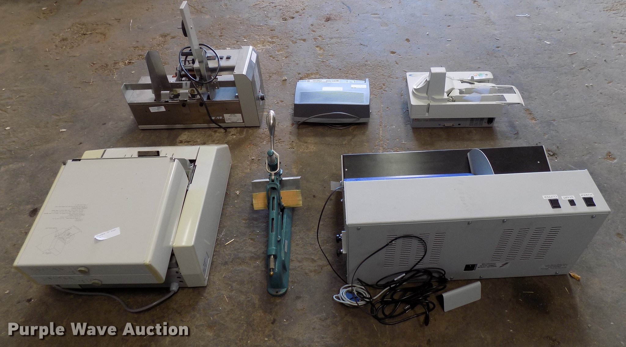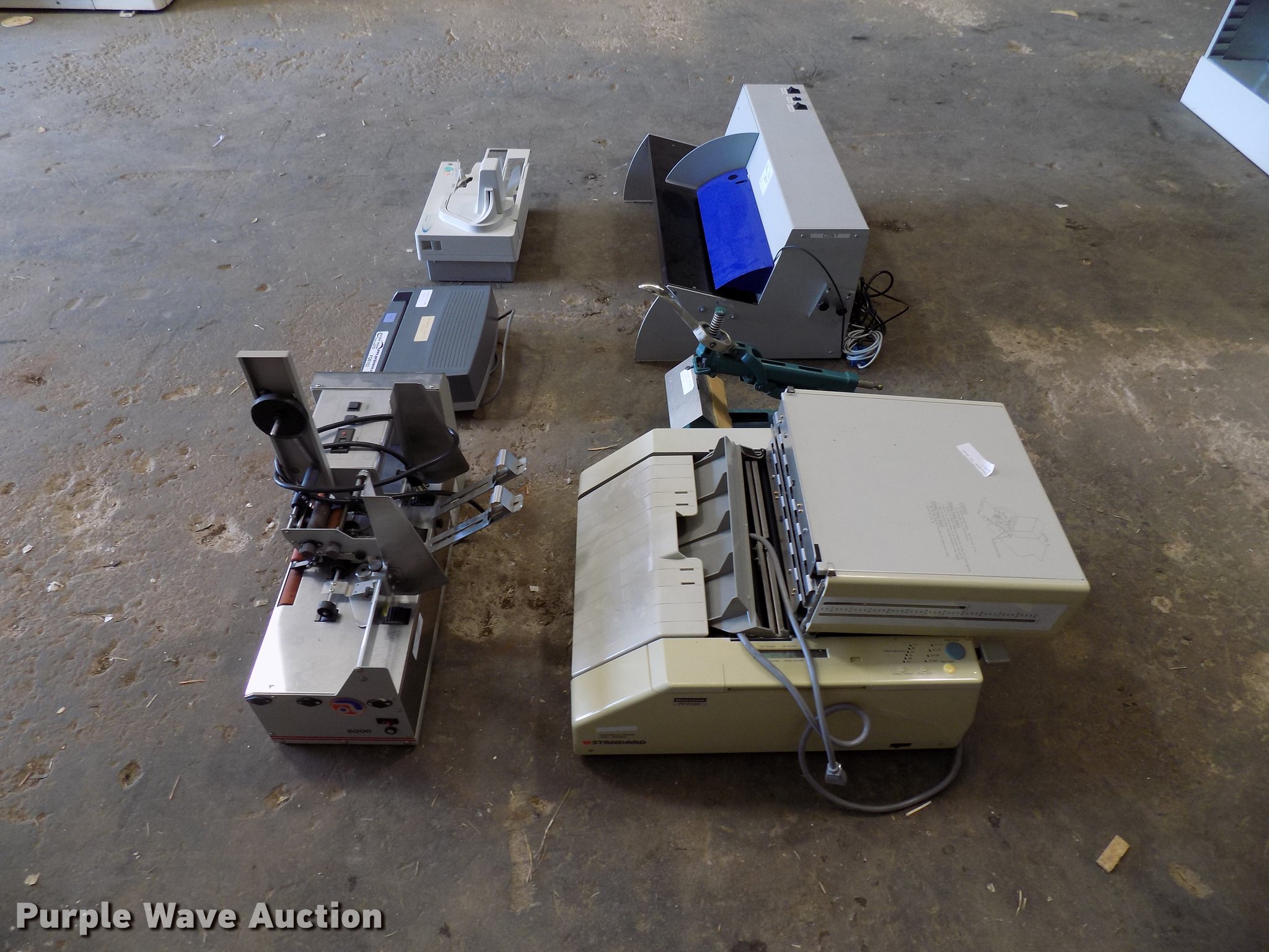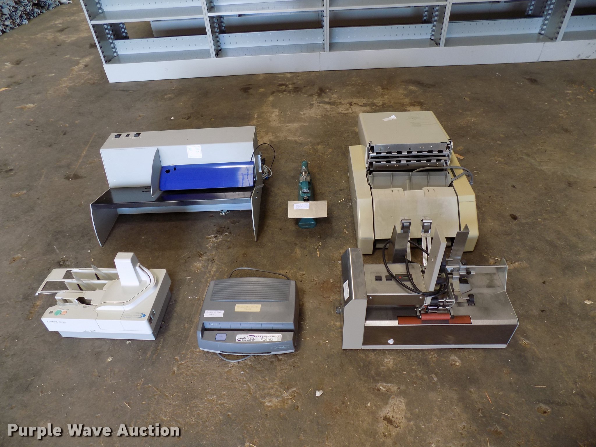 Purple Wave is selling a used Office Supplies and Equip. in Oklahoma. This item is a Office supplies and equipment with the following: Horizon PF-P320 letter folder, Astro 8000 letter feeder, Canon CK-180 check reader, Postmark 3050 letter opener, Swingline electric hole punch, Acme stapler