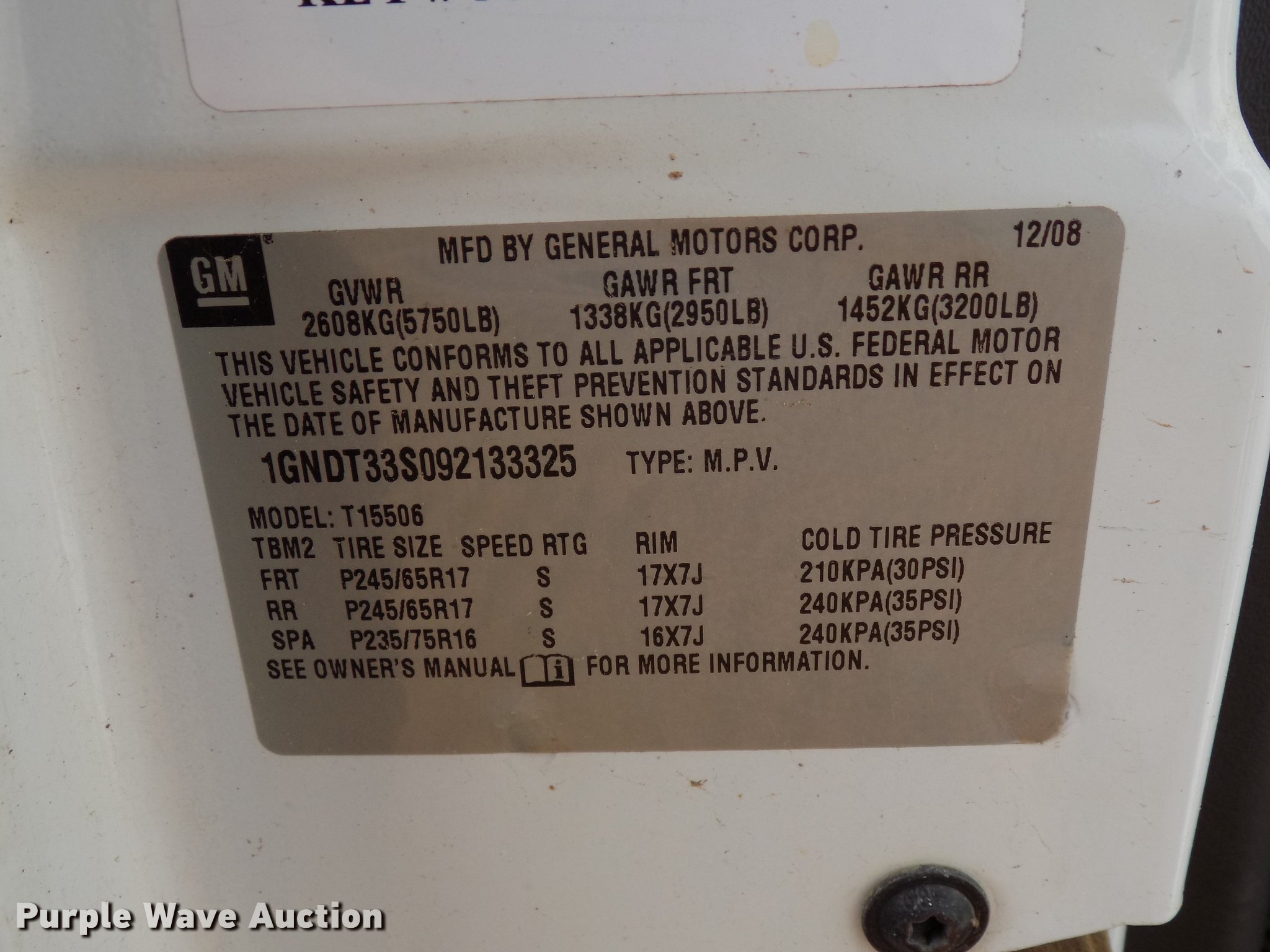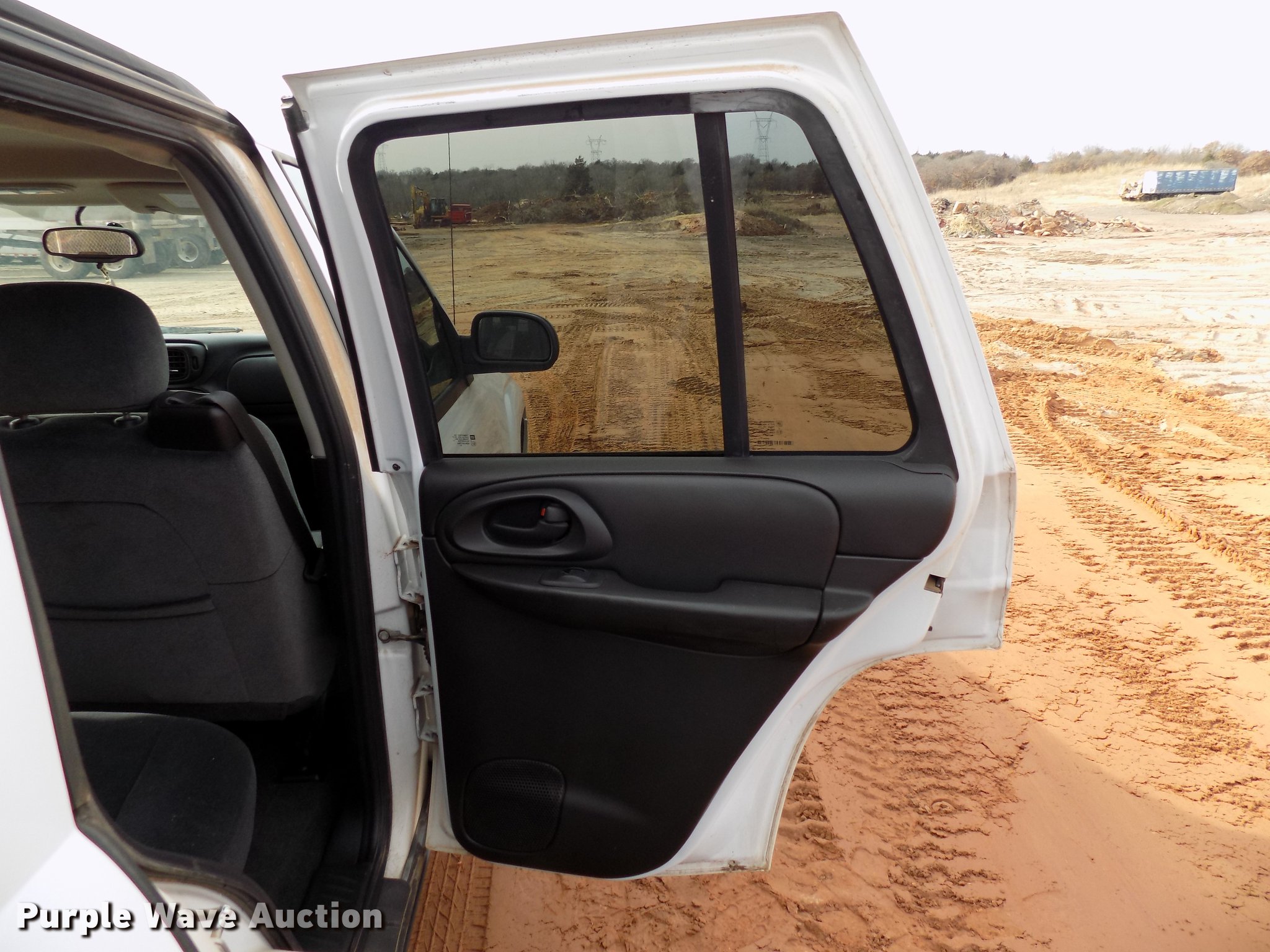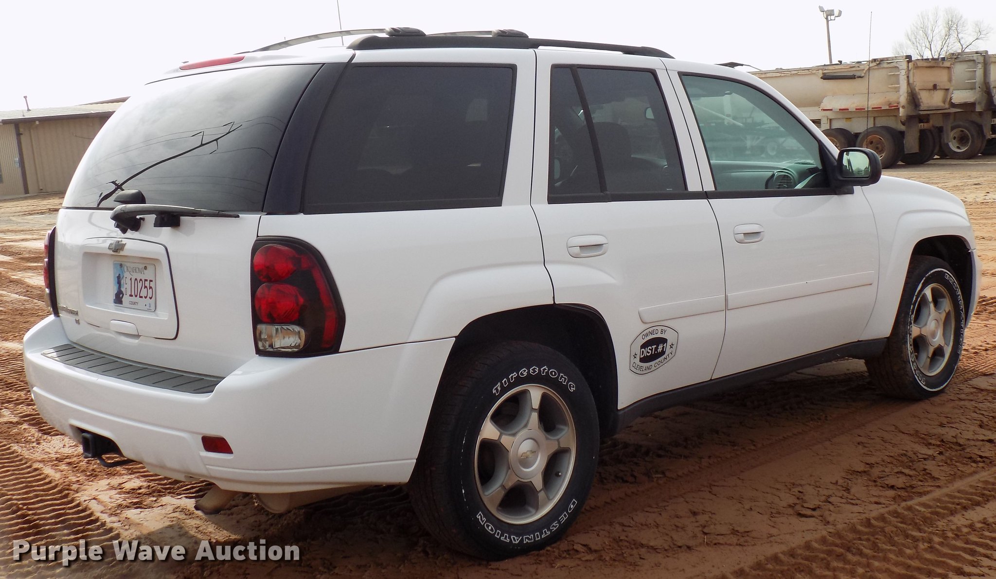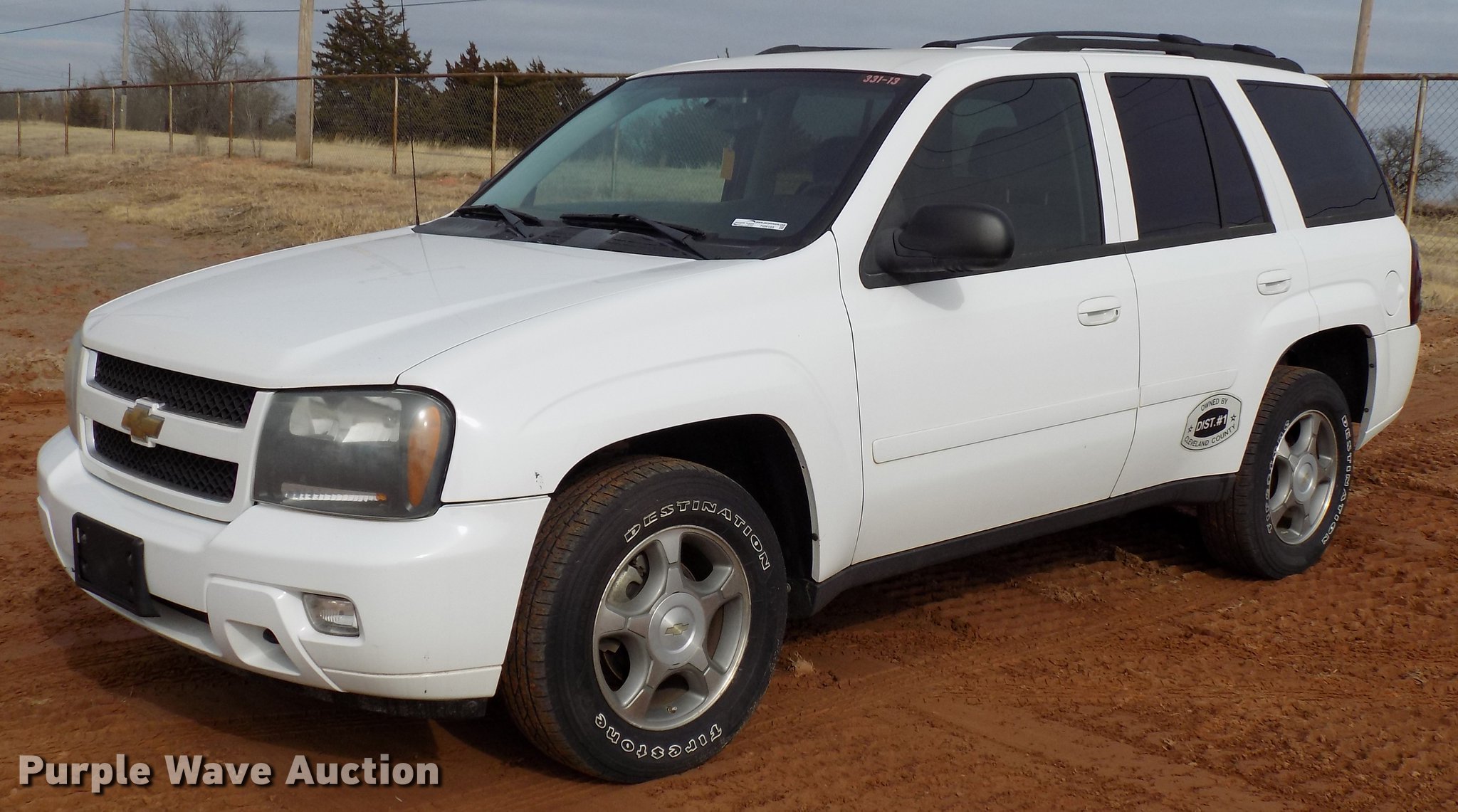 Purple Wave is selling a used Passenger Vehicle in Oklahoma. This item is a 2009 Chevrolet TrailBlazer LT SUV with the following: 124,998 miles on odometer, 4.2L L6 DOHC 24V gas engine, Automatic transmission, Four wheel drive, AC and heat, Tilt, Cruise, AM/FM/CD, Power windows, locks, mirrors, and seat, Cloth interior, Fog lights, Front tow hooks, Receiver hitch, Trailer wiring, Firestone P245/65R17 tires