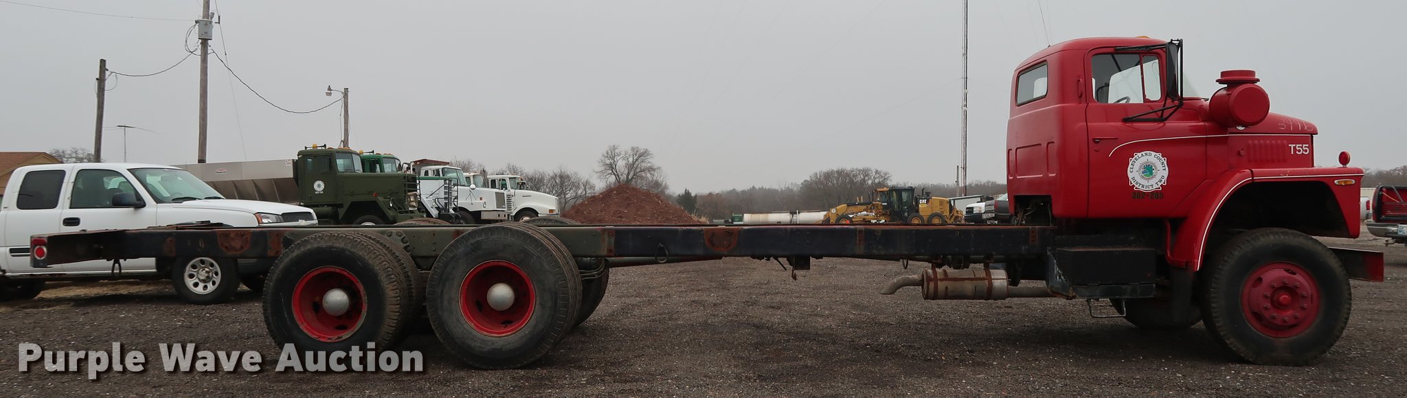 Purple Wave is selling a used Truck Chassis in Oklahoma. This item is a 1975 Dodge XCNT8 truck cab and chassis with the following: 51,450 miles on odometer, 827 hours on meter, 1984 Cummins V-555 555 C.I.D. six cylinder diesel engine, 202 HP, Serial 20240368, Automatic transmission, Tandem axle, Single fuel tank, Spring suspension, Air brakes, 12.00-20 tires, GVWR 58,000 lbs, Unit# D302-285