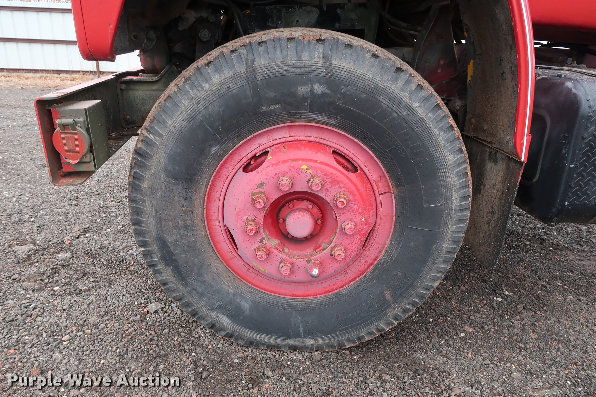 This 1975 Dodge XCNT8 truck cab and chassis will sell to the highest bidder regardless of price.