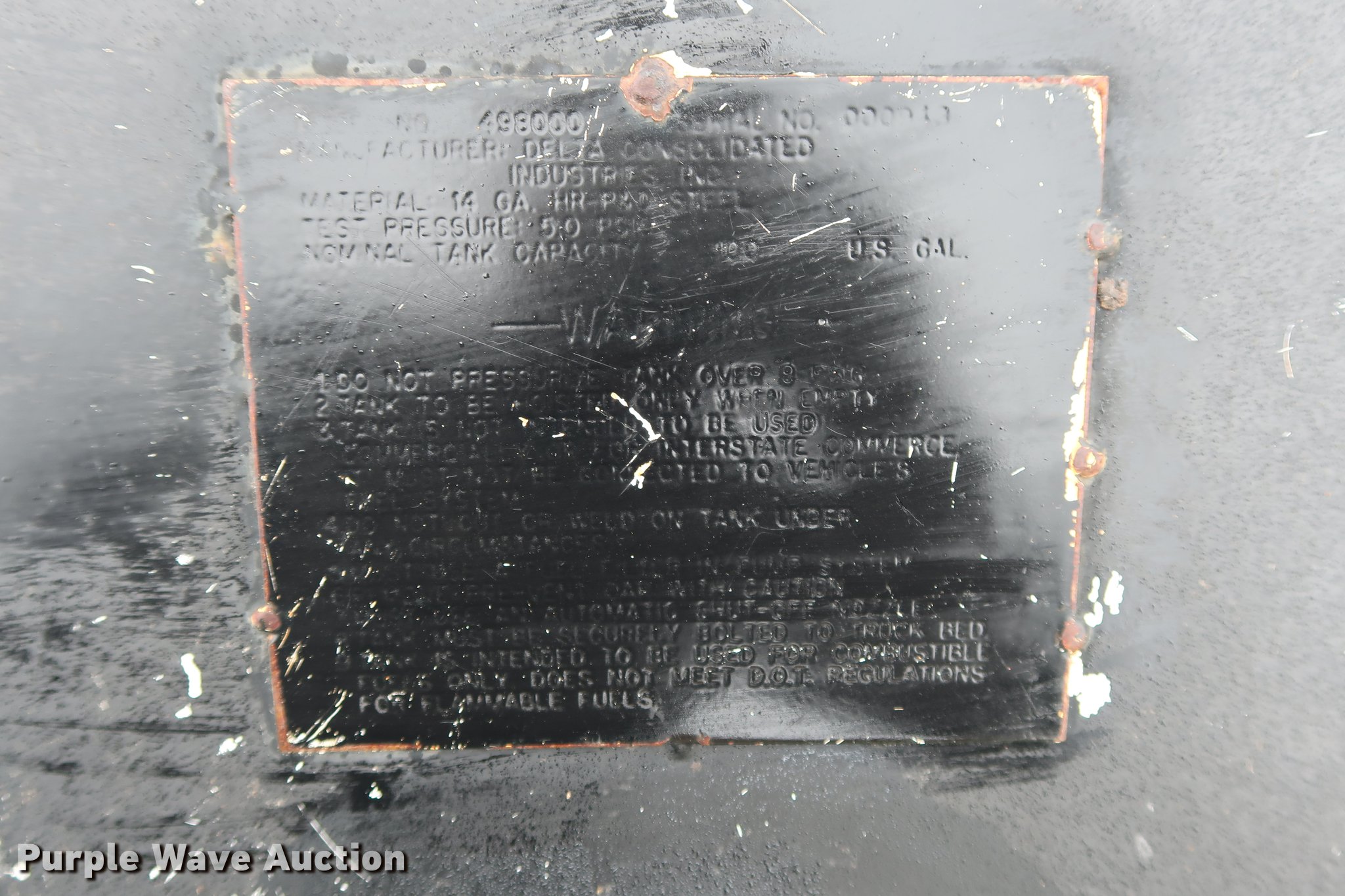 This Delta Consolidated Industries L-shaped fuel tank will sell to the highest bidder regardless of price.
