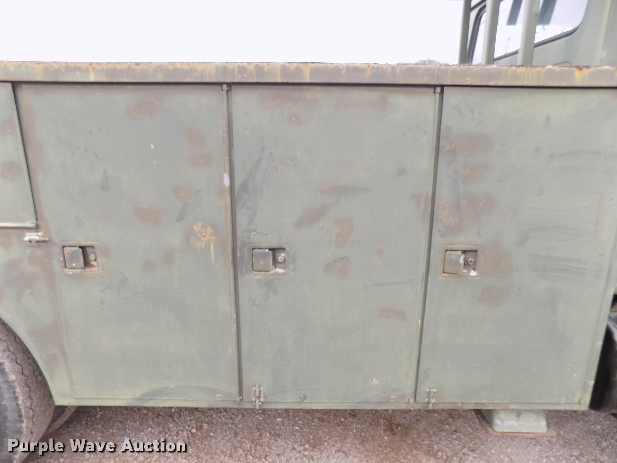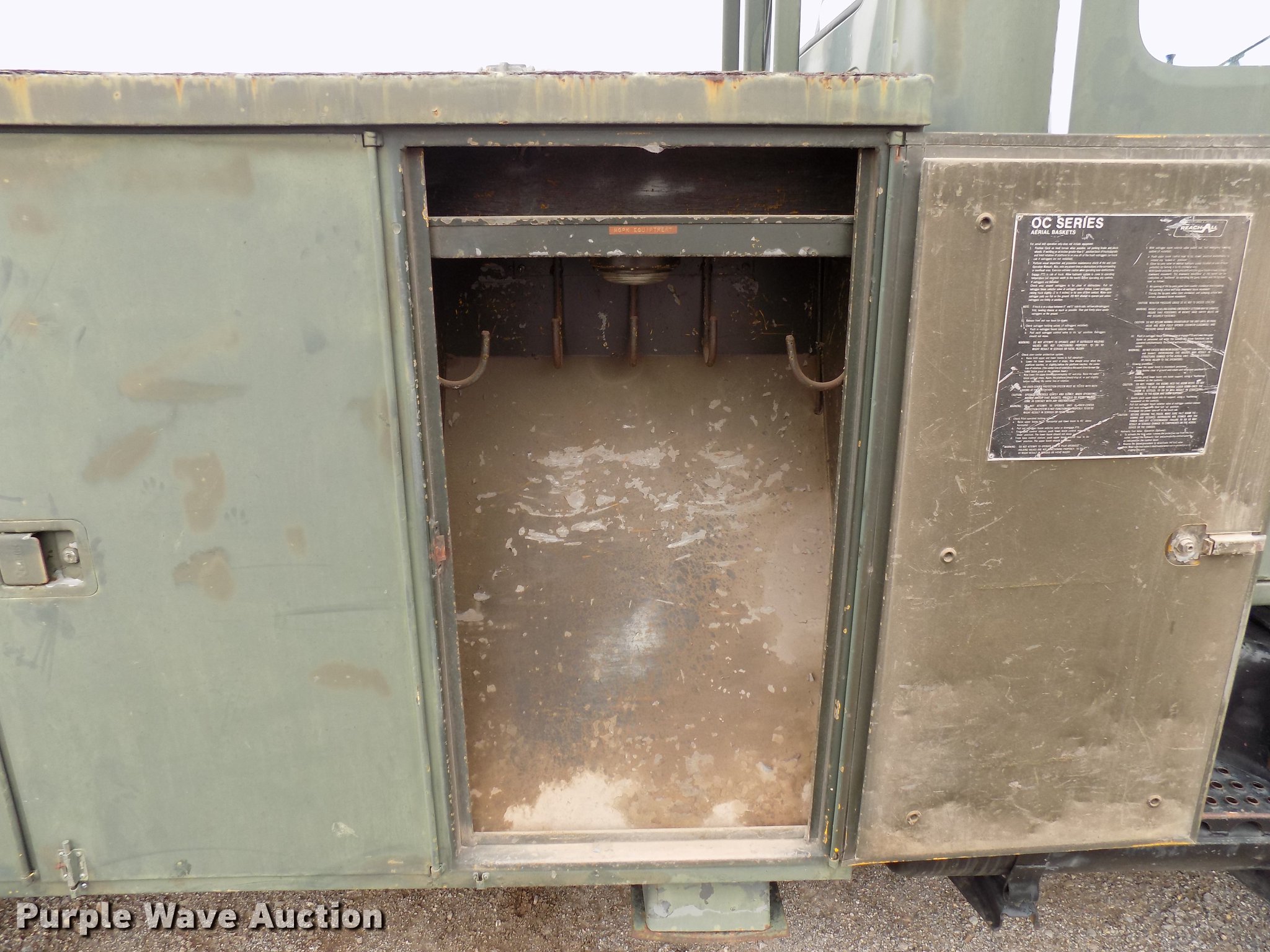 Purple Wave is selling a used Bucket Truck in Oklahoma. This item is a 1986 International S1700/1754 bucket truck with the following: 77,578 miles on odometer, 4,787 hours on meter, Detroit Diesel 9.0L V6 diesel engine, Allison automatic transmission, Single axle, Heat, Front tow hooks, Beacon light, PTO, Wet kit, Reading 144ADW utility bed, 15'L, Shelving, Compartment lights, Catwalk, Work lights, Rear auxiliary hydraulics, Serial 156496, 1986 Reachall 0C48 boom, 500 lbs max lift capacity, Man basket, 48' max lift height, Ground and platform controls, Telescopic boom, (4) outriggers, Serial 5523, Single fuel tank, Pintle hitch, Trailer wiring, Spring suspension, Air brakes, 170" wheelbase, 9.00R20 front tires, 8.25-20 rear tires, Boom hydraulic issues