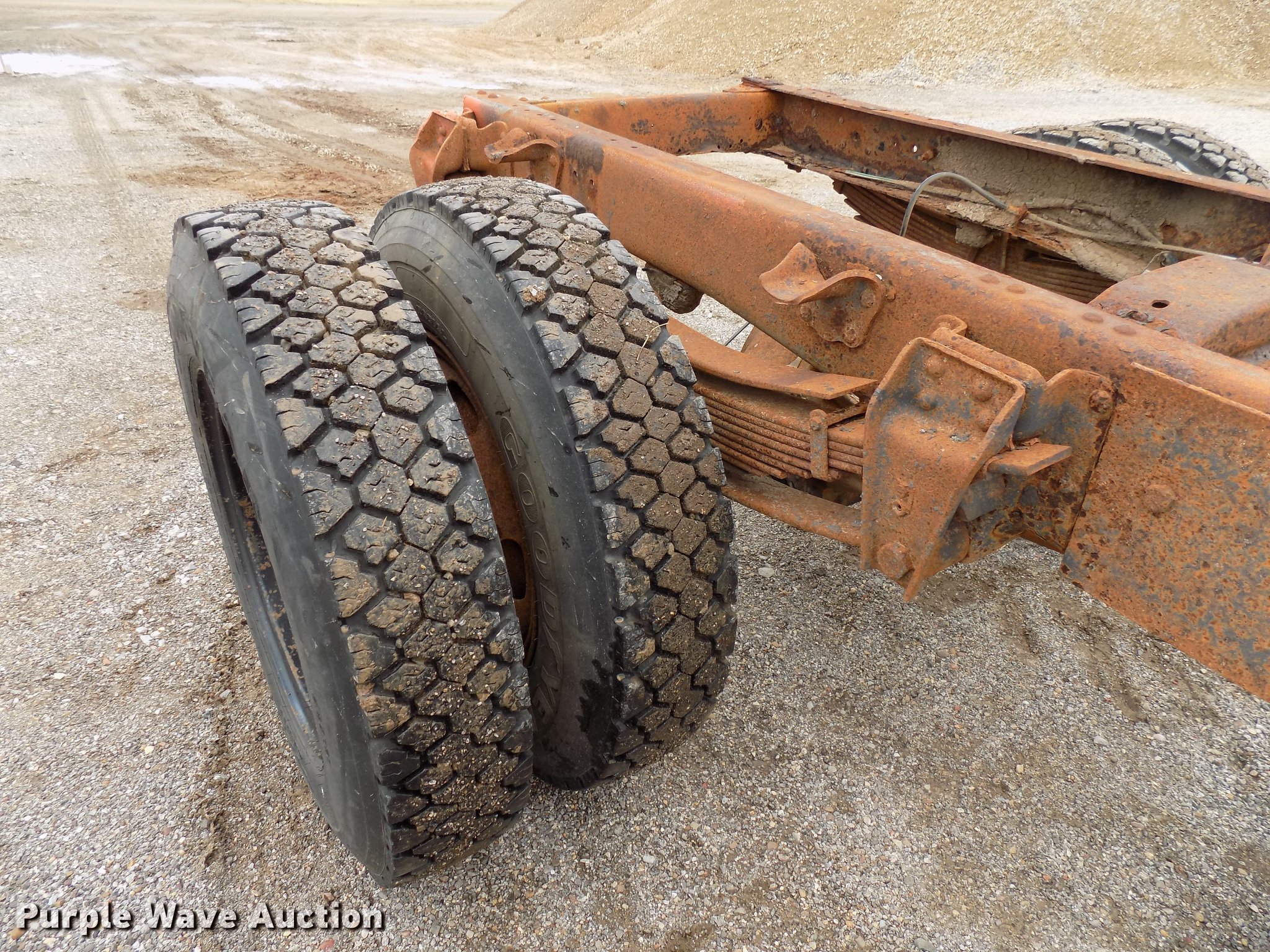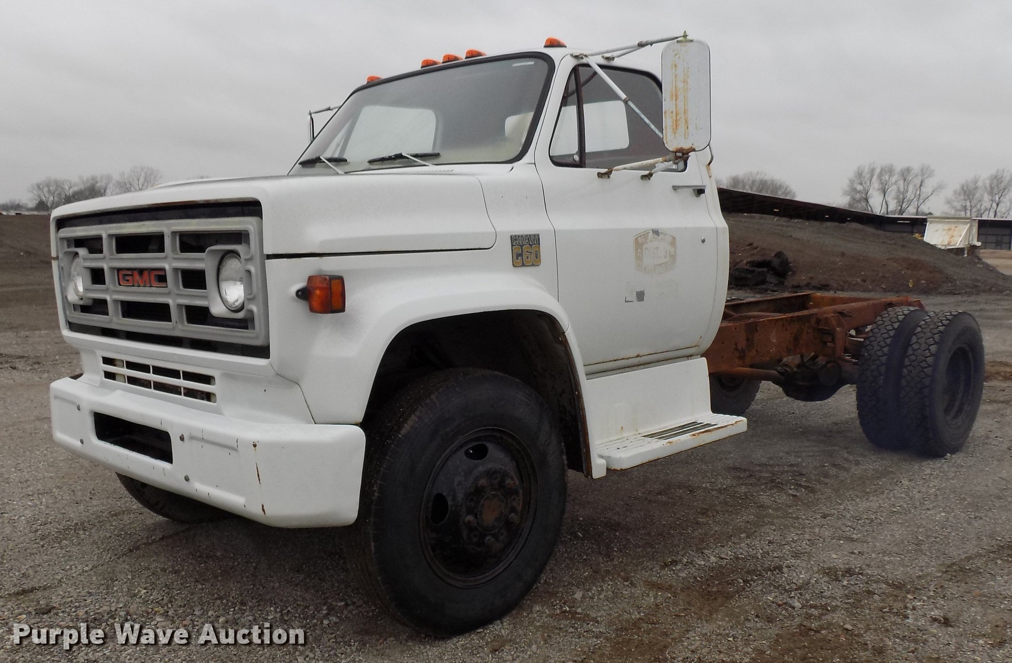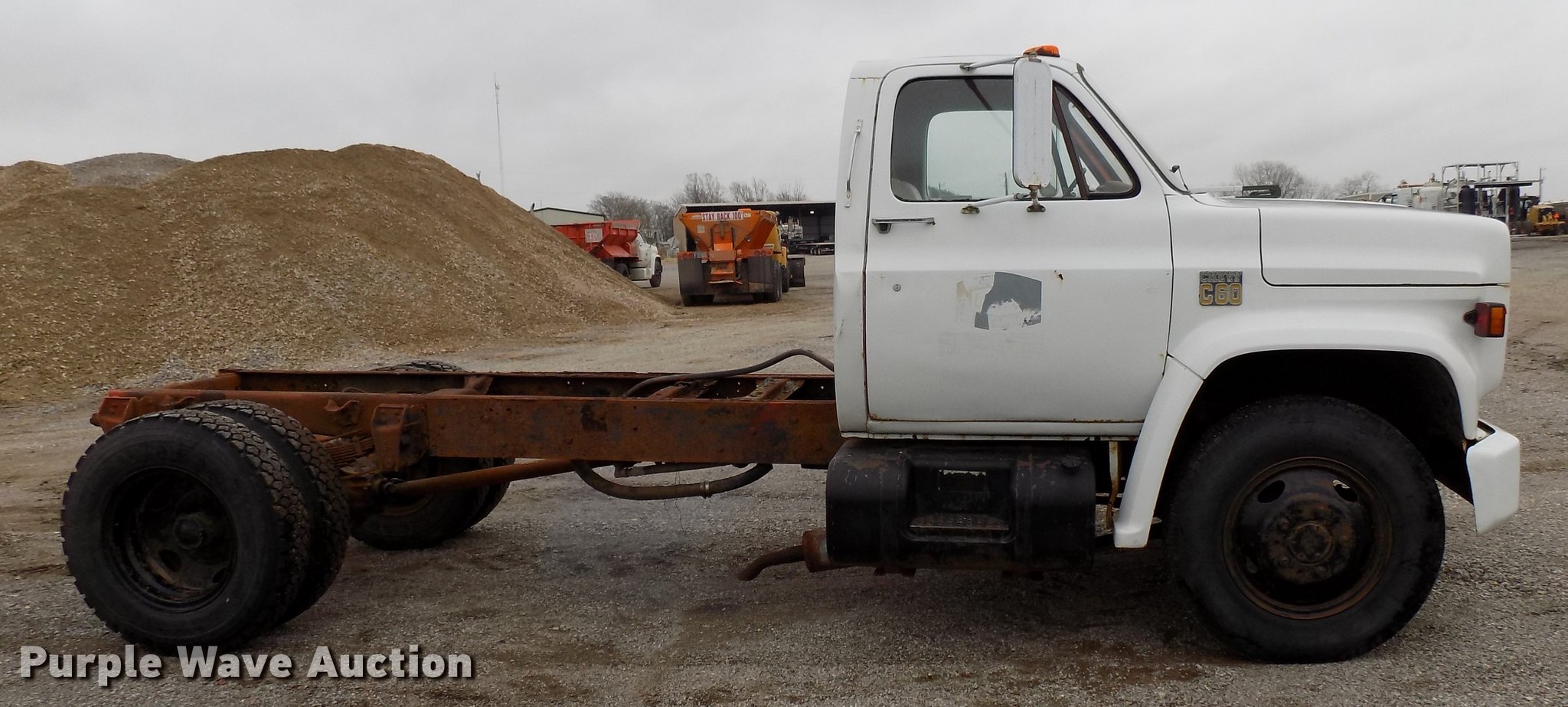Purple Wave is selling a used Truck Chassis in Oklahoma. This item is a 1974 Chevrolet C60 truck cab and chassis with the following: 20,303 miles on odometer, Four speed manual transmission, Two speed rear end, Single axle, Heat, AM/FM, PTO, Single fuel tank, Spring suspension, Hydraulic brakes, 168" wheelbase, 8.25R20 tires, GVWR 19,000 lbs, FAWR 5,000 lbs, RAWR 14,200 lbs, Brakes may need work