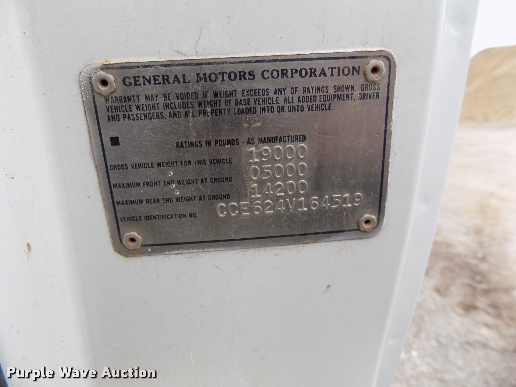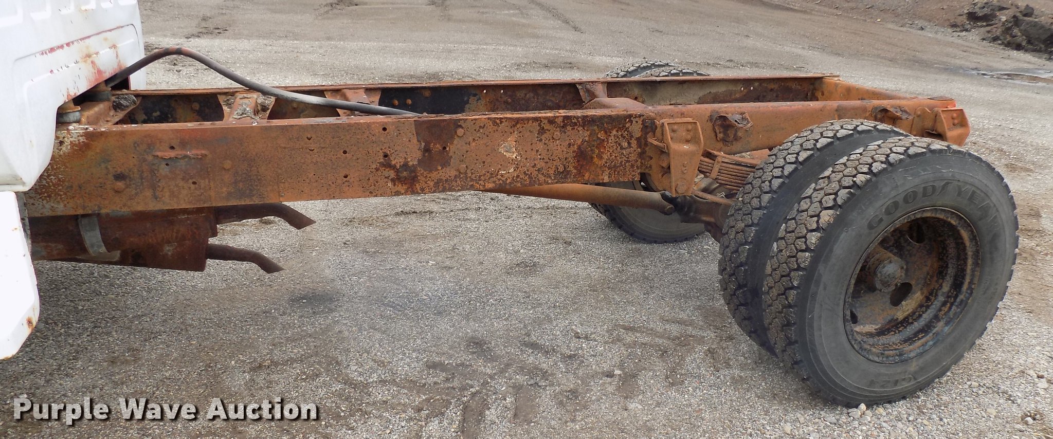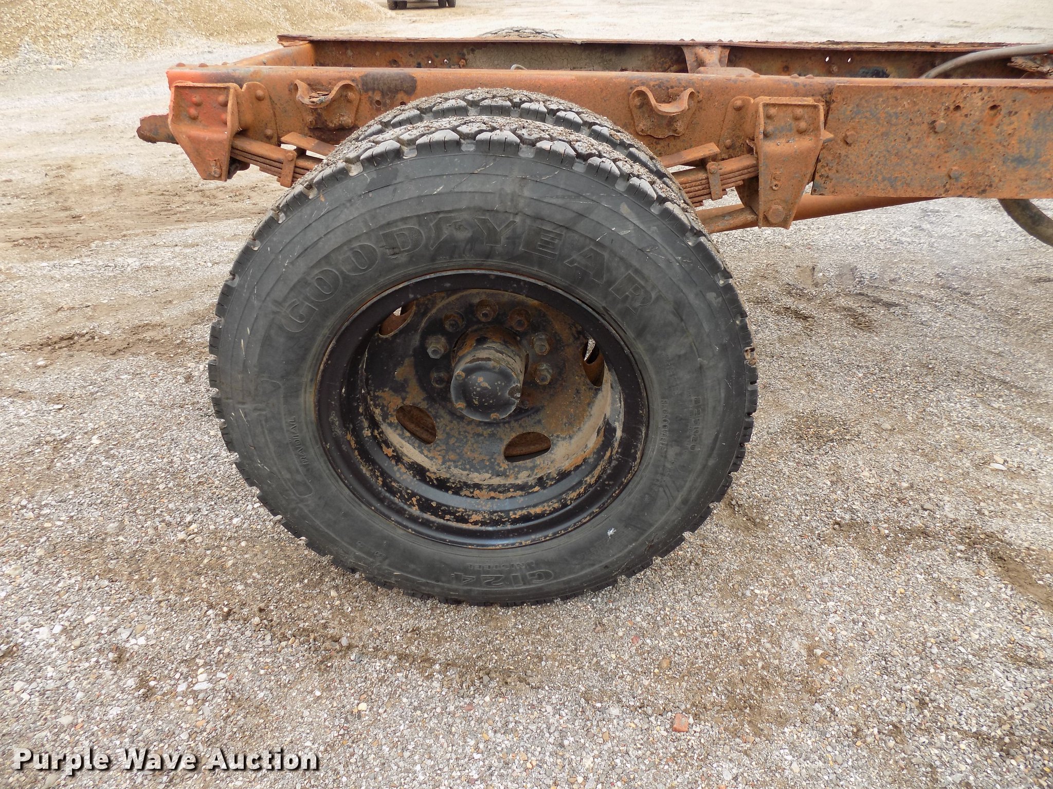 Purple Wave is selling a used Truck Chassis in Oklahoma. This item is a 1974 Chevrolet C60 truck cab and chassis with the following: 20,303 miles on odometer, Four speed manual transmission, Two speed rear end, Single axle, Heat, AM/FM, PTO, Single fuel tank, Spring suspension, Hydraulic brakes, 168" wheelbase, 8.25R20 tires, GVWR 19,000 lbs, FAWR 5,000 lbs, RAWR 14,200 lbs, Brakes may need work