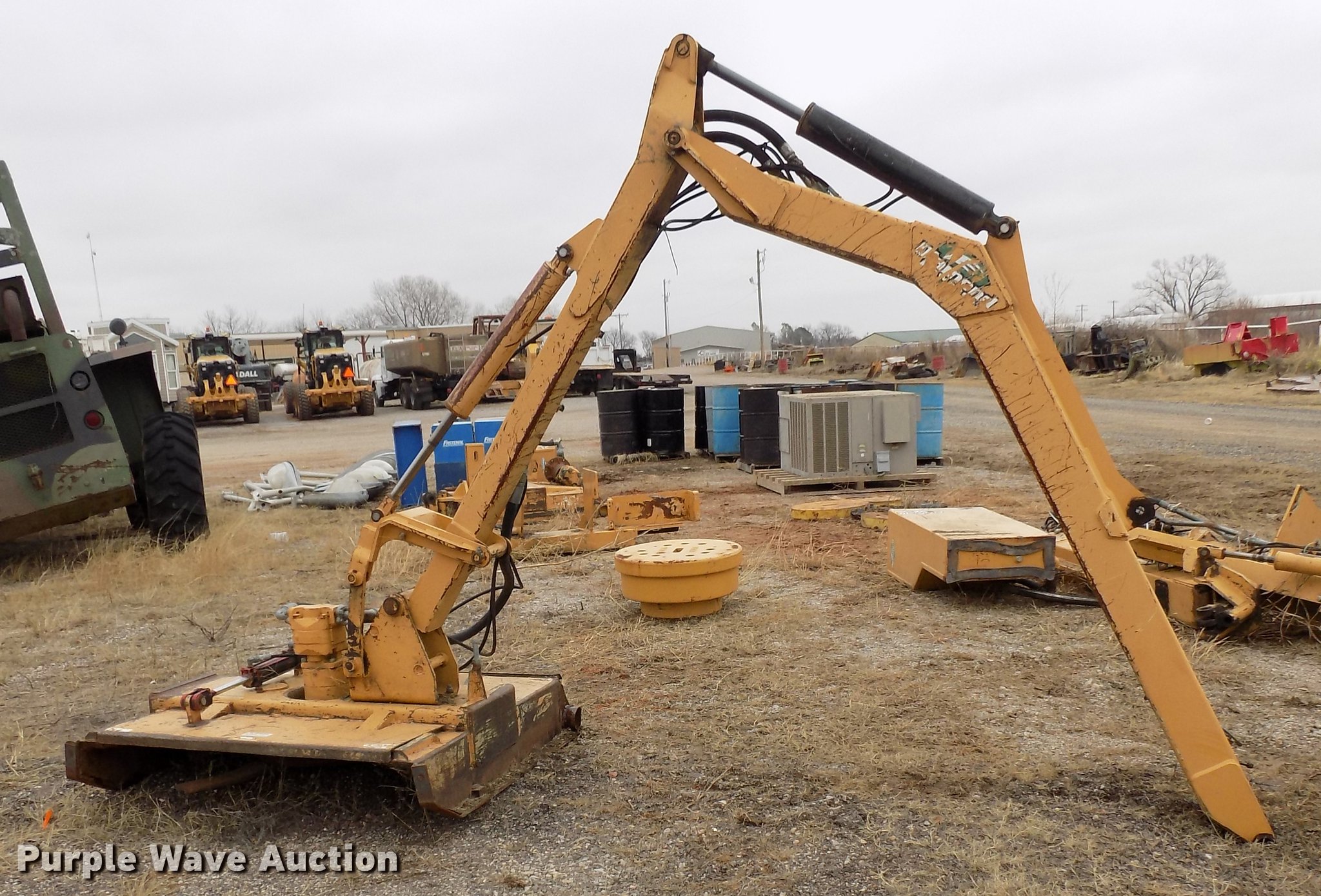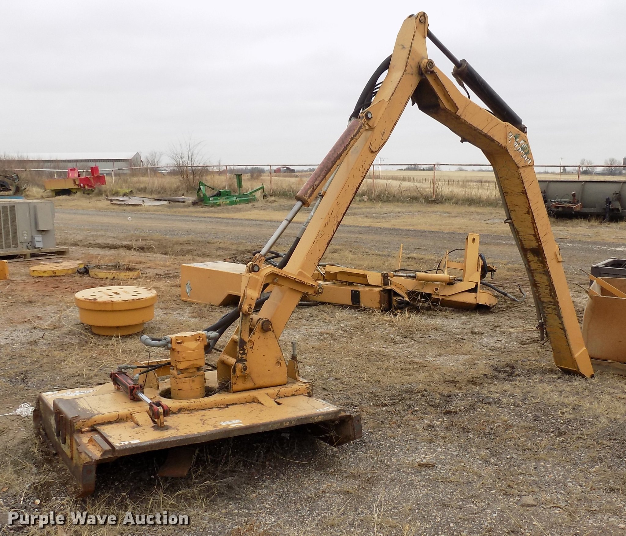 Purple Wave is selling a used Mower, Cutter, Shredder in Oklahoma. This item is a (2) Diamond side-boom Tiger mowers with the following: 48"W, Hydraulic lift, fold, tilt, and drive, Counter weights, Booms, Mounts, Reservoirs, Decks, Controls, One unit is parts only, Serial 7174, 2466