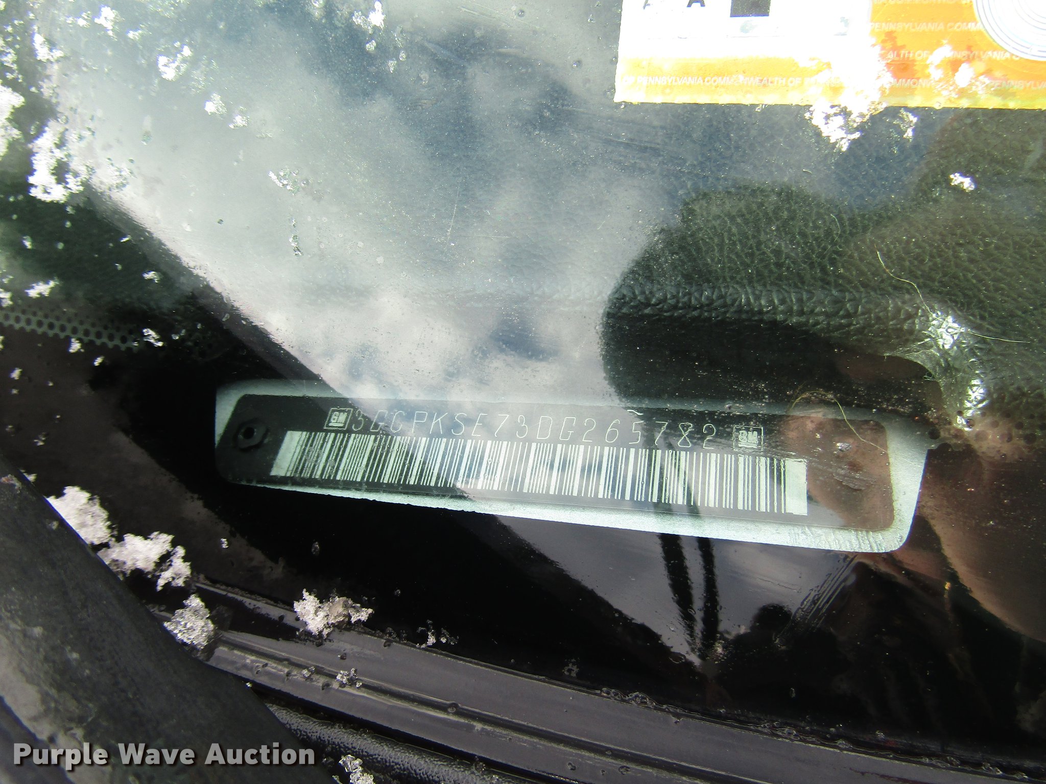 Purple Wave is selling a used 1/2 Ton Pickup or Van in Pennsylvania. This item is a 2013 Chevrolet Silverado 1500 Crew Cab pickup truck with the following: 147,760 miles on odometer, 5.3L V8 OHV 16V FFV gas engine, Automatic transmission, Four wheel drive, AC and heat, Tilt, Cruise, AM/FM/CD, Power windows, locks, mirrors, and seat, Cloth interior, Front tow hook, Toolbox, Receiver hitch, Trailer wiring, 265/70R18 tires, Non-operational vehicle, Possible engine issues, Unit# 1356