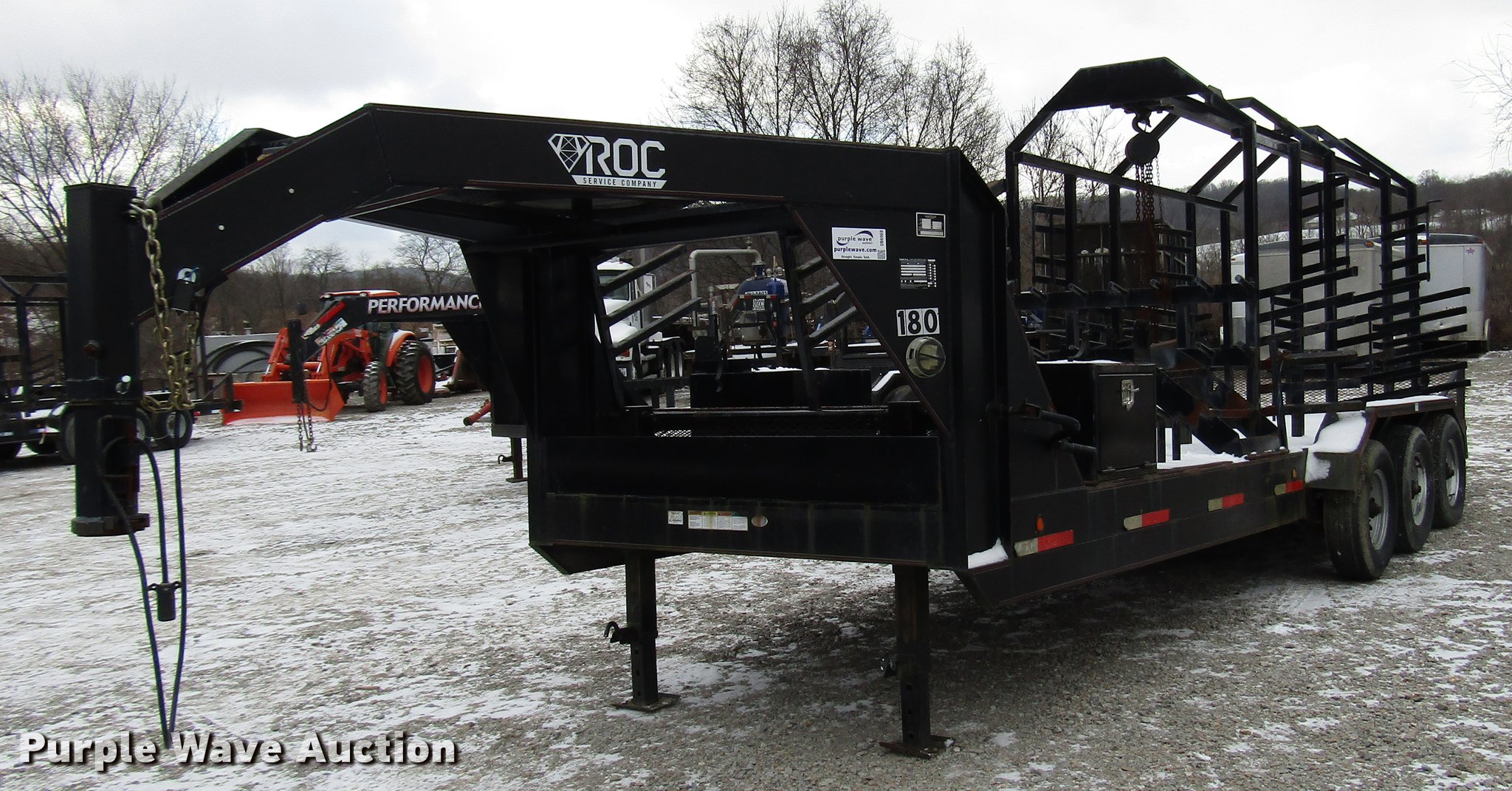 2013 Bestbilt utility trailer. 32.5' overall length, 24'L x 82"W wood deck, Tolley model CCBTP Two ton maximum capacity, Toolbox, Gooseneck hitch, Dual leg landing landing gear, Spring suspension, Electric brakes, Triple axle, Steel wheels, 235/80R16 tires, GVWR 24,000 lbs, GAWR 8,000 lbs, Unit# T180. Vehicle has an E-Title in the State of Texas. A paper title will be distributed to the buyer within 30 days from verification of funds. 5YHGU2433DM705186. ROC Service. 1 Rainey Rd. Eighty Four, PA 15330