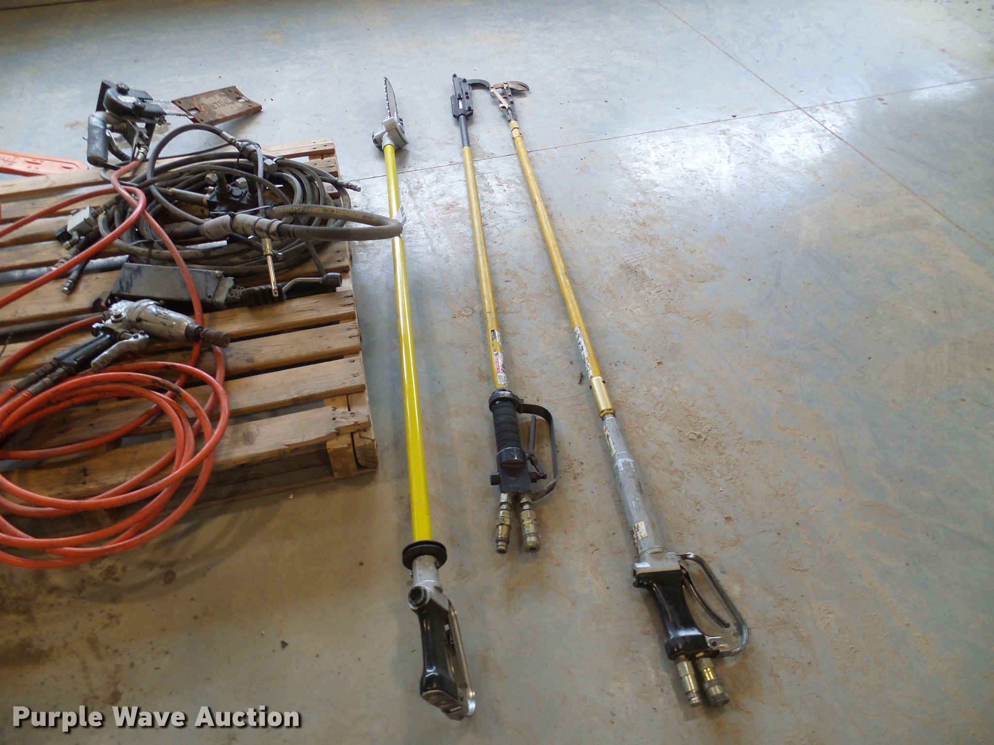Purple Wave is selling a used Tools in Missouri. This item is a Tools with the following: (2) impact wrenches, (3) hydraulic chain saws, Hydraulic pole saw, (2) hydraulic pruners
