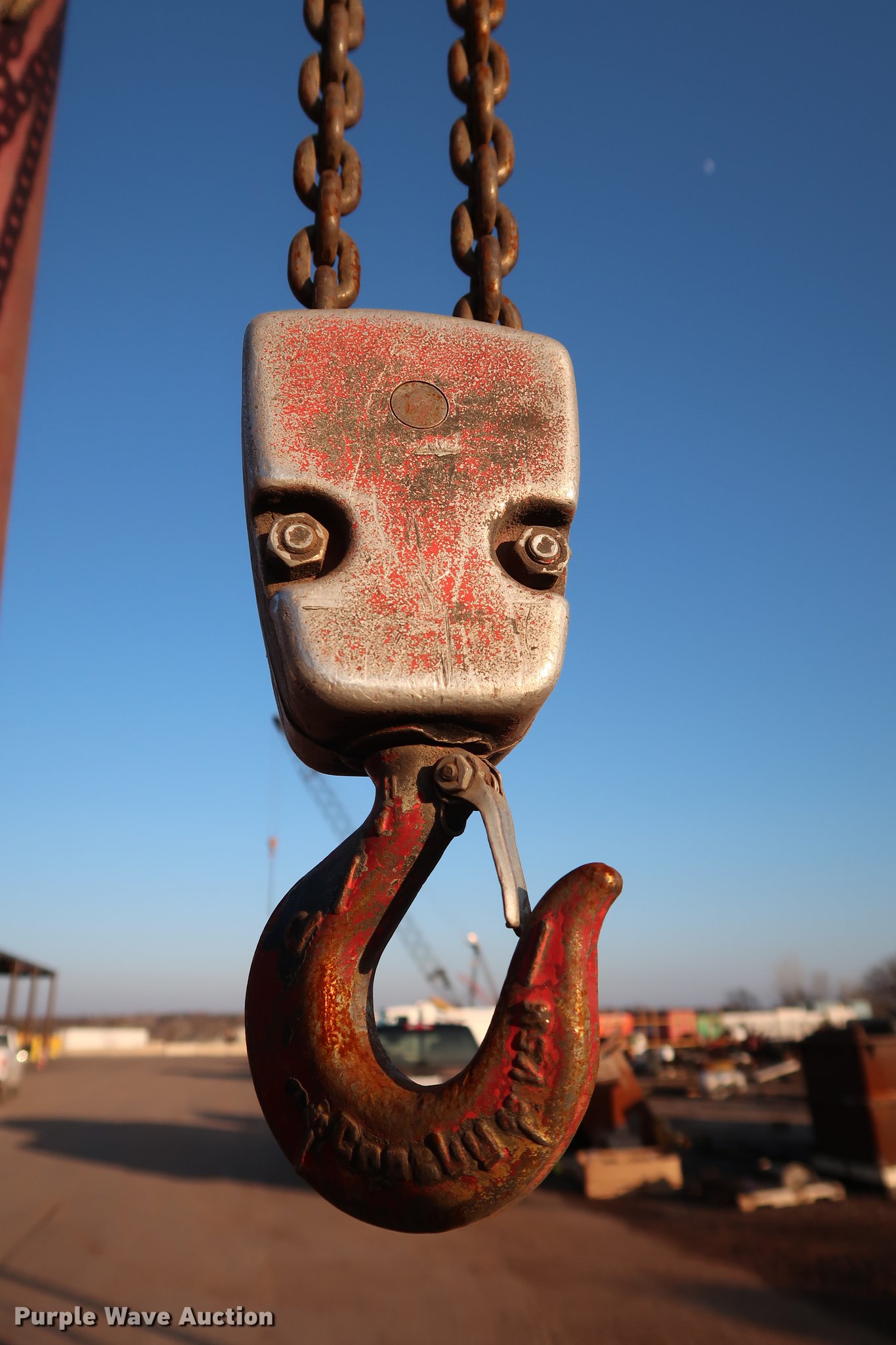 This A-frame overhead crane hoist will sell to the highest bidder regardless of price.