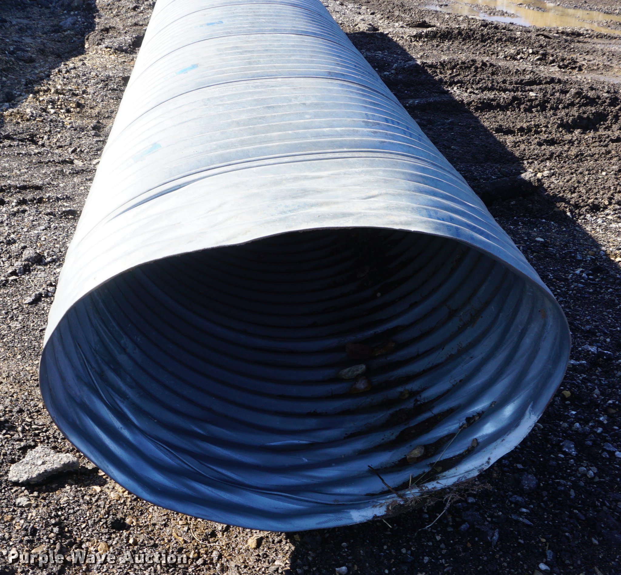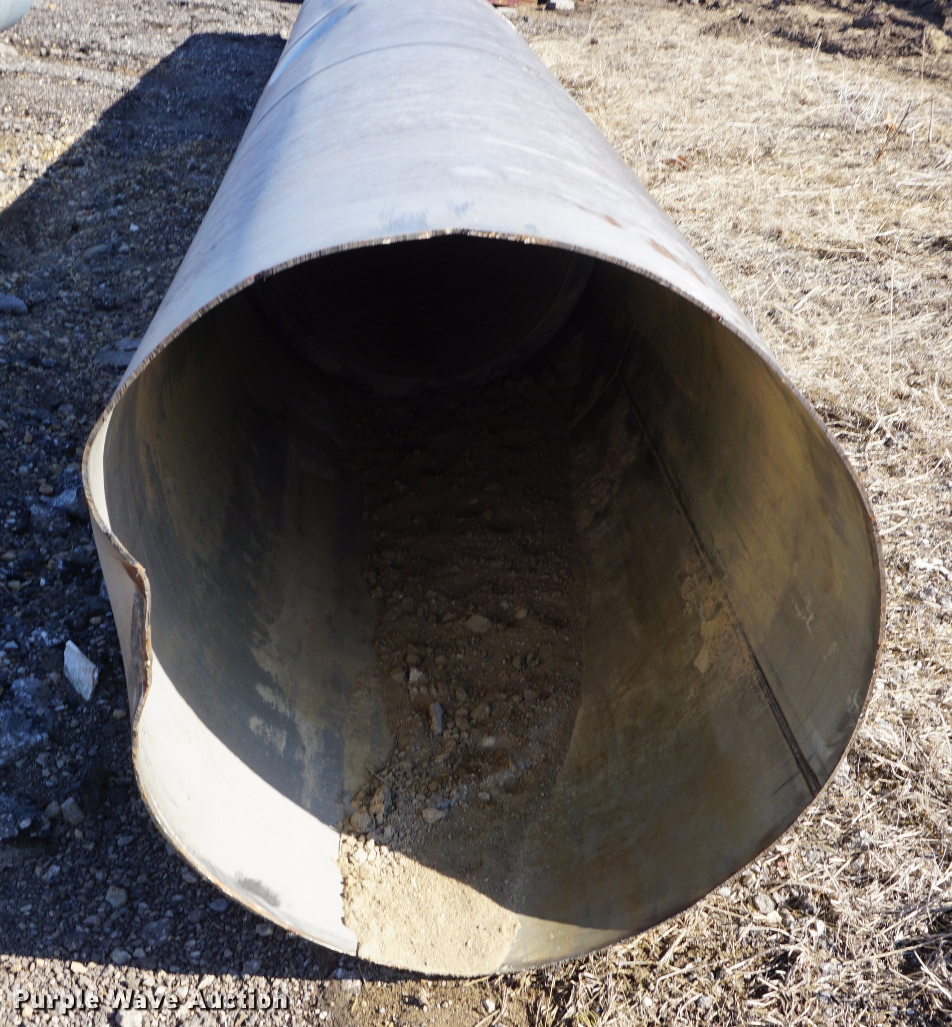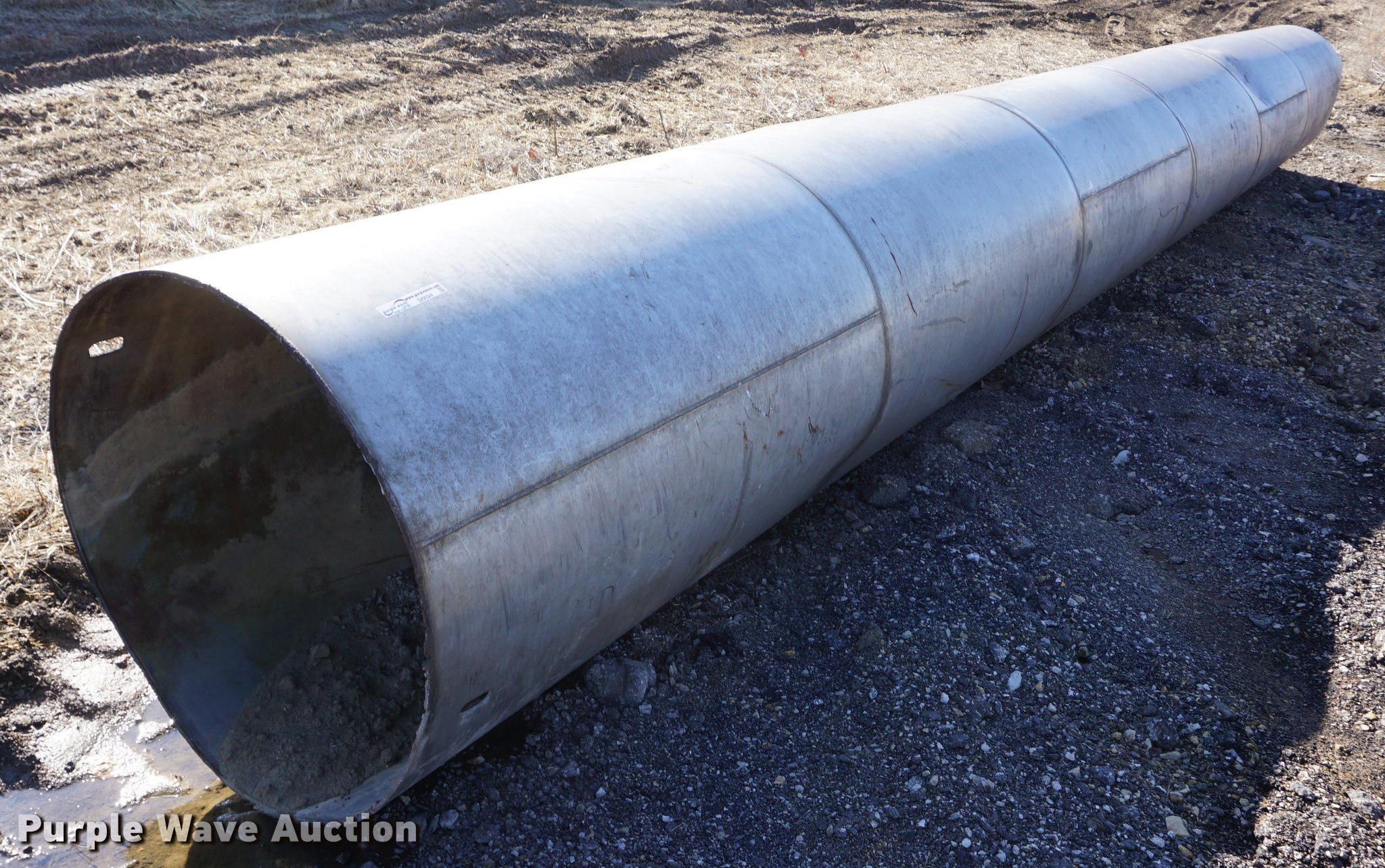 Purple Wave is selling a used Pipe in Kansas. This item is a (2) culvert pipes with the following: 30'L x 38" diameter stainless steel pipe, 20'L x 36" x 24" oval galvanized tube
