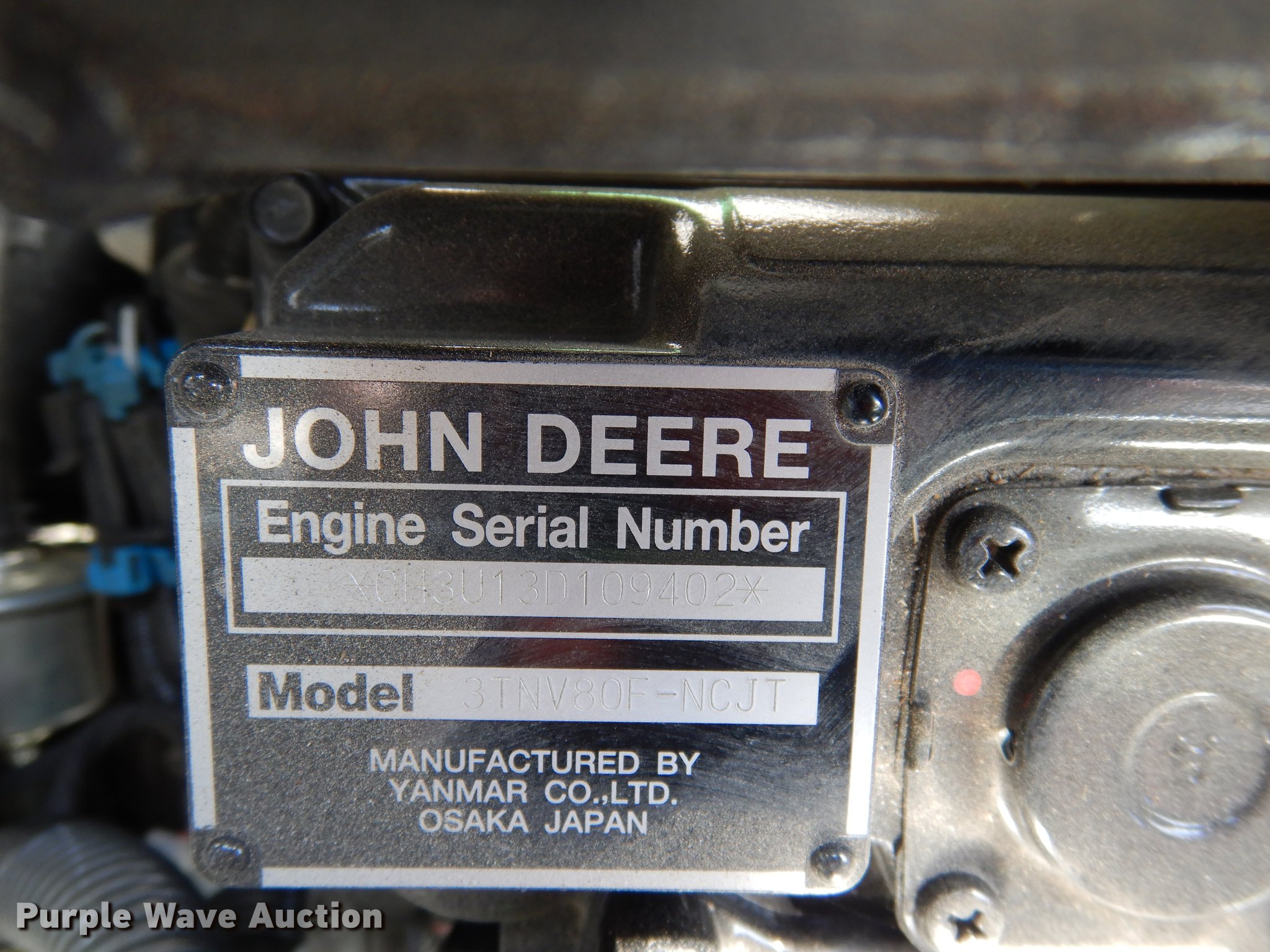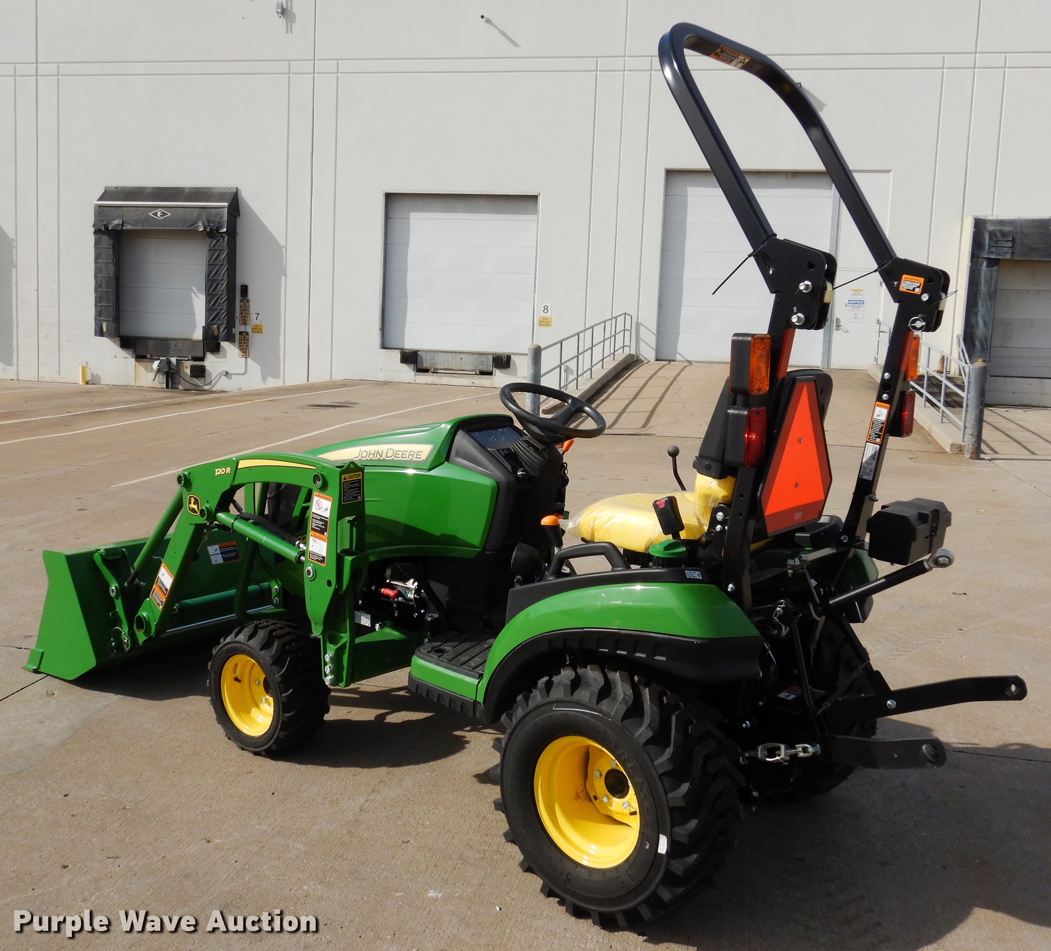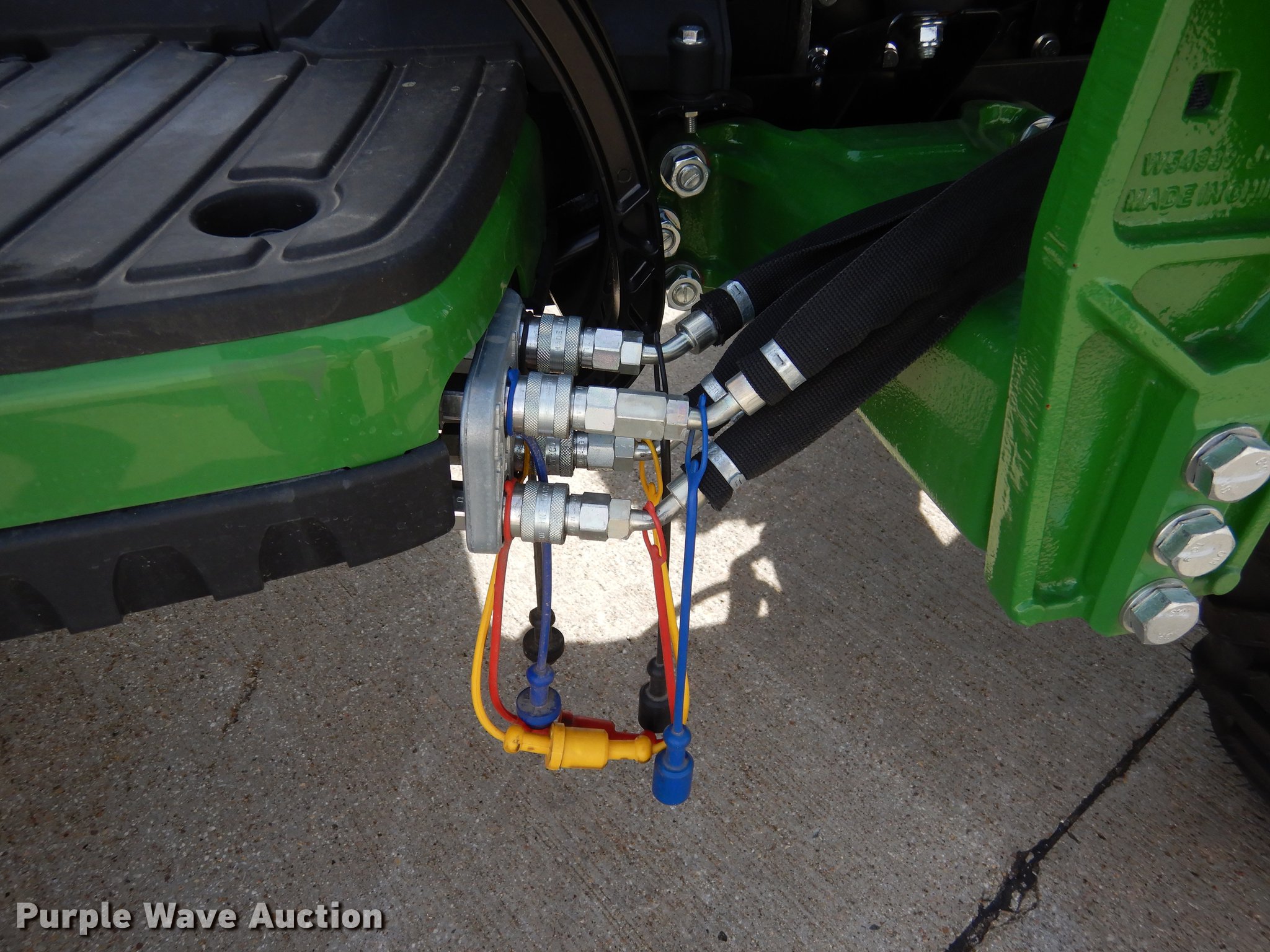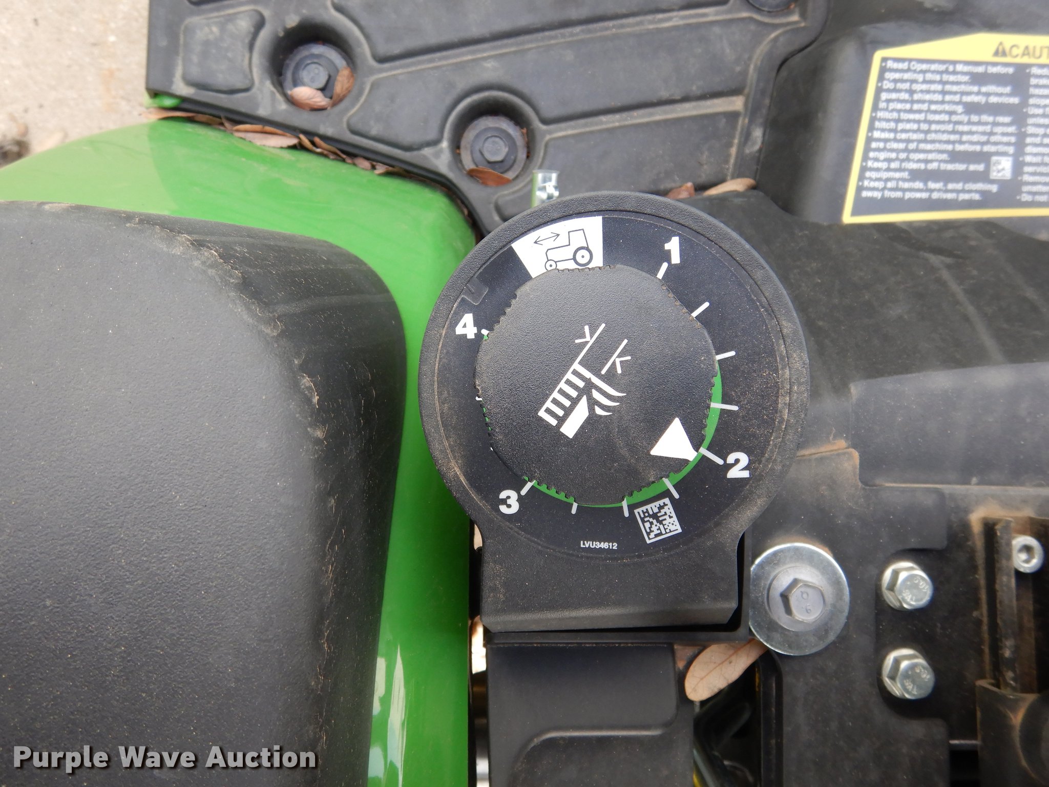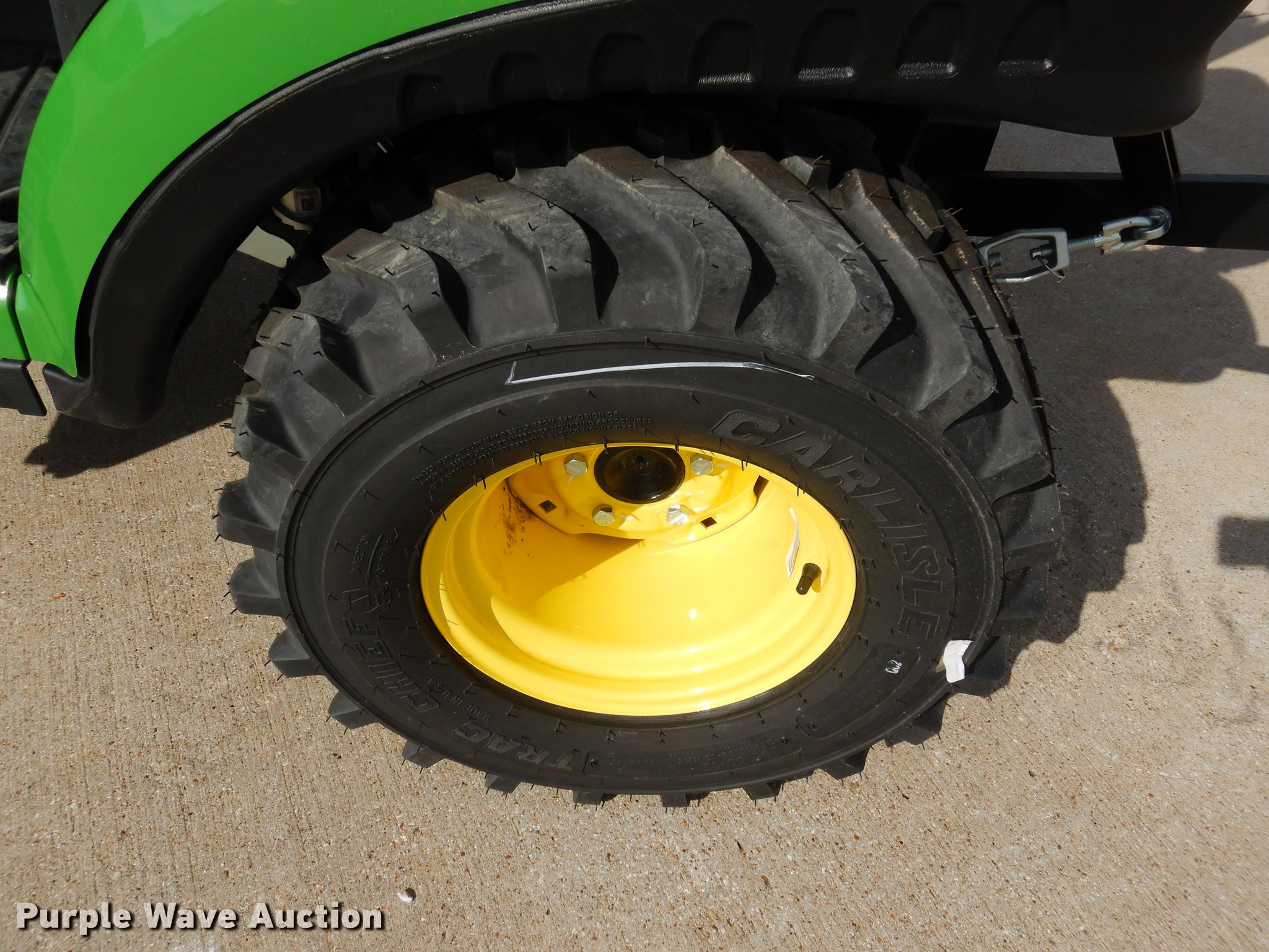 Purple Wave is selling a used Tractor in Texas. This item is a John Deere 1025R MFWD tractor with the following: 1 hours on meter, Yanmar 3TNV80F-NCJT 1.26L three cylinder diesel engine, 23.8 HP, Serial CH3U13D109402, Hydrostatic transmission, Differential lock, Folding ROPS, Tilt steering wheel, Suspension seat, Toolbox, John Deere 120R loader, 53"W bucket, Joystick controls, Three point, 540 PTO, 57" wheelbase, 18x8.50-10 front tires, 26x12-12 rear tires, Serial 1LV1025RREJJ154634