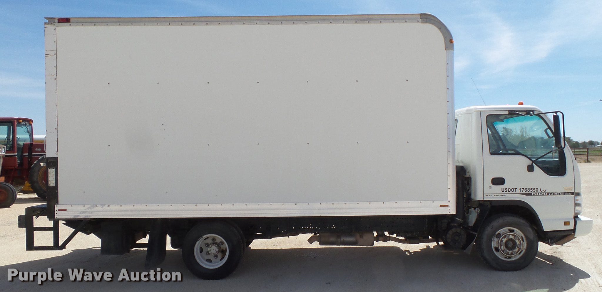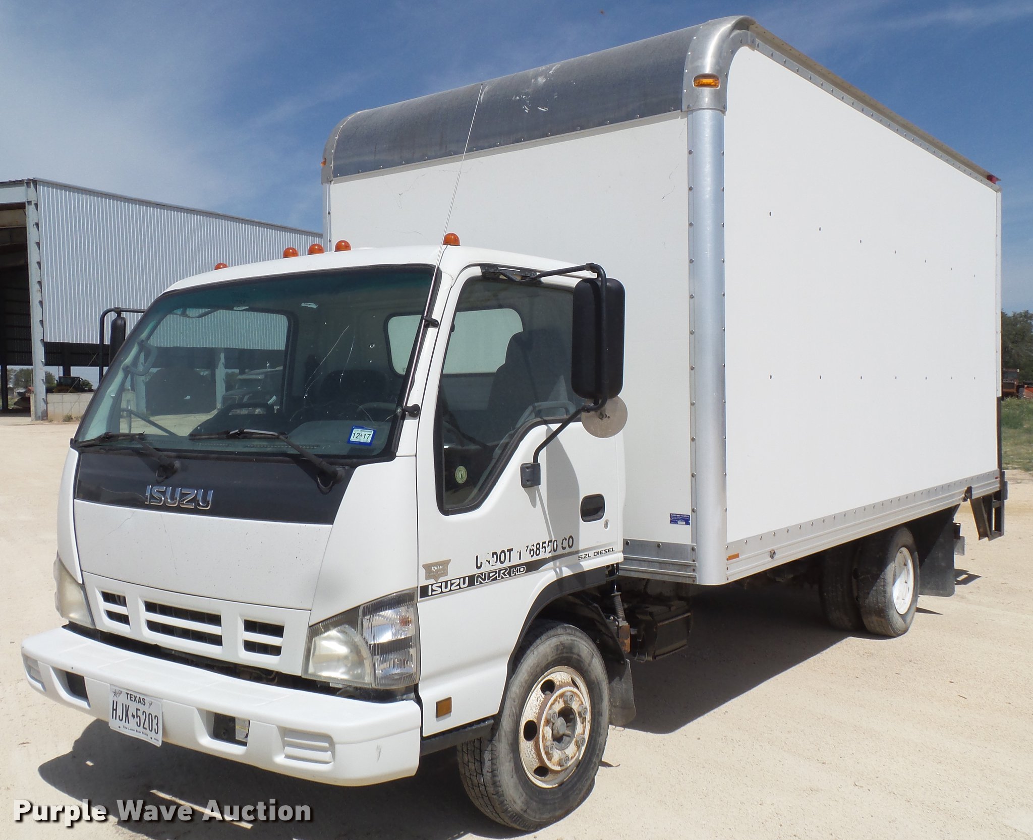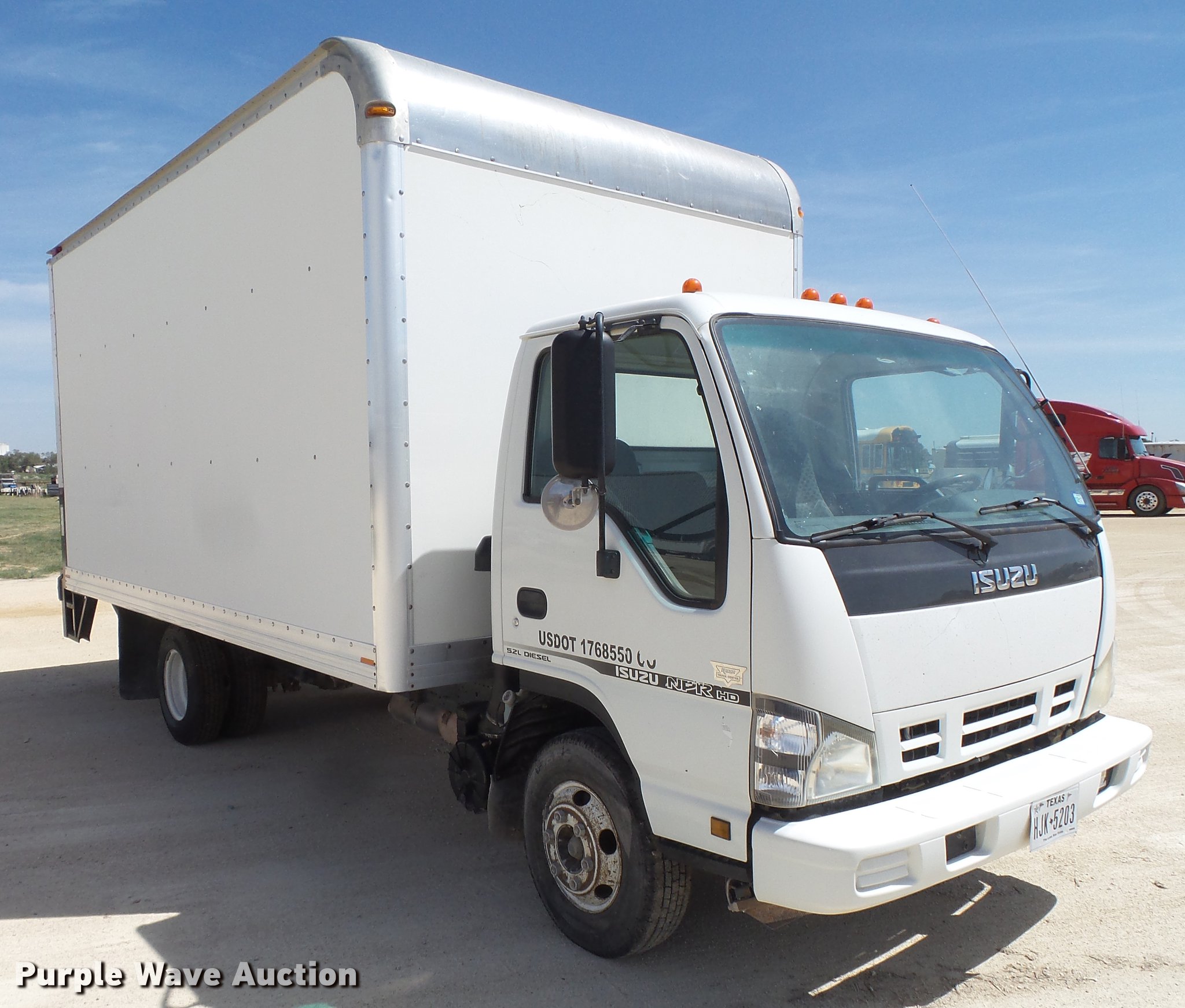 Purple Wave is selling a used Box Truck in Texas. This item is a 2006 Isuzu NPR box truck with the following: 258,171 miles on odometer, Isuzu 4HK1TC 5.2L L4 diesel engine, 190 HP, Automatic transmission, Single axle, AC and heat, AM/FM/CD, Power windows, Suspension seat, Trailer brake controller, Front tow hooks, Roll up rear door, Maxon end gate lift, Spring suspension, Hydraulic brakes, 215/85R16 tires