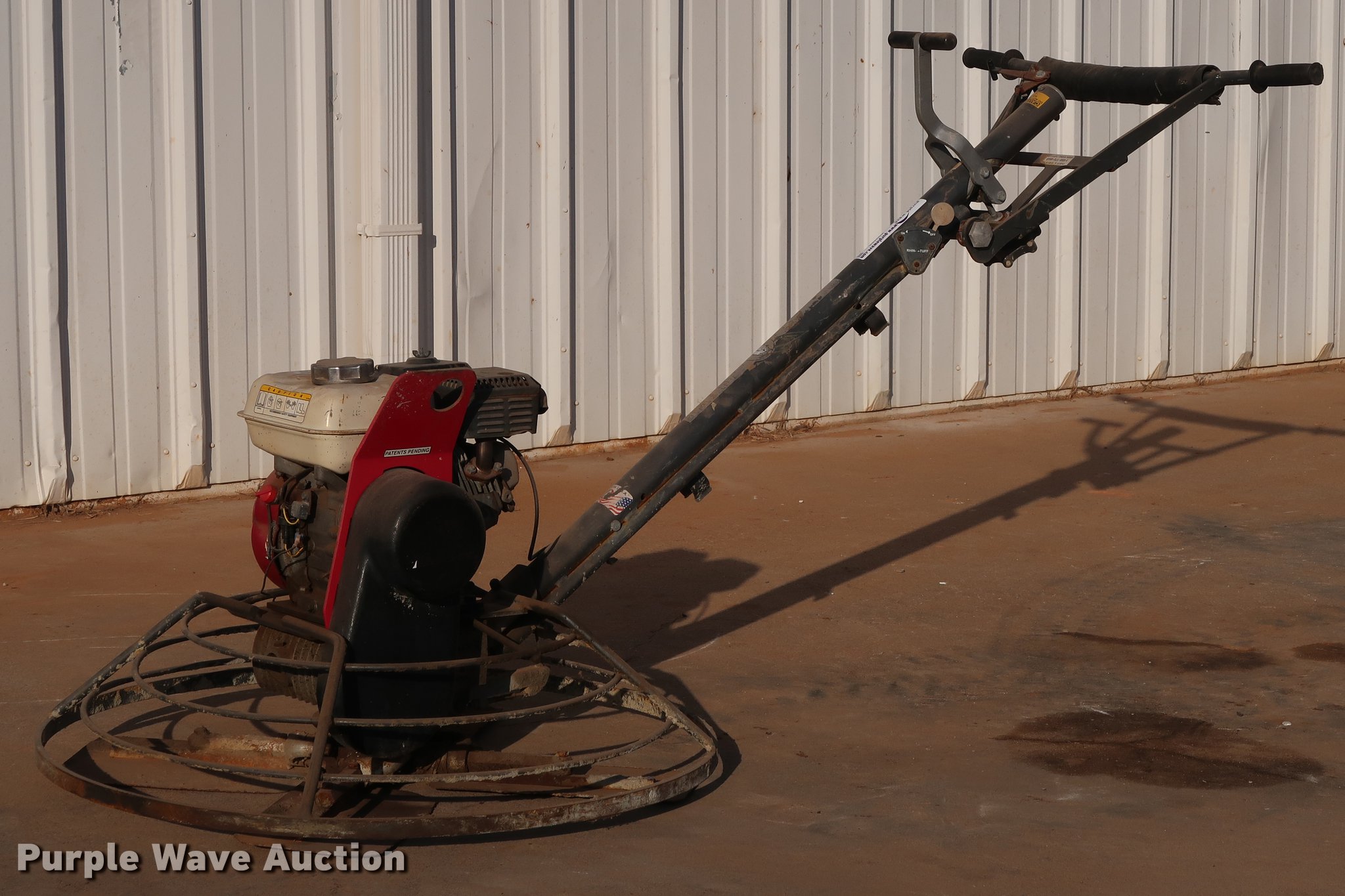 Purple Wave is selling a used Concrete Equip. or Acces. in Oklahoma. This item is a Rhin-O-tuff R36H5 trowel with the following: Honda 5.5 HP gas engine, 36" diameter, Serial ZB01418