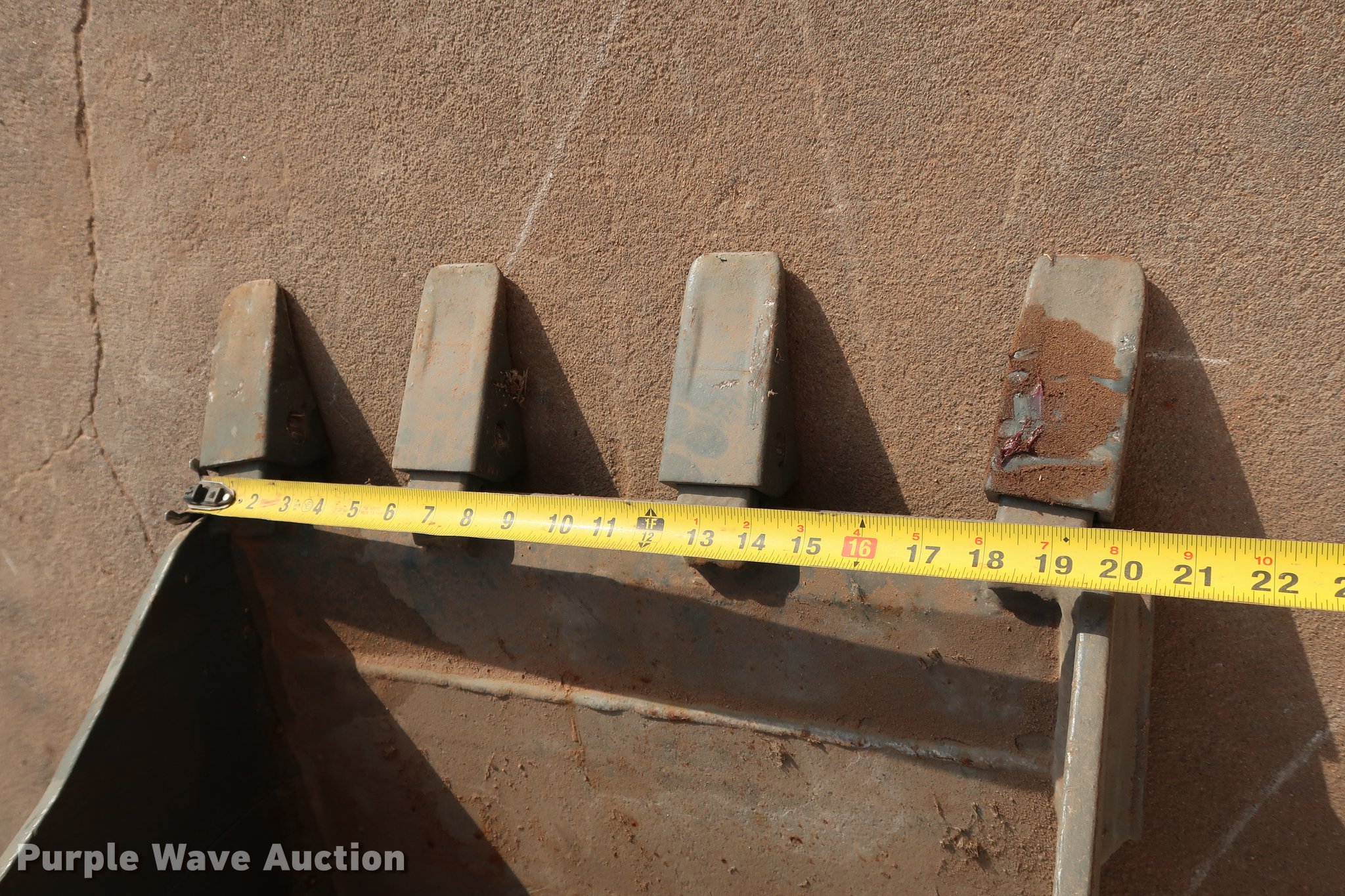 Purple Wave is selling a used Excavator Attach. in Oklahoma. This item is a WB excavator bucket with the following: 20"W, (4) teeth, 1" pin diameter, 5"W mount clearance