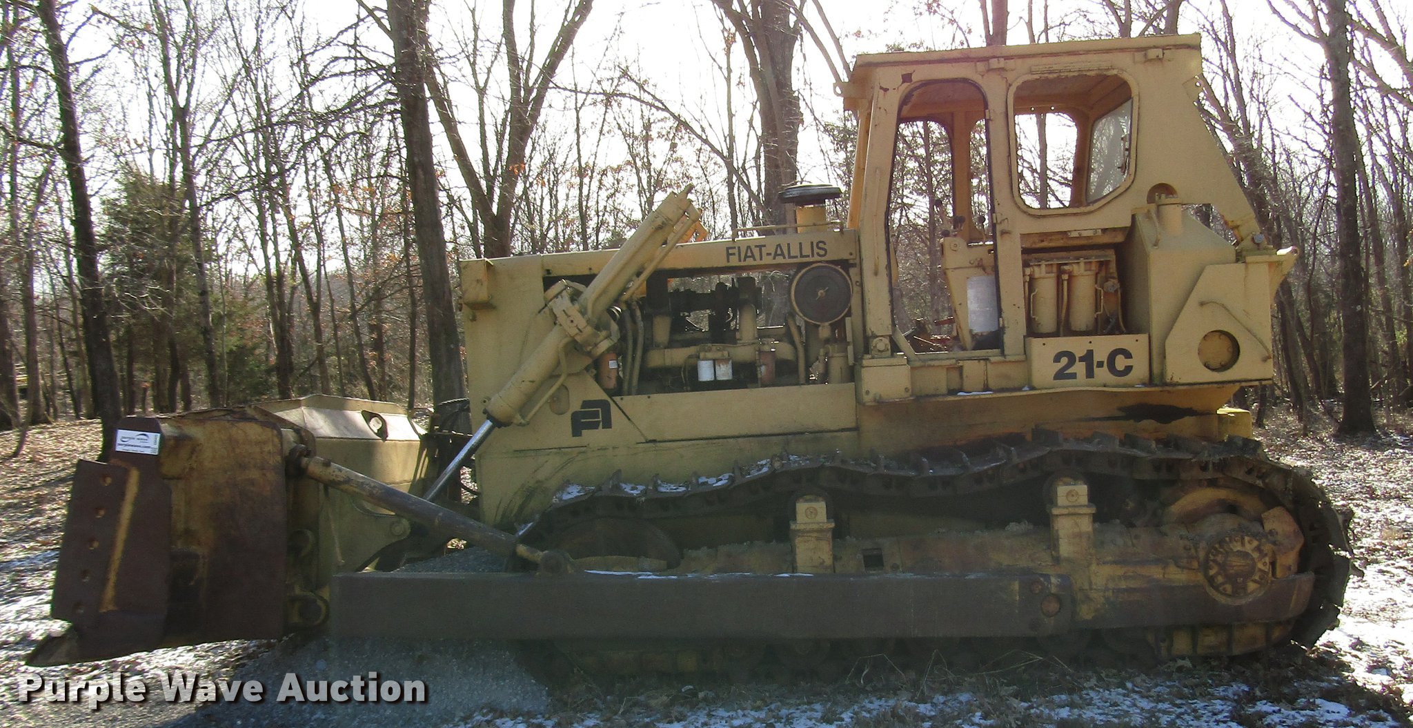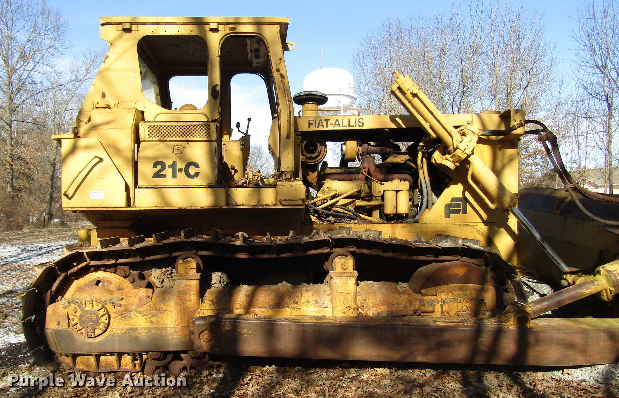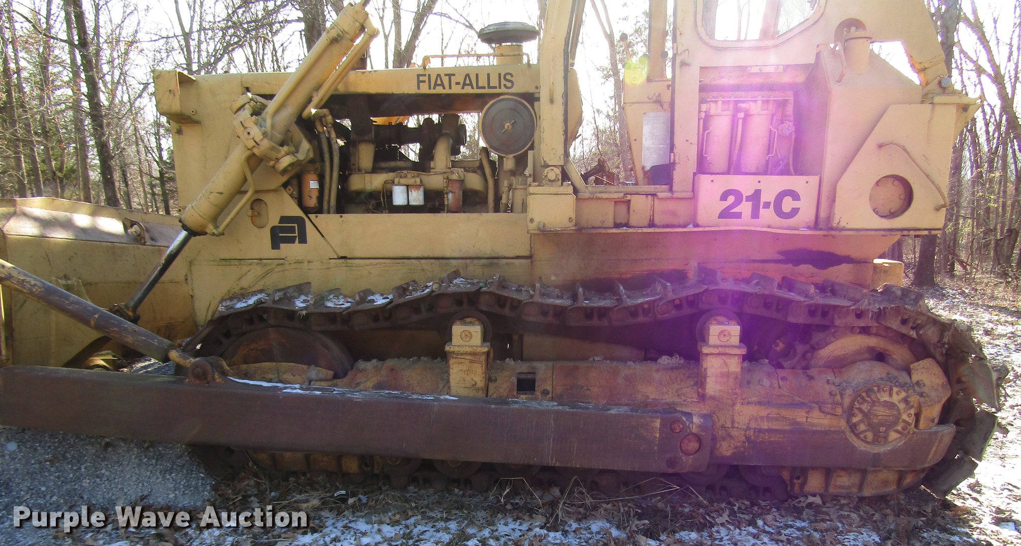 Purple Wave is selling a used Crawler Dozer in Illinois. This item is a Fiat-Allis 21C dozer with the following: Allis Chalmers six cylinder turbo diesel engine, Powershift transmission, 3F-3R gears, Cab, Clutch brake steering, 166" dual tilt dozer blade, Rear drawbar, 24" single grouser track pads, Seven bottom rollers, Glass missing, Serial 28601