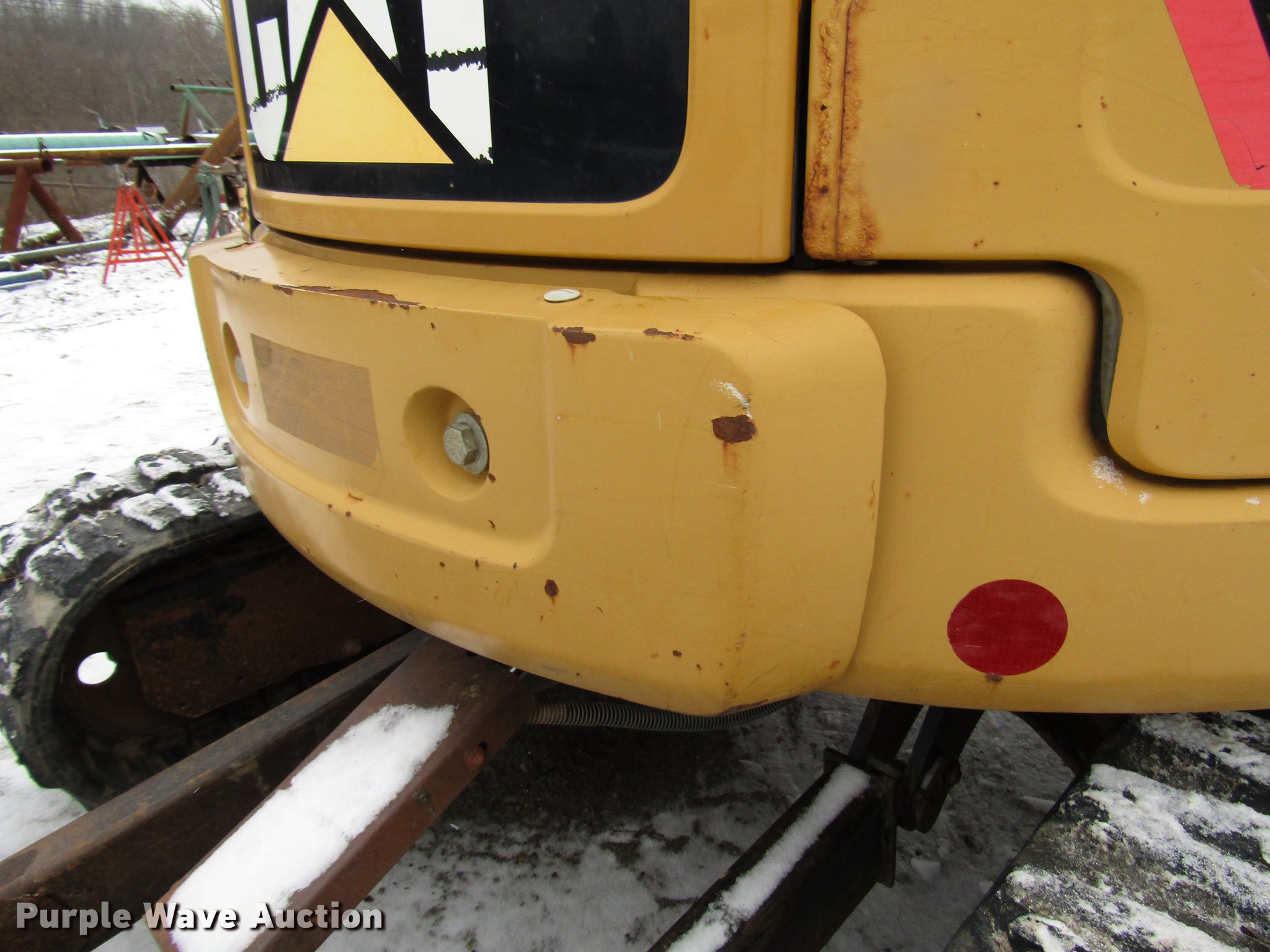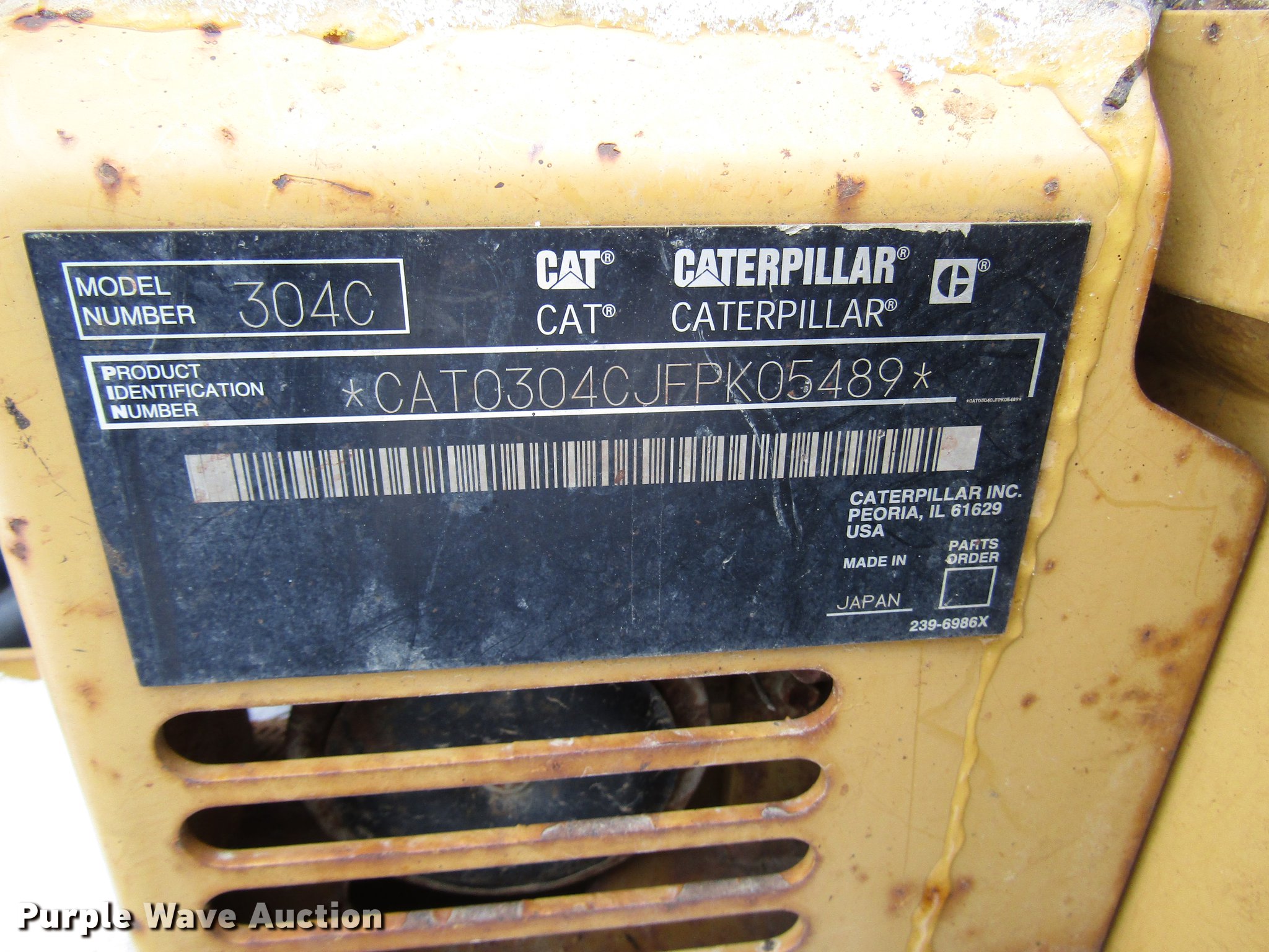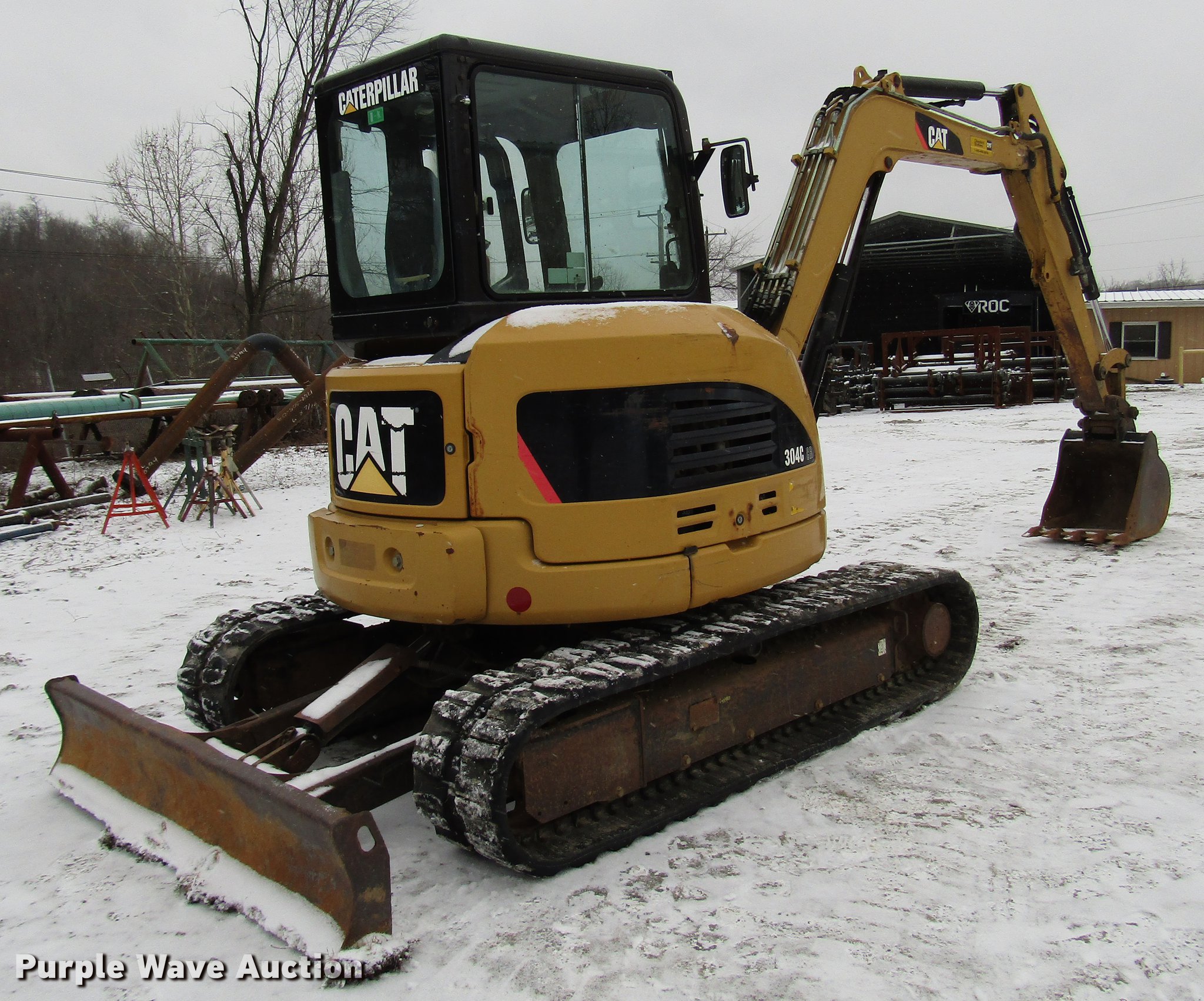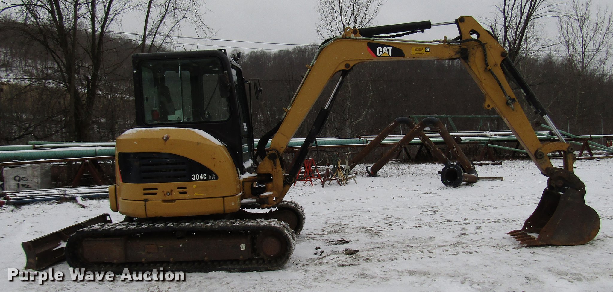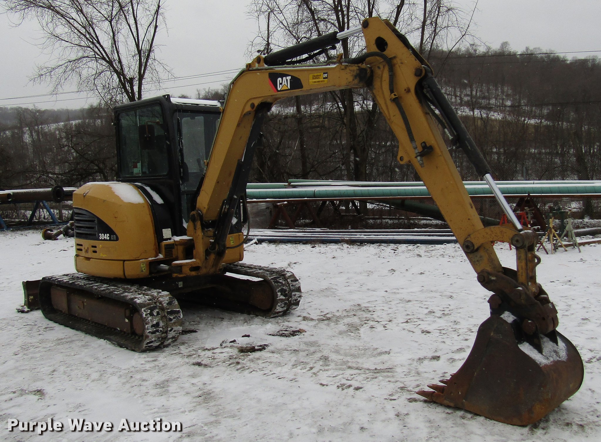 Purple Wave is selling a used Mini Excavator in Pennsylvania. This item is a 2008 Caterpillar 304C CR mini excavator with the following: 3,506 hours on meter, Caterpillar four cylinder diesel engine, Two speed hydrostatic transmission, EROPS, AC and heat, Suspension seat, Wipers, Front work lights, Travel alarm, Block heater, Swing boom, 5'9" stick length, 21"W bucket, (5) weld-on teeth, 78"W backfill blade, Removable counter weights, 15"W rubber tracks, Door glass missing, Serial CAT0304CJFPK05489, Unit# E122