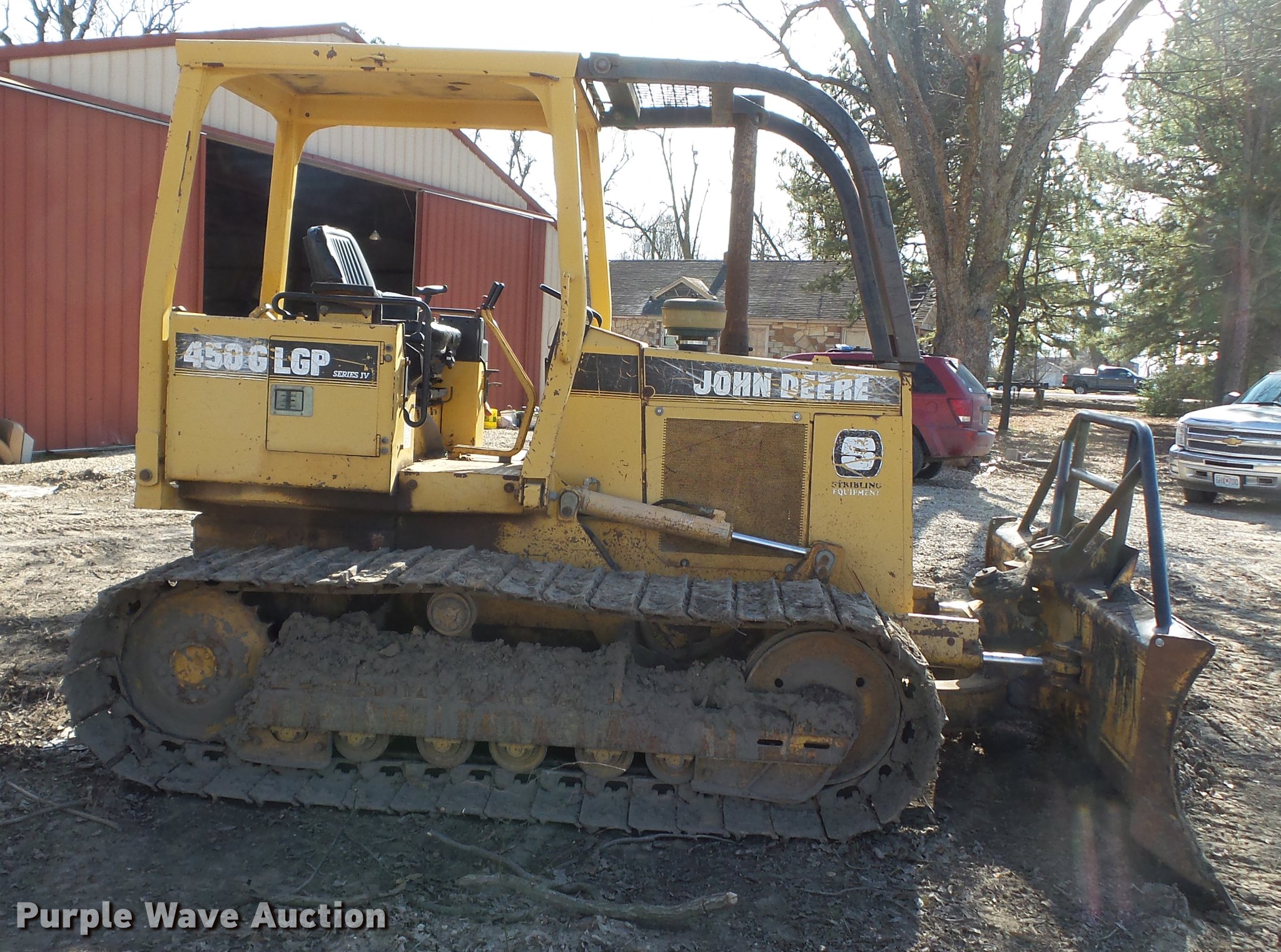 Purple Wave is selling a used Crawler Dozer in Missouri. This item is a 1996 John Deere 450G LGP Series IV dozer with the following: 4,601 hours on meter, John Deere 4045T four cylinder turbo diesel engine, 70 HP, Powershift transmission, 4F-4R gears, EROPS, Suspension seat, 9.5'W six-way angle semi-U dozer blade, Rear draw bar, Five bottom rollers, 24"W single grouser track pads, Serial T0450GH822165