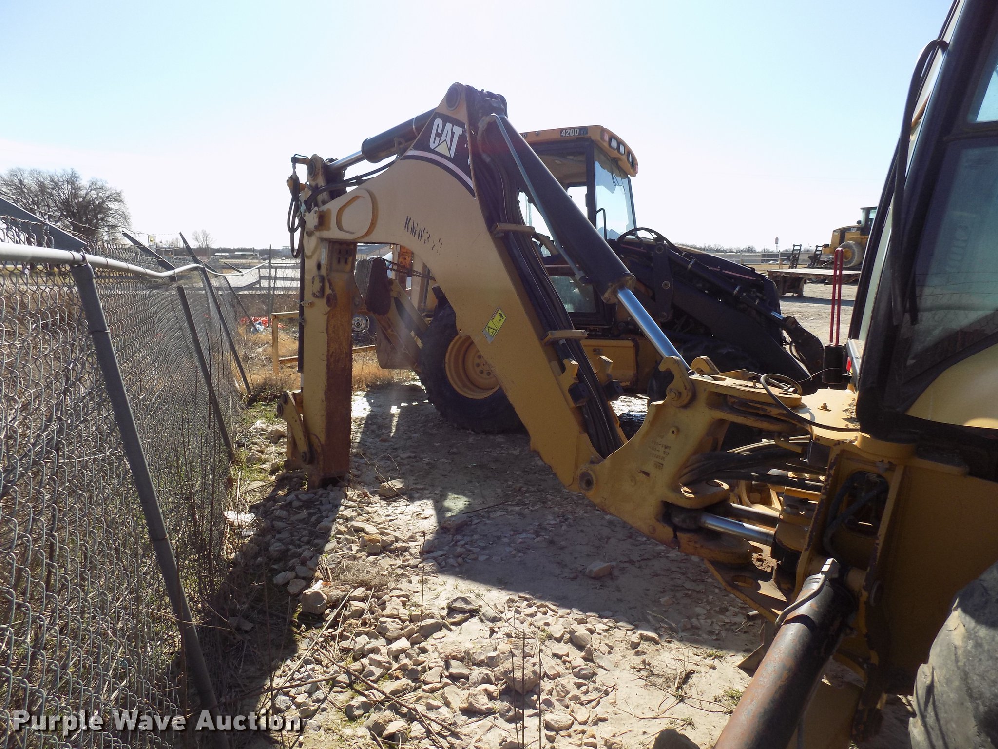 Purple Wave is selling a used Tractor Loader Backhoe in Texas. This item is a 2006 Caterpillar 420E IT backhoe with the following: Unknown hours on meter, Turbo diesel engine, Shuttle shift transmission, 4F-4R gears, AC and heat, AM/FM, Suspension seat, Wobble stick backhoe controls, 86"W loader bucket, Manual quick coupler, Front counter weights, 12.5/80R18 front tires, 19.5L x 24 rear tires, Rear wheel missing, Unknown operating condition, Serial CAT0420EKKMW00332