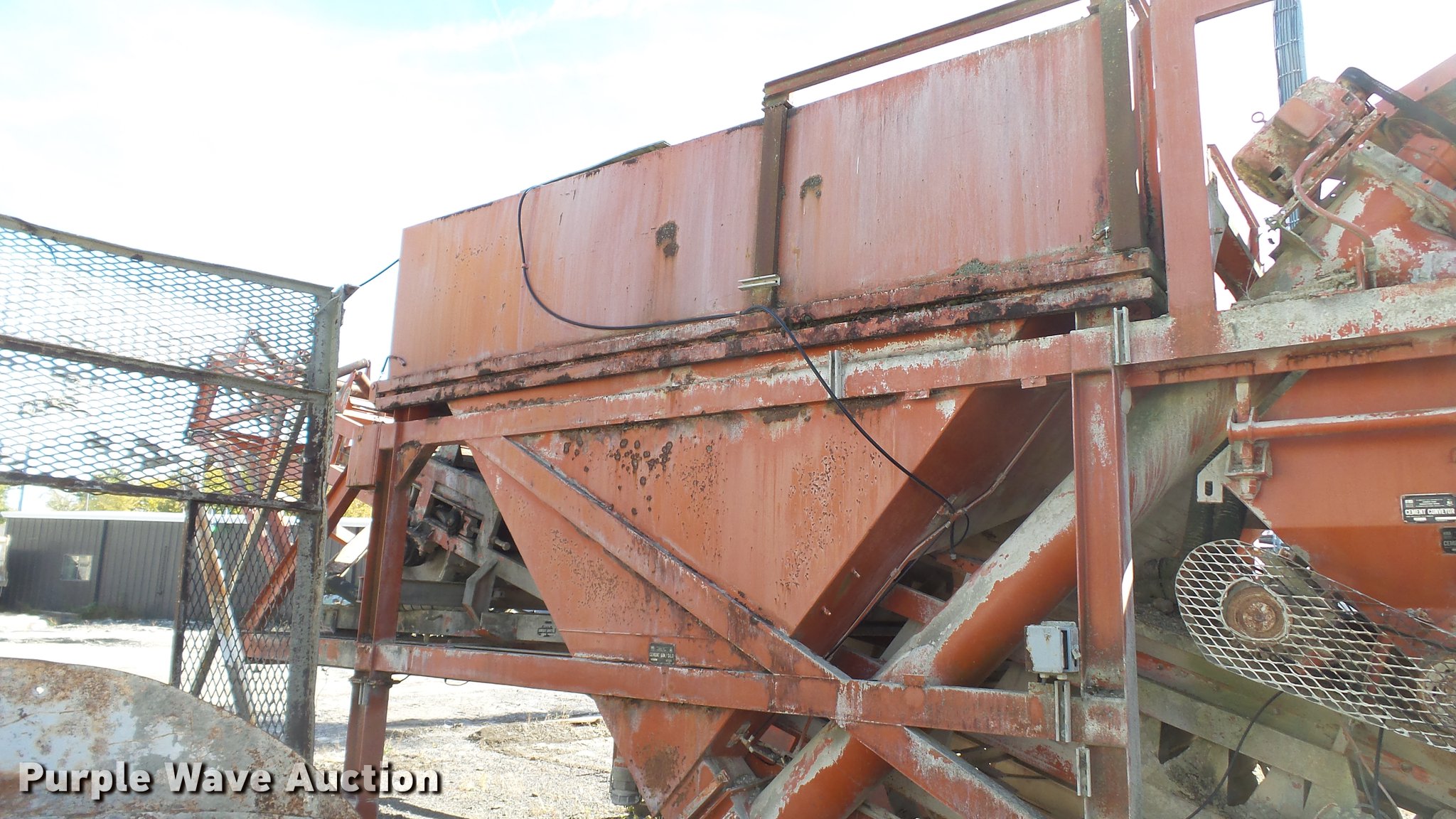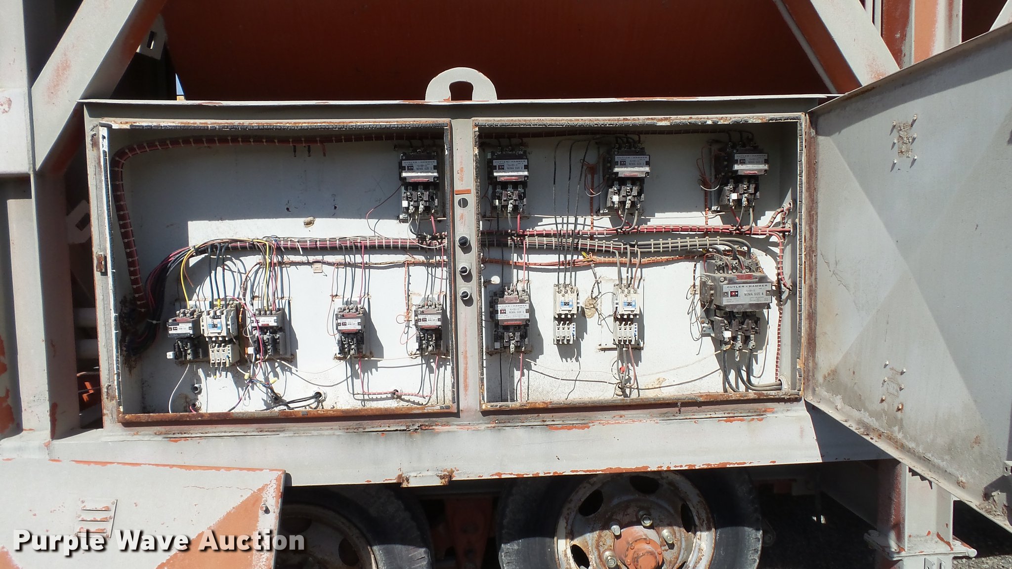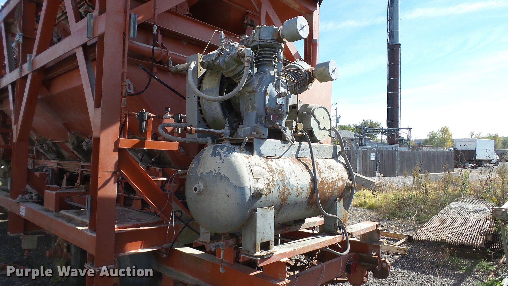 Purple Wave is selling a used Concrete Plant in Missouri. This item is a 1973 Ross 250-8 Mobiliner Central Mix concrete plant with the following: First unit, 58'L x 10'W, Aggregate bin, 68 cu. yd. capacity, Aggregate batcher, Eight cu. yd. capacity, Aggregate conveyor, 19'L x 48"W, 3,150 ton per hour, Cement batcher, Eight cu. yd. capacity, Cement conveyor, 4,000 cu. ft. per hour, Cement bin/silo, 1,280 cu. ft. capacity, 440V three phase distribution box, Ingersoll-Rand 20T2T3025HTM air compressor, Batch computer, Moisture and slump control, Fifth wheel plate, Spring suspension, Air brakes, Triple axle, 8.25-20 tires, Serial 9019, Second unit, Ross tilting mixer, 31'L x 10'W, Eight cu. yd. capacity, (3) electric motors, 440V, Three phase, Fifth wheel plate, Spring suspension, Air brakes, Tandem axle, 8.25-20 tires, Serial 800-15, Additional items, (2) 15' x 15' hoppers, Catwalks, I-beams, Conveyors