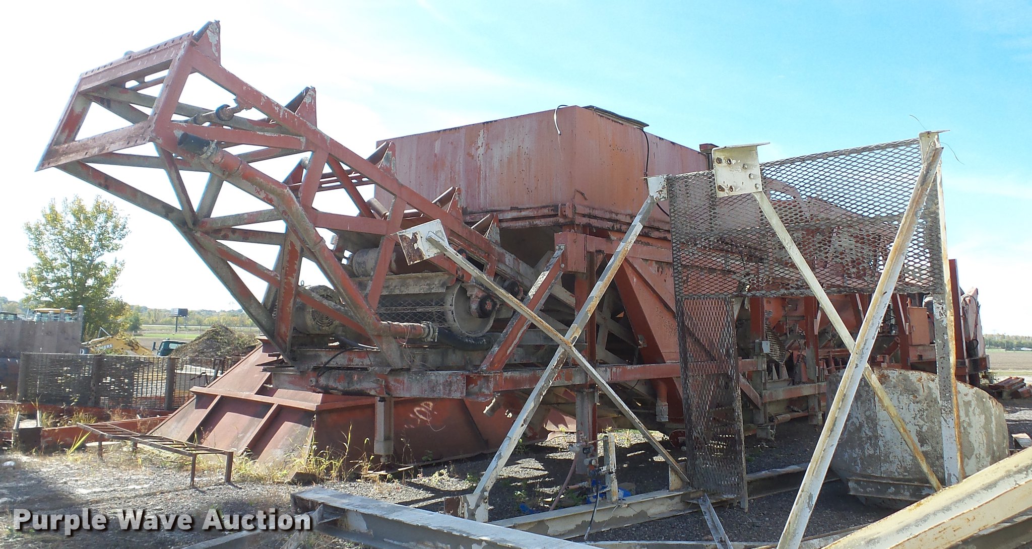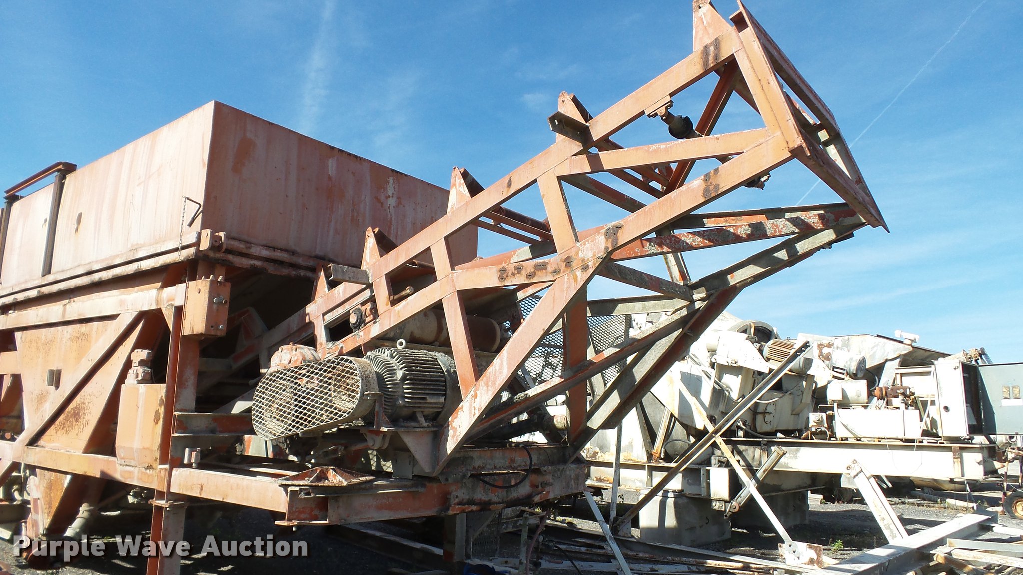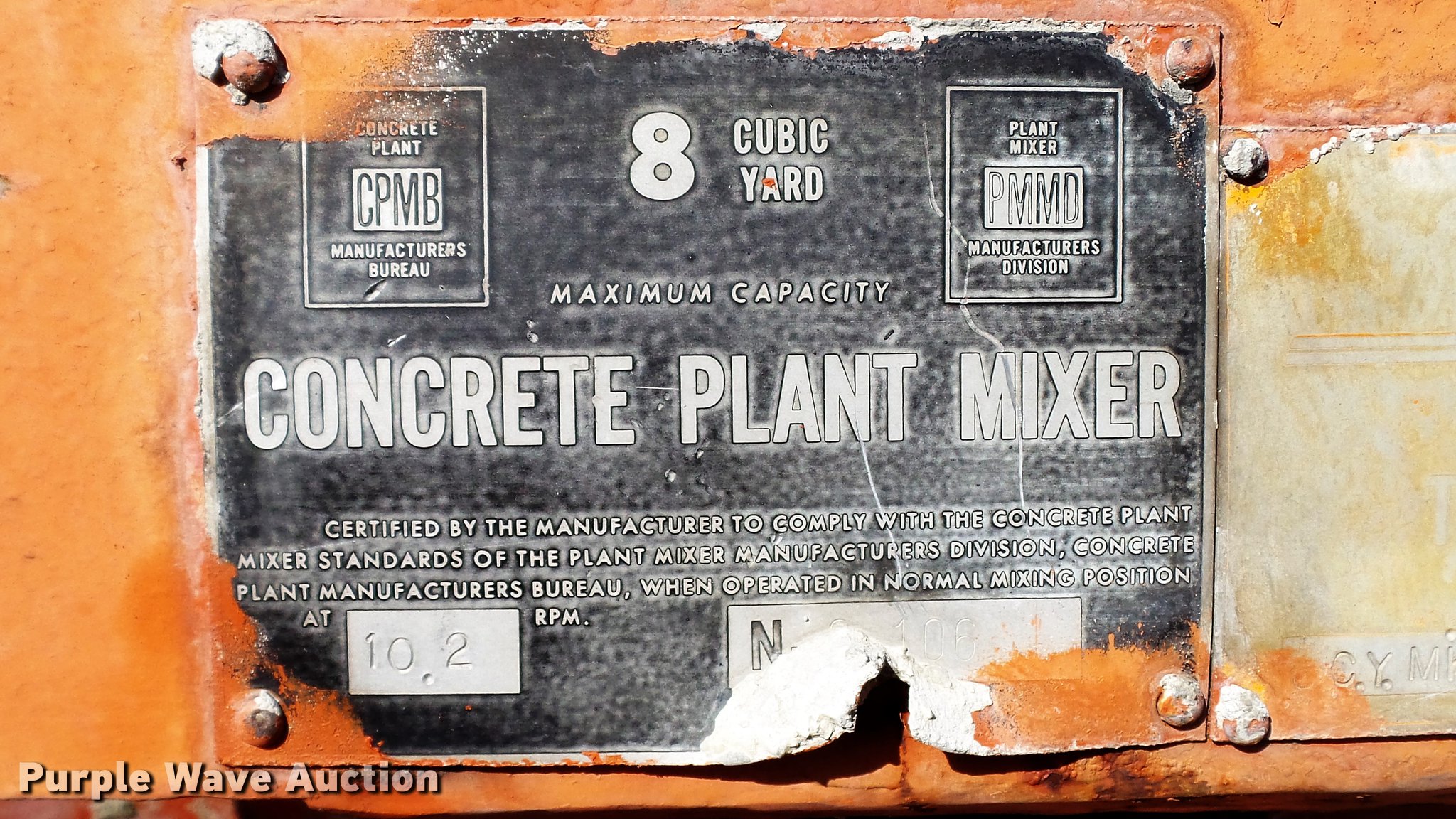 Purple Wave is selling a used Concrete Plant in Missouri. This item is a 1973 Ross 250-8 Mobiliner Central Mix concrete plant with the following: First unit, 58'L x 10'W, Aggregate bin, 68 cu. yd. capacity, Aggregate batcher, Eight cu. yd. capacity, Aggregate conveyor, 19'L x 48"W, 3,150 ton per hour, Cement batcher, Eight cu. yd. capacity, Cement conveyor, 4,000 cu. ft. per hour, Cement bin/silo, 1,280 cu. ft. capacity, 440V three phase distribution box, Ingersoll-Rand 20T2T3025HTM air compressor, Batch computer, Moisture and slump control, Fifth wheel plate, Spring suspension, Air brakes, Triple axle, 8.25-20 tires, Serial 9019, Second unit, Ross tilting mixer, 31'L x 10'W, Eight cu. yd. capacity, (3) electric motors, 440V, Three phase, Fifth wheel plate, Spring suspension, Air brakes, Tandem axle, 8.25-20 tires, Serial 800-15, Additional items, (2) 15' x 15' hoppers, Catwalks, I-beams, Conveyors