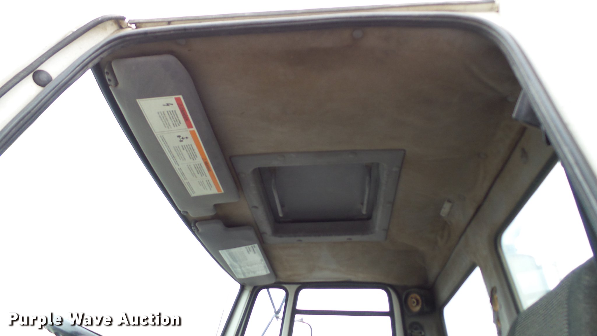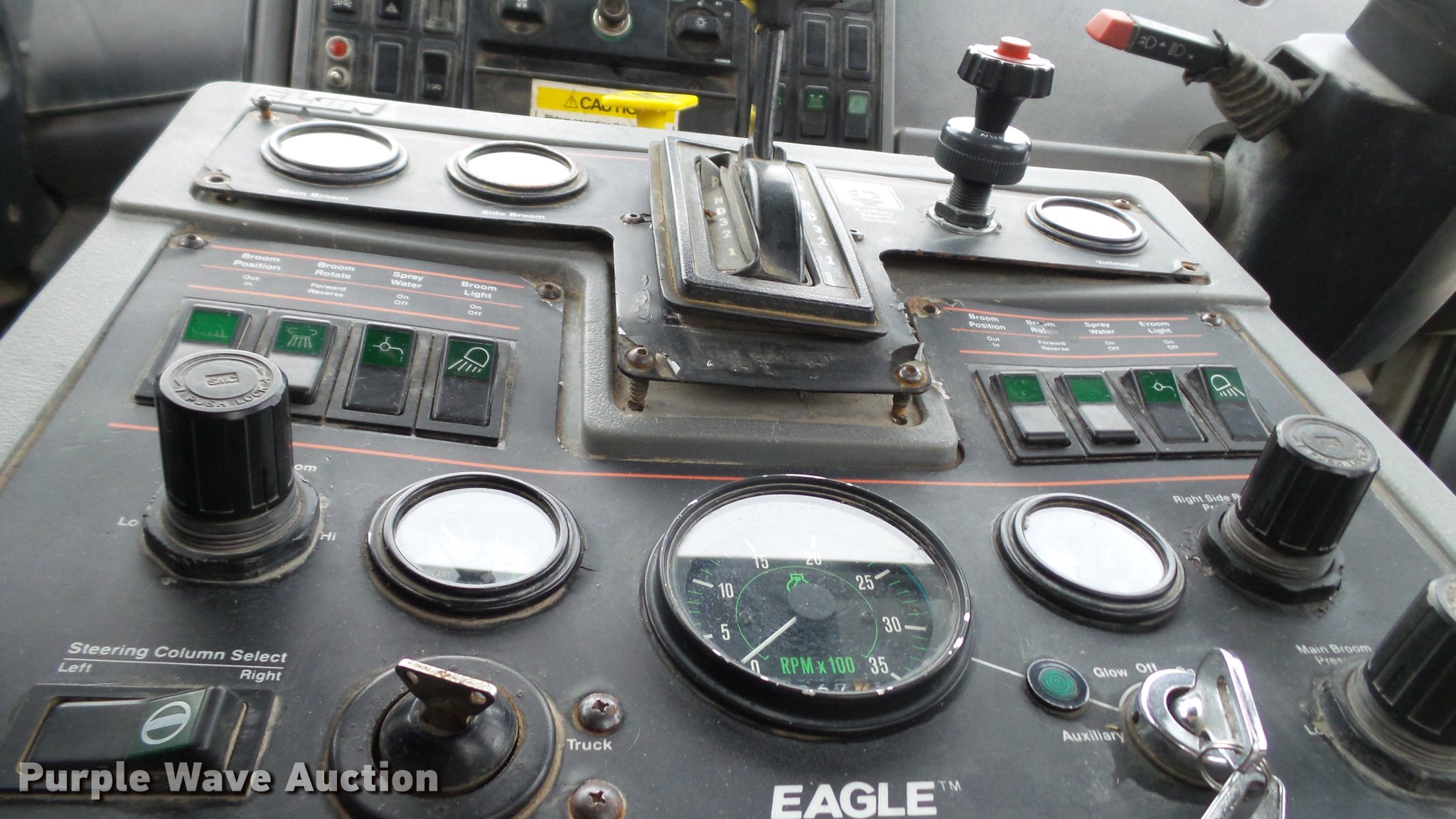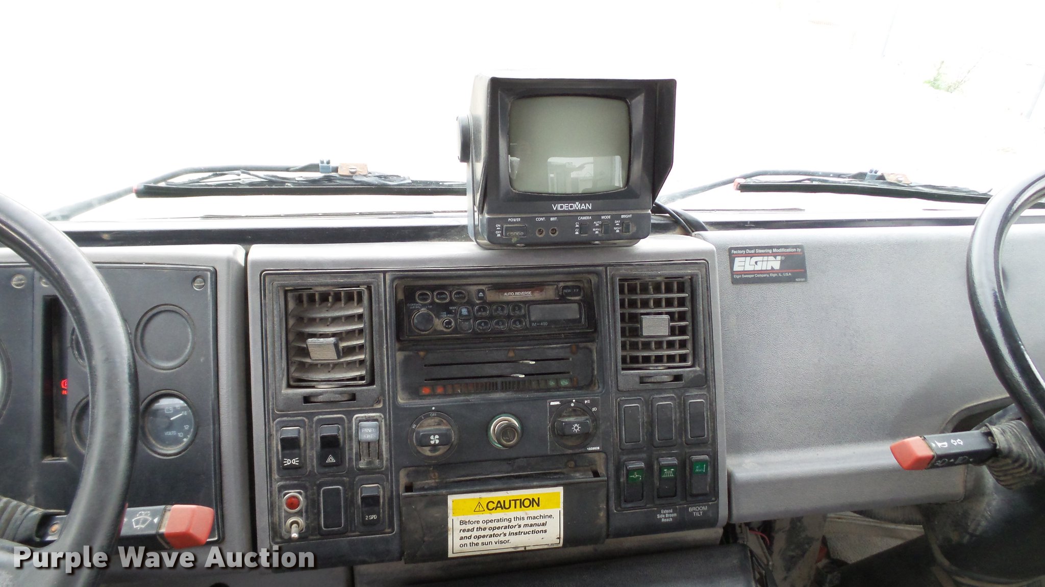 Purple Wave is selling a used Street Sweeper Truck in Illinois. This item is a 1995 Ford CF7000 street sweeper with the following: 70,573 miles on odometer, Cummins 5.9L L6 turbo diesel engine, Automatic transmission, Enclosed cab, AC and heat, AM/FM, Backup camera, Wipers, Elgin Eagle Series F sweeper unit, Isuzu C240 four cylinder diesel engine, 3,267 hours on meter, Dual operating stations, 5' sweeping width, Hydraulic lift, tilt, and rotation, 4.5 cu.yd. hopper, 32" diameter gutter brooms, 34"W pickup broom, Front water application, 360 gallon water system, Hydraulic drive sweeping system, Automatic lubrication system, Front work lights, Air brakes, 11R22.5 tires, Non-operational AC, Non-operational backup camera, Windshield chipped, Auto greaser canister broken